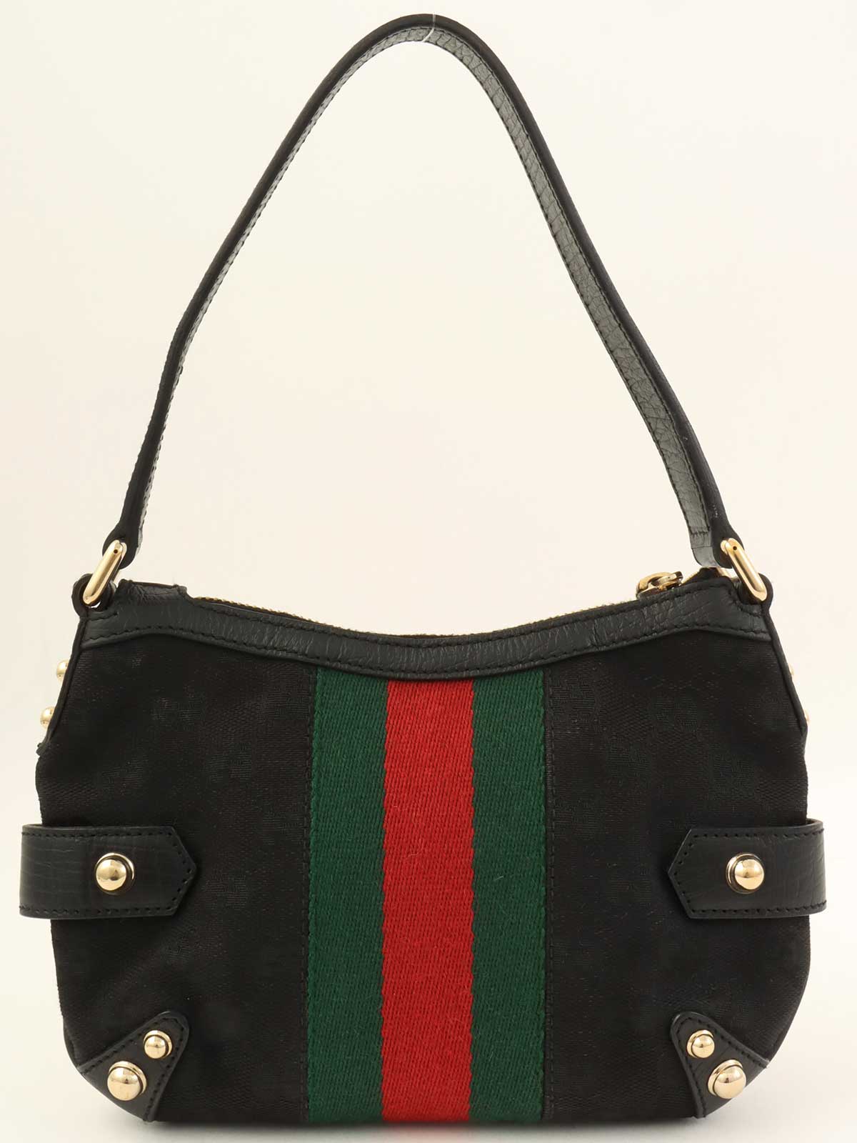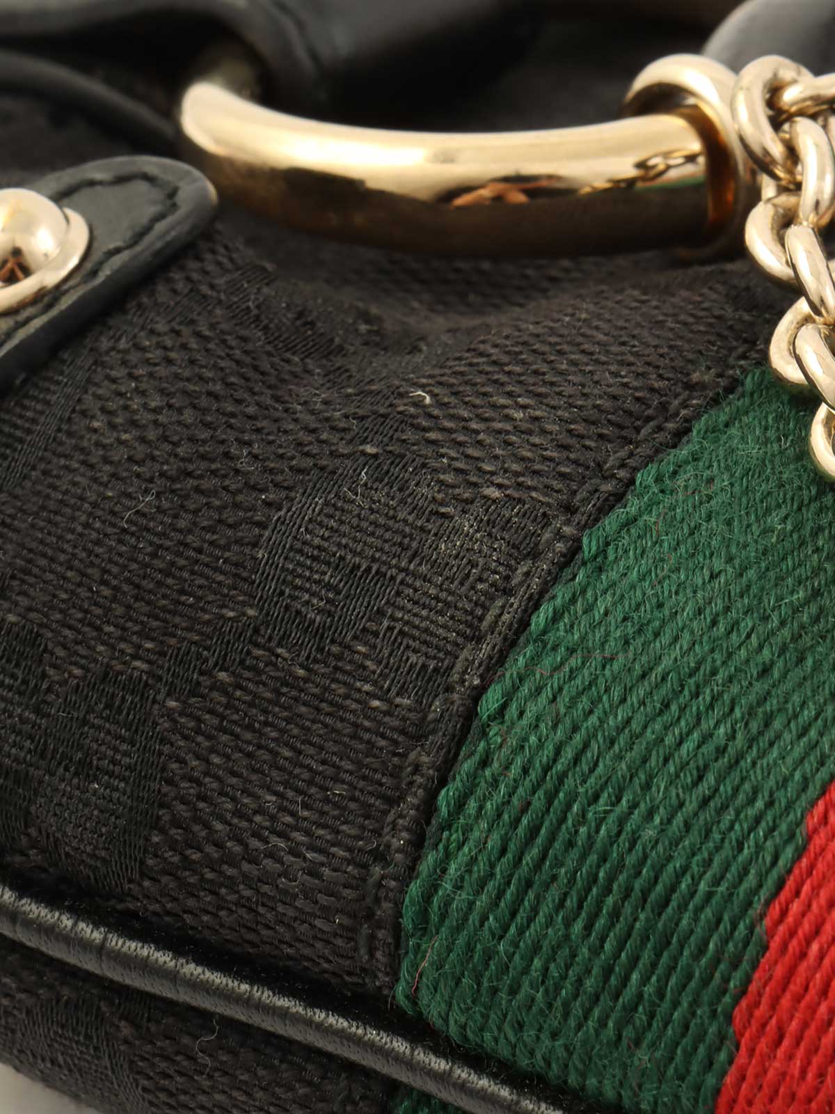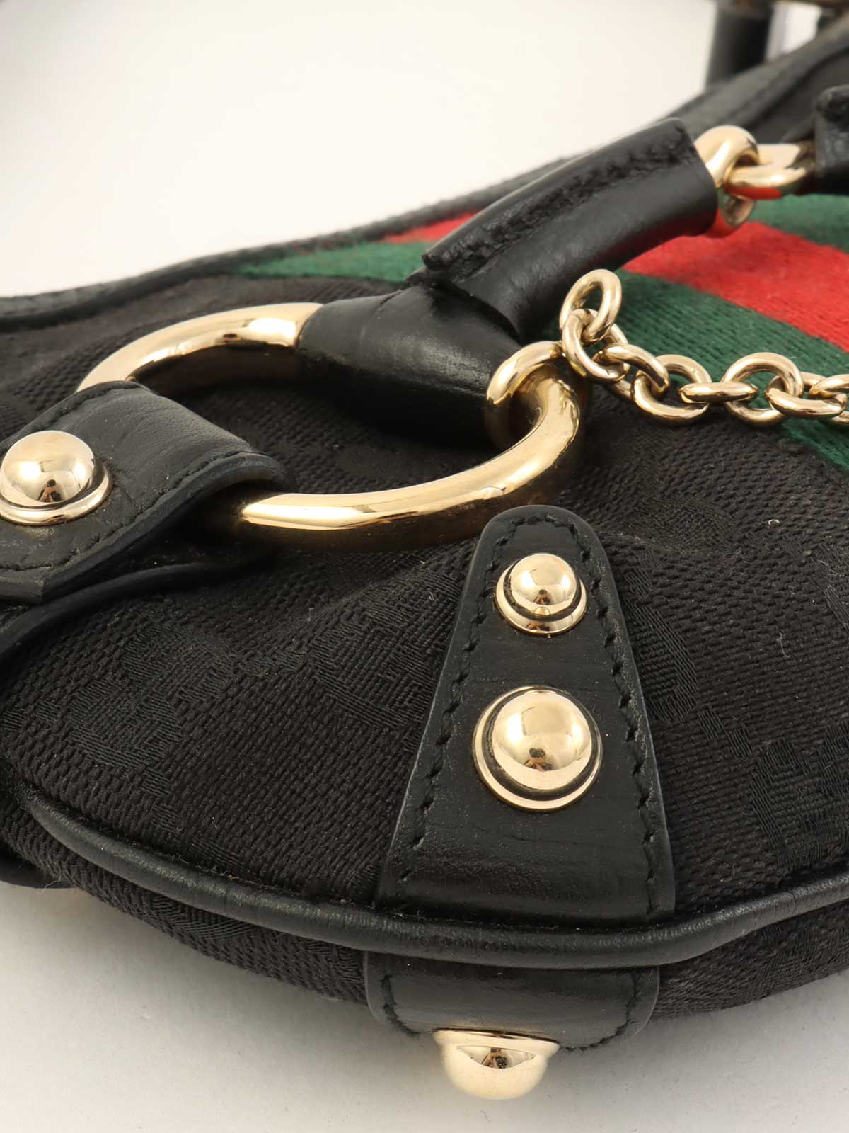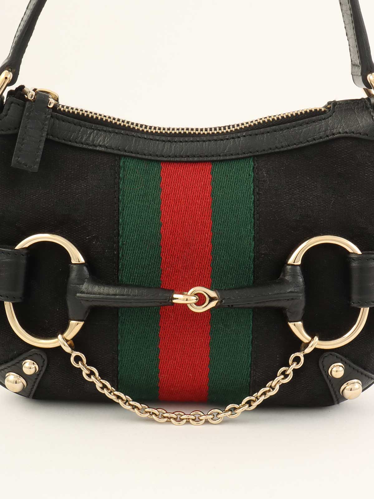 キャンバスGGパターンシェリーラインホースビットプレートハンドバッグ ブラック/グリーン/レッド