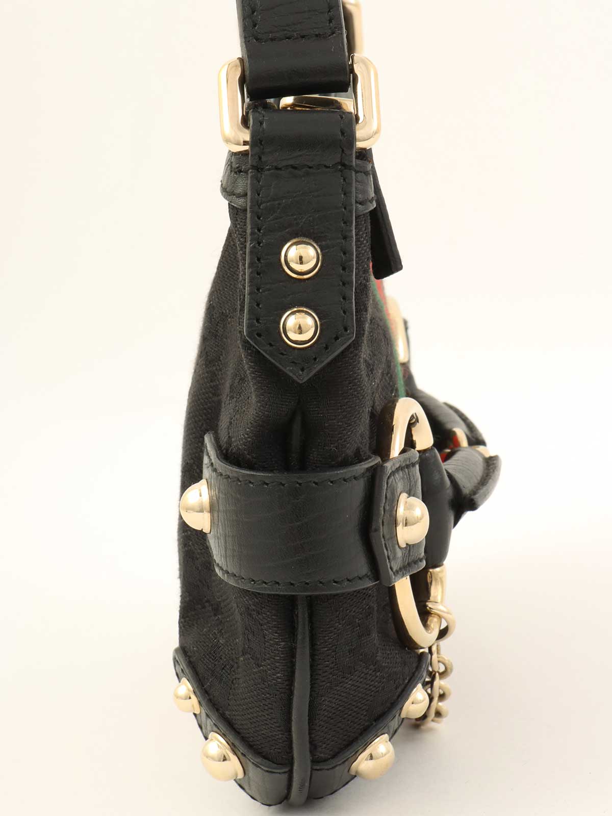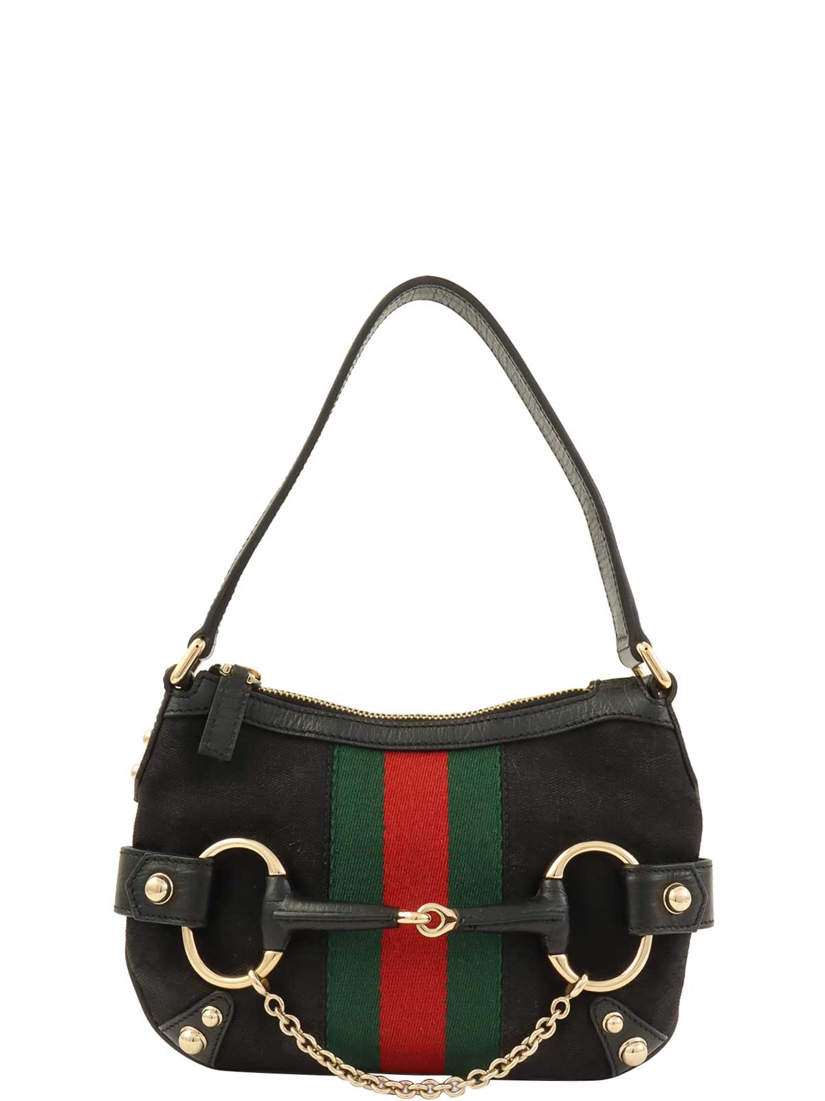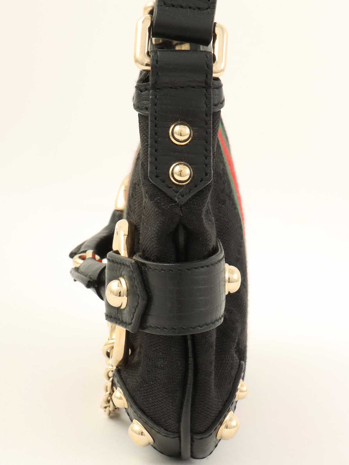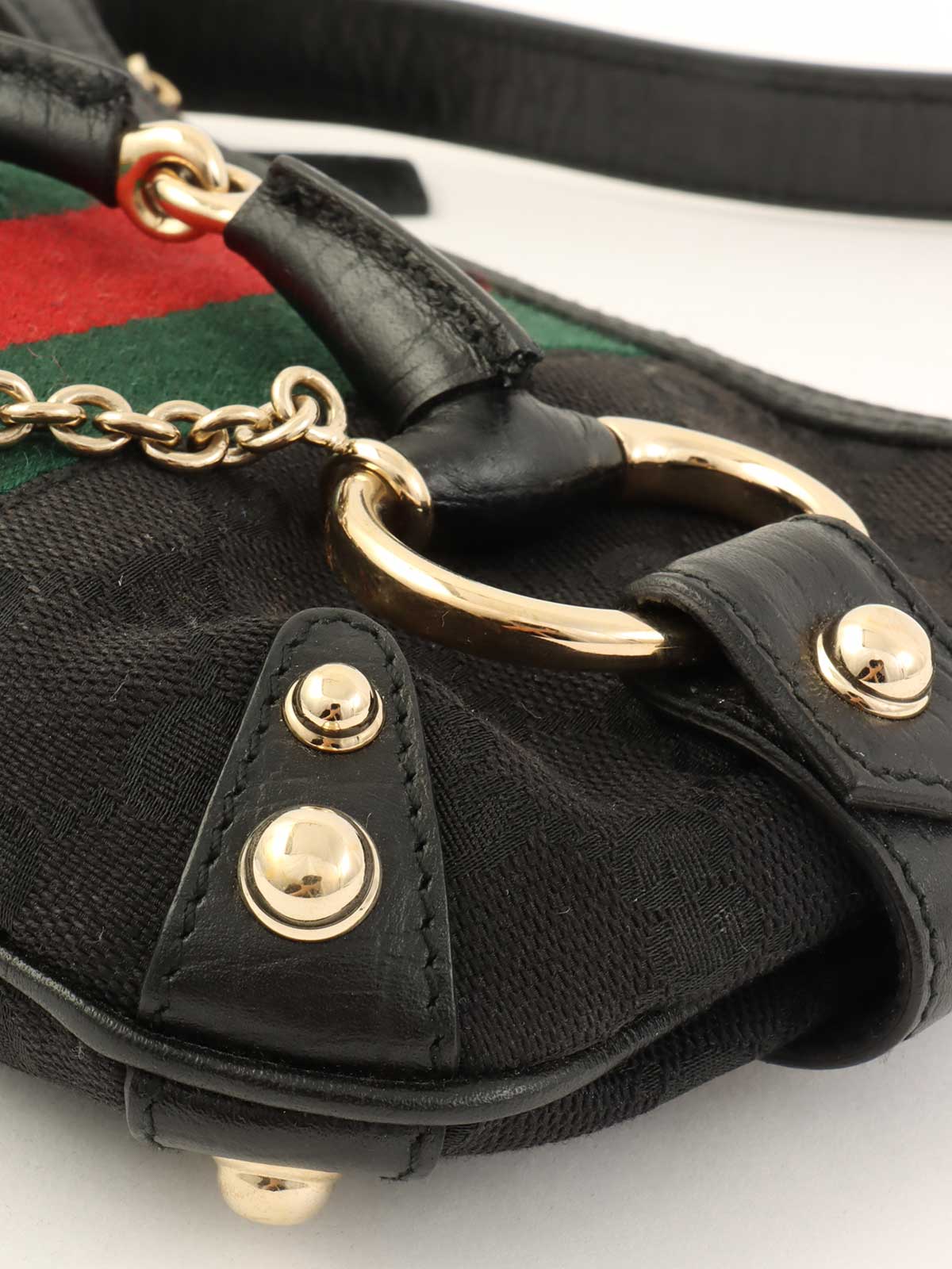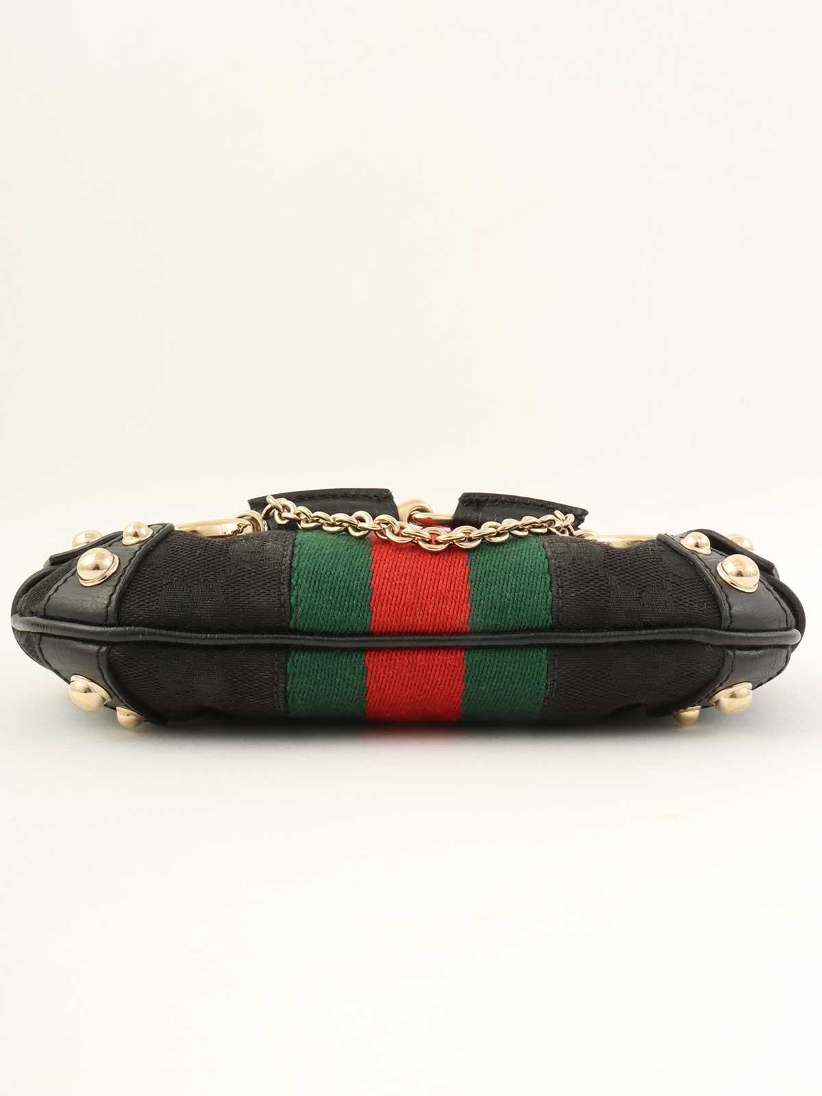 キャンバスGGパターンシェリーラインホースビットプレートハンドバッグ ブラック/グリーン/レッド
