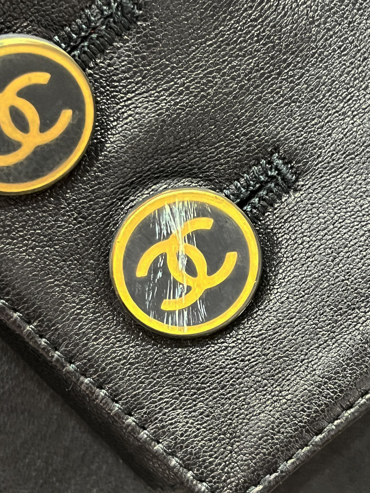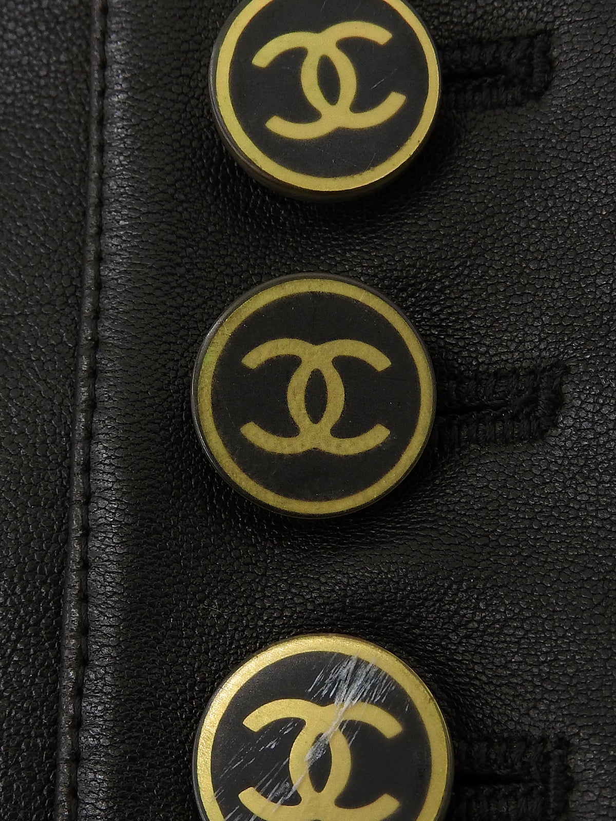 2001年製 レザーCCマークボタンコート ブラック