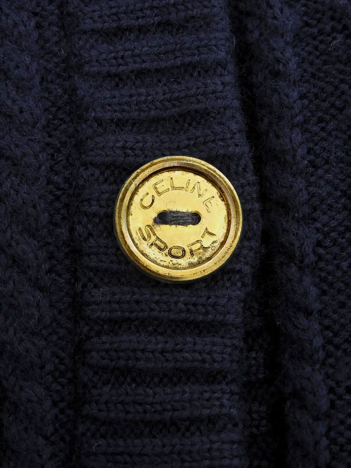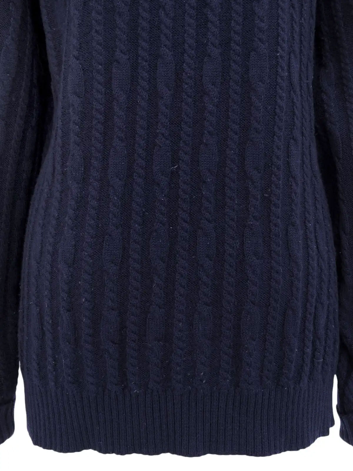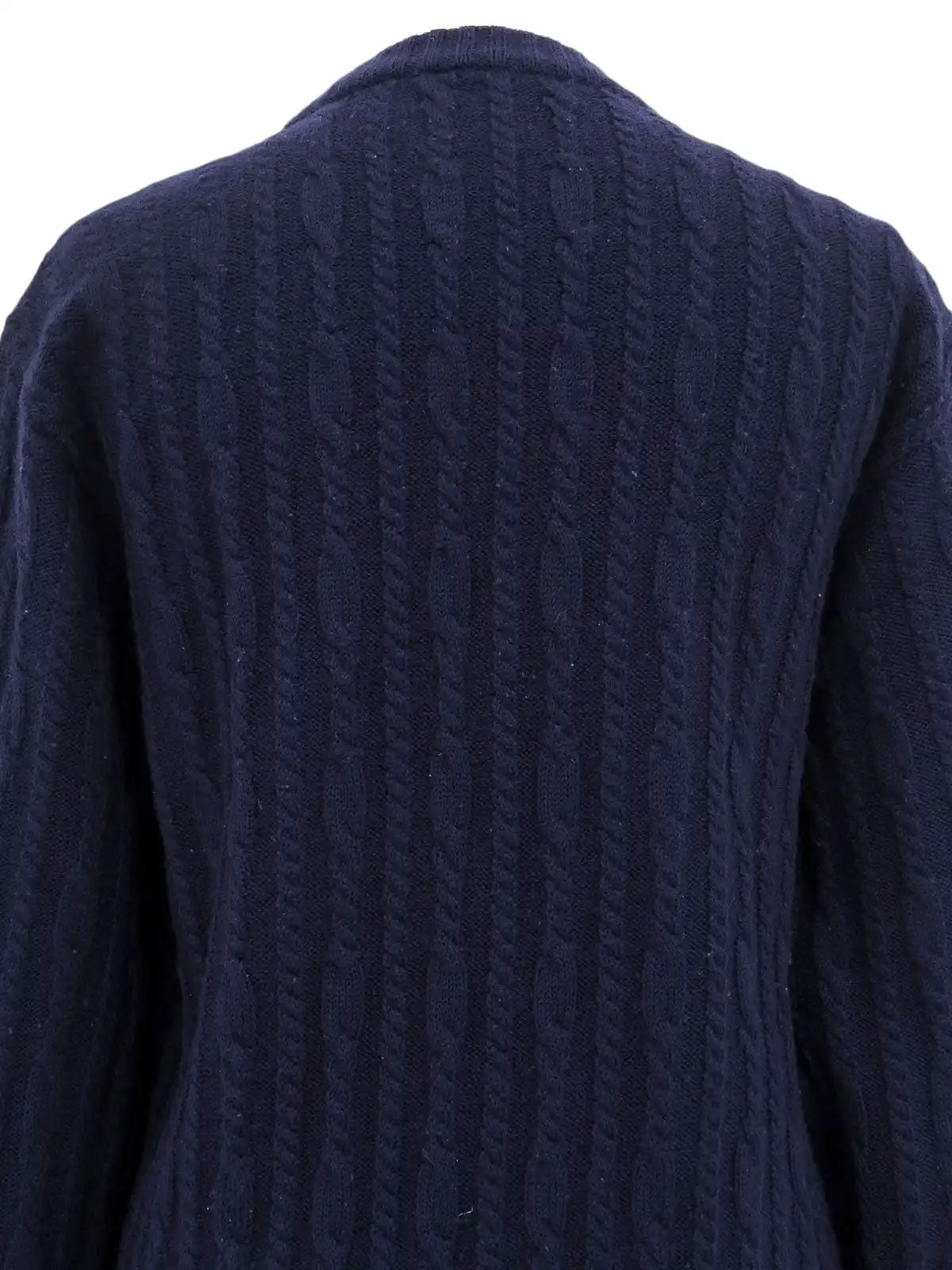 ウールケーブルニットロゴボタンカーディガン ネイビー