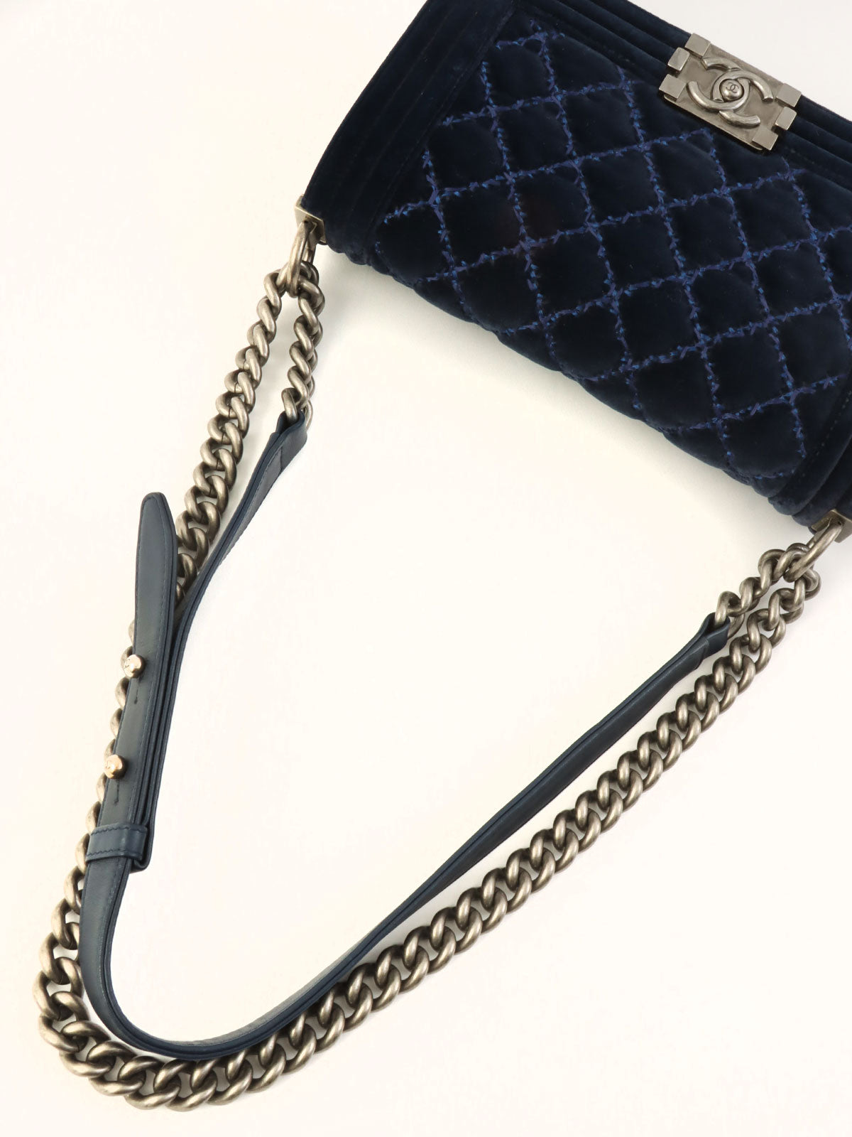 2014年頃製 ベロアボーイシャネルチェーンショルダーバッグ ネイビー