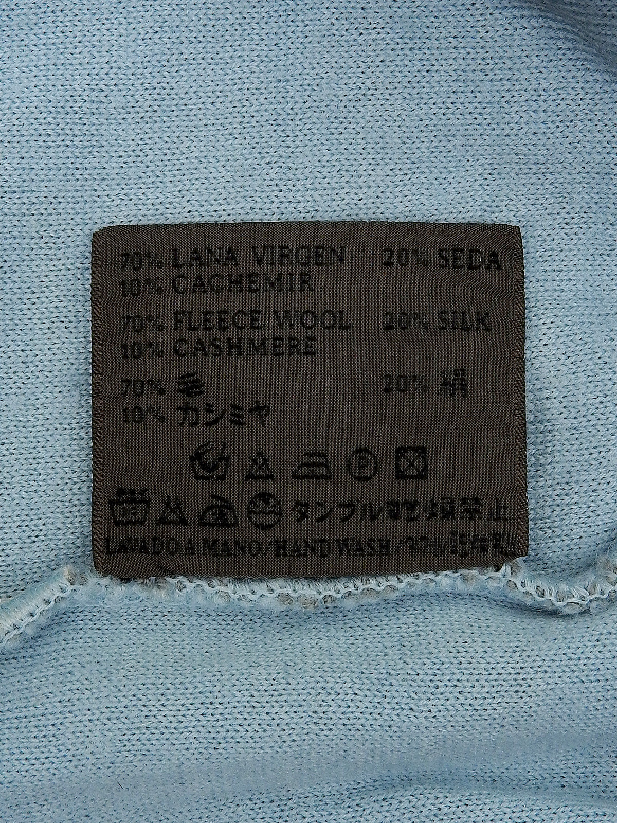 ウールアナグラムパターンショートスリーブVネックニットトップス グレー/ライトブルー