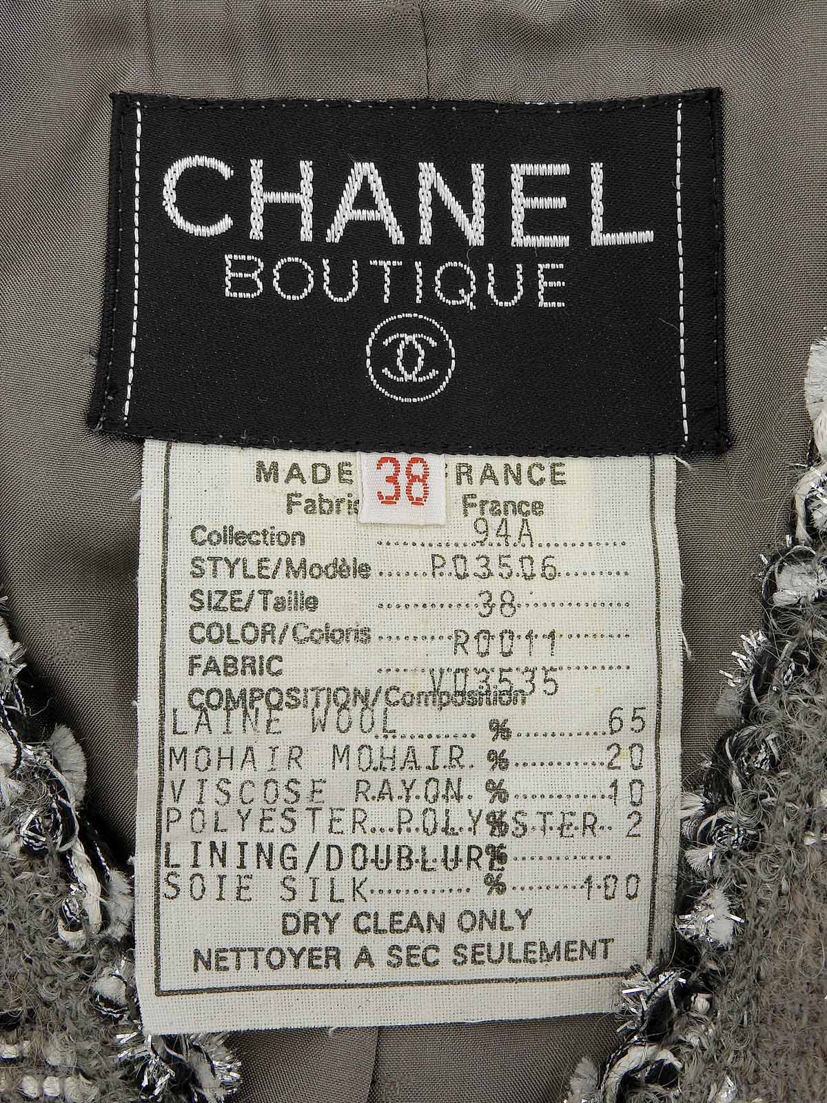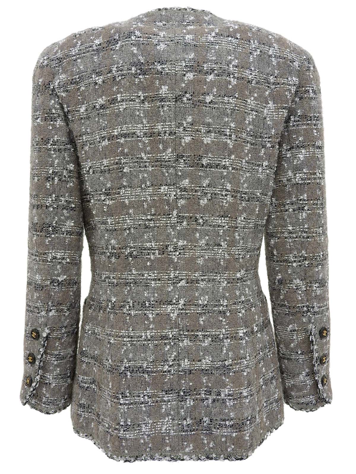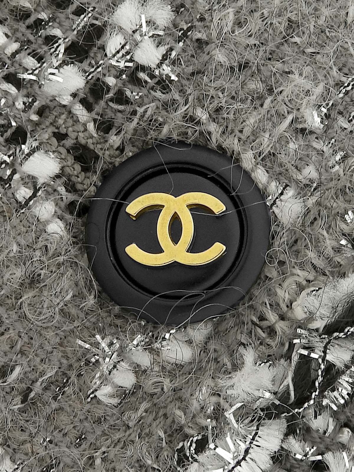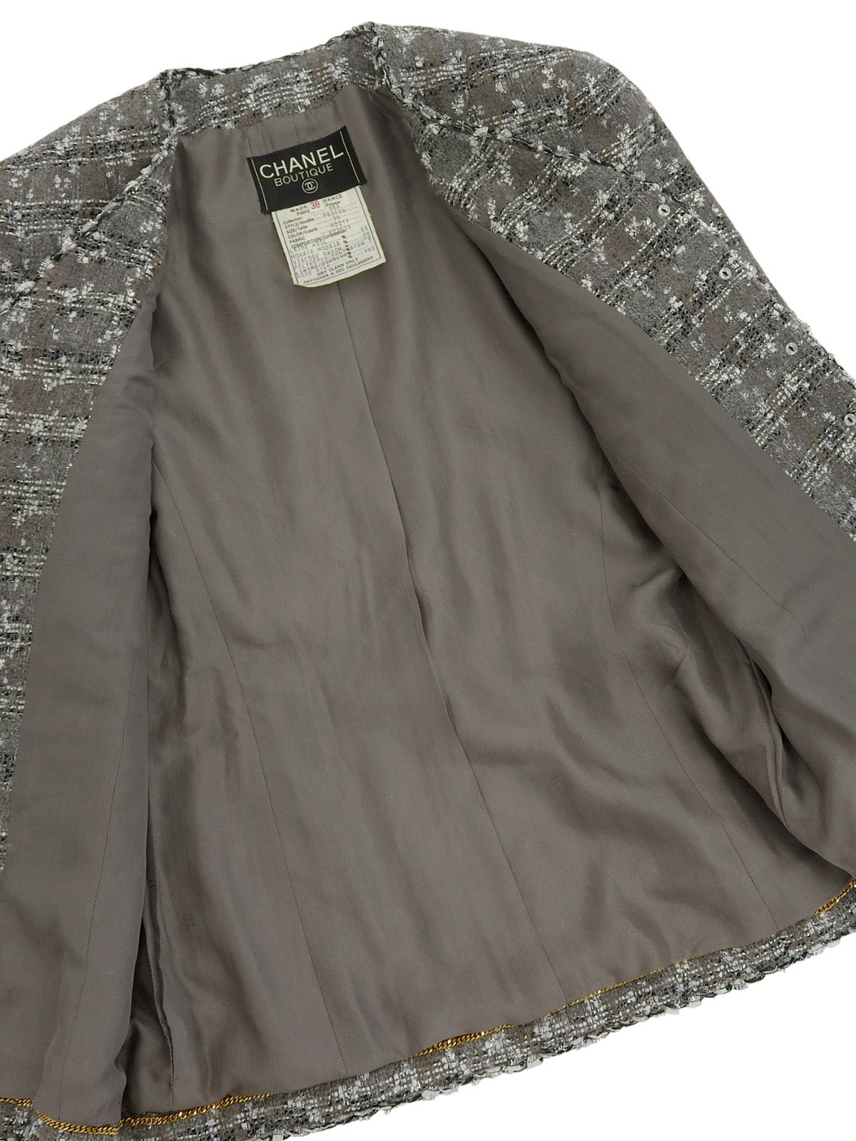 1994年製 ツイードCCマークボタンノーカラージャケット グレー/ホワイト/ブラック