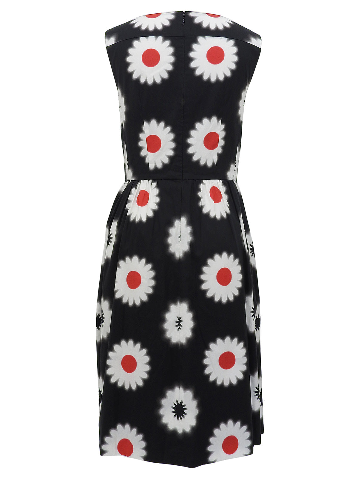 フラワーデザインパターンノースリーブワンピース ブラック/ホワイト/レッド