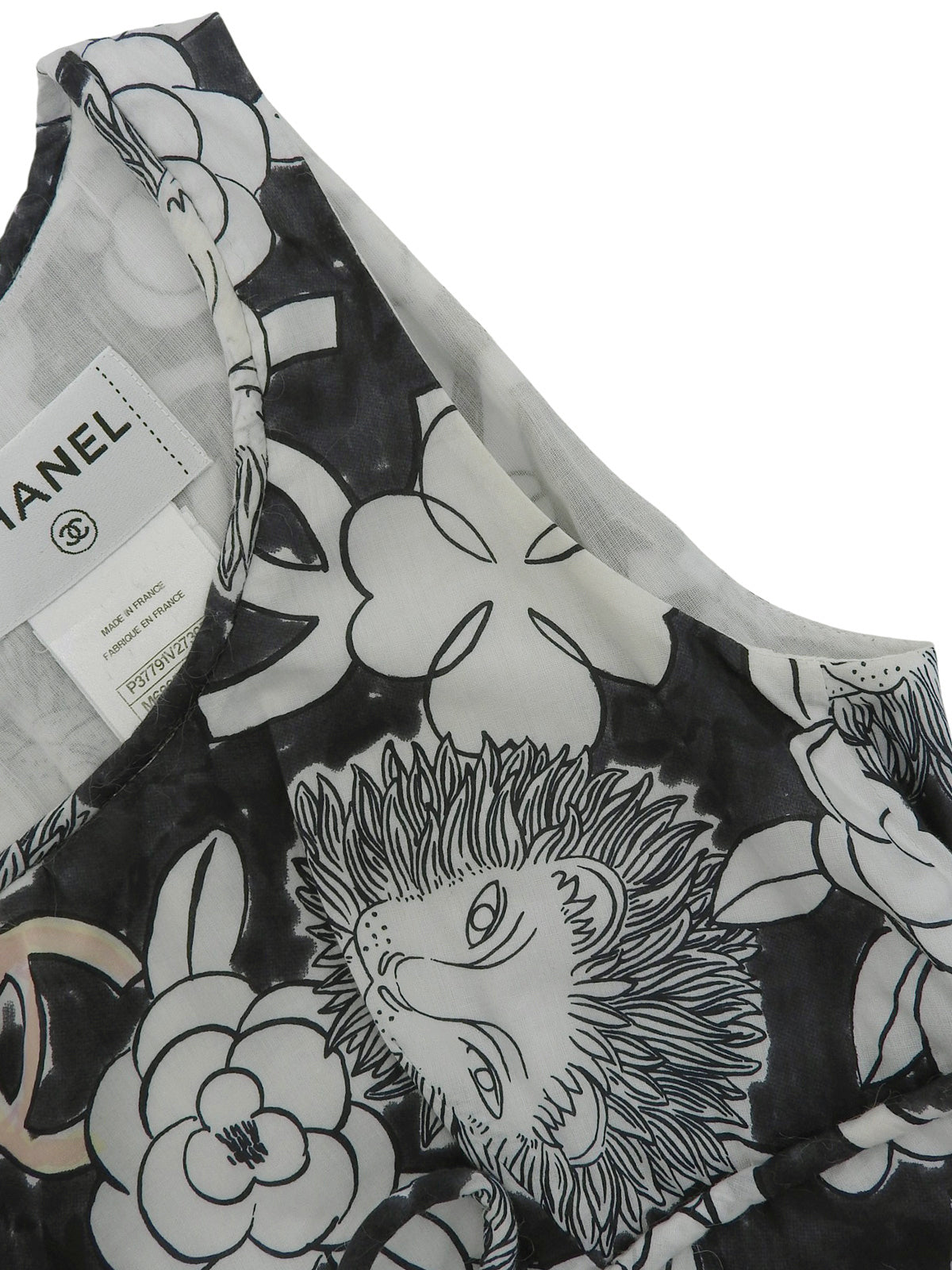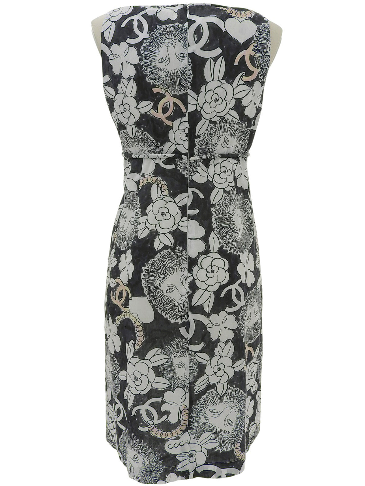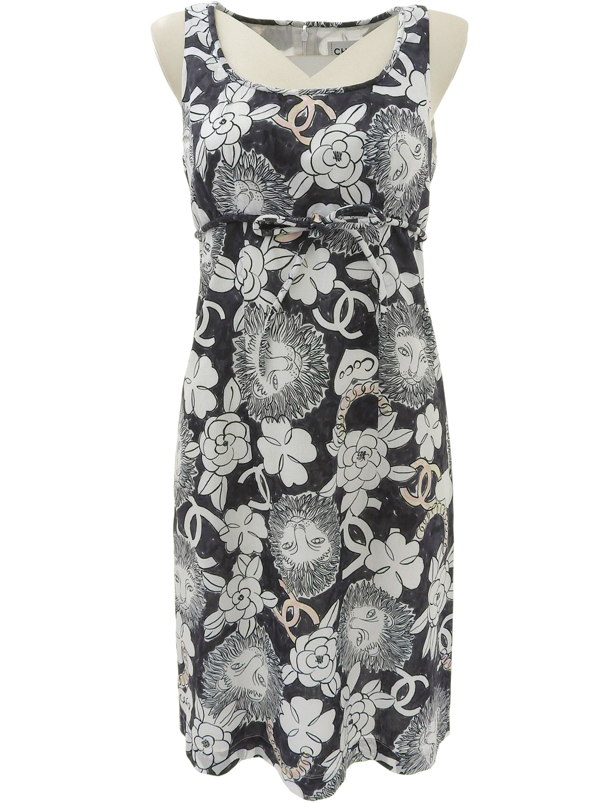 ライオンCCマークプリントノースリーブワンピース ホワイト/ブラック/マルチ