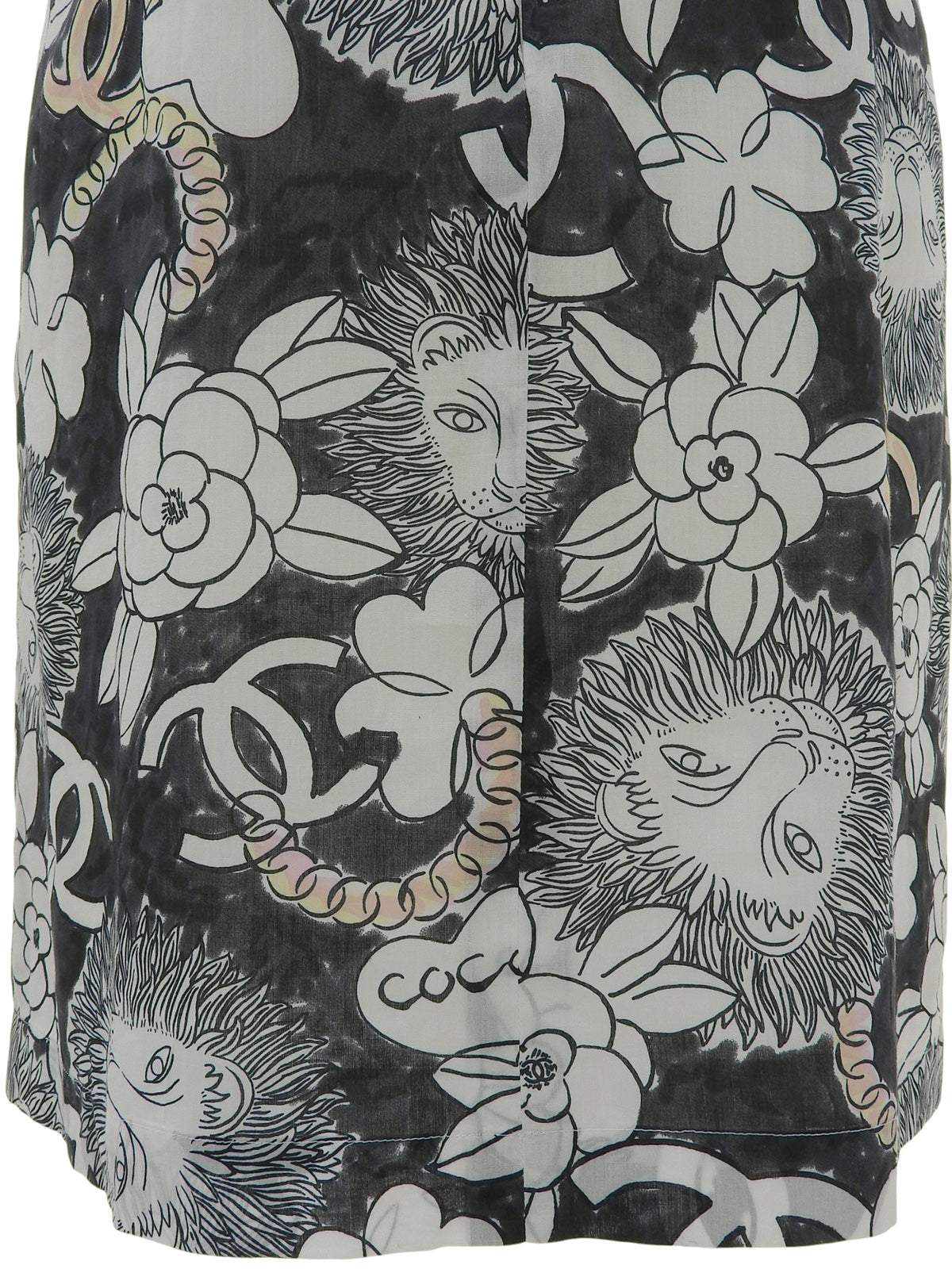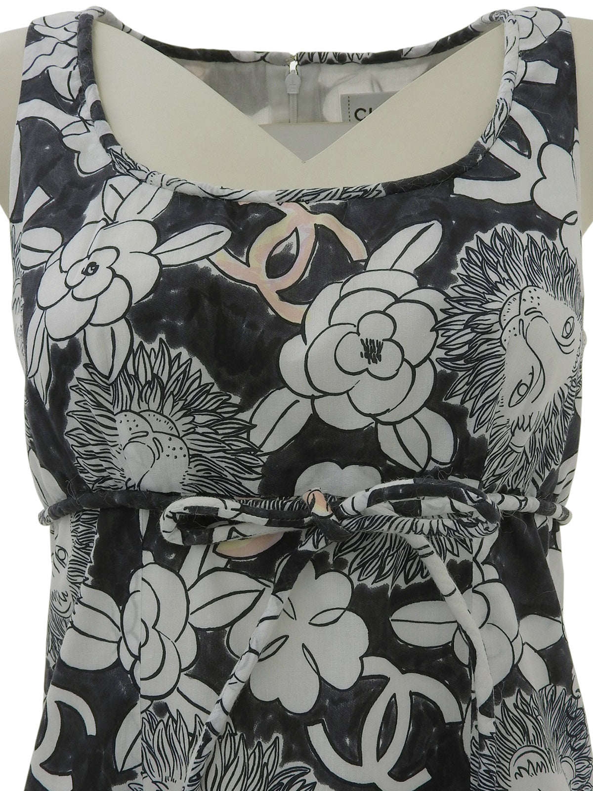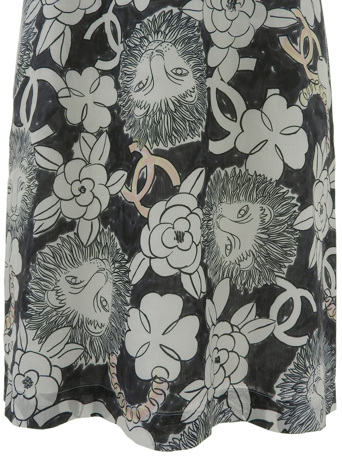 ライオンCCマークプリントノースリーブワンピース ホワイト/ブラック/マルチ