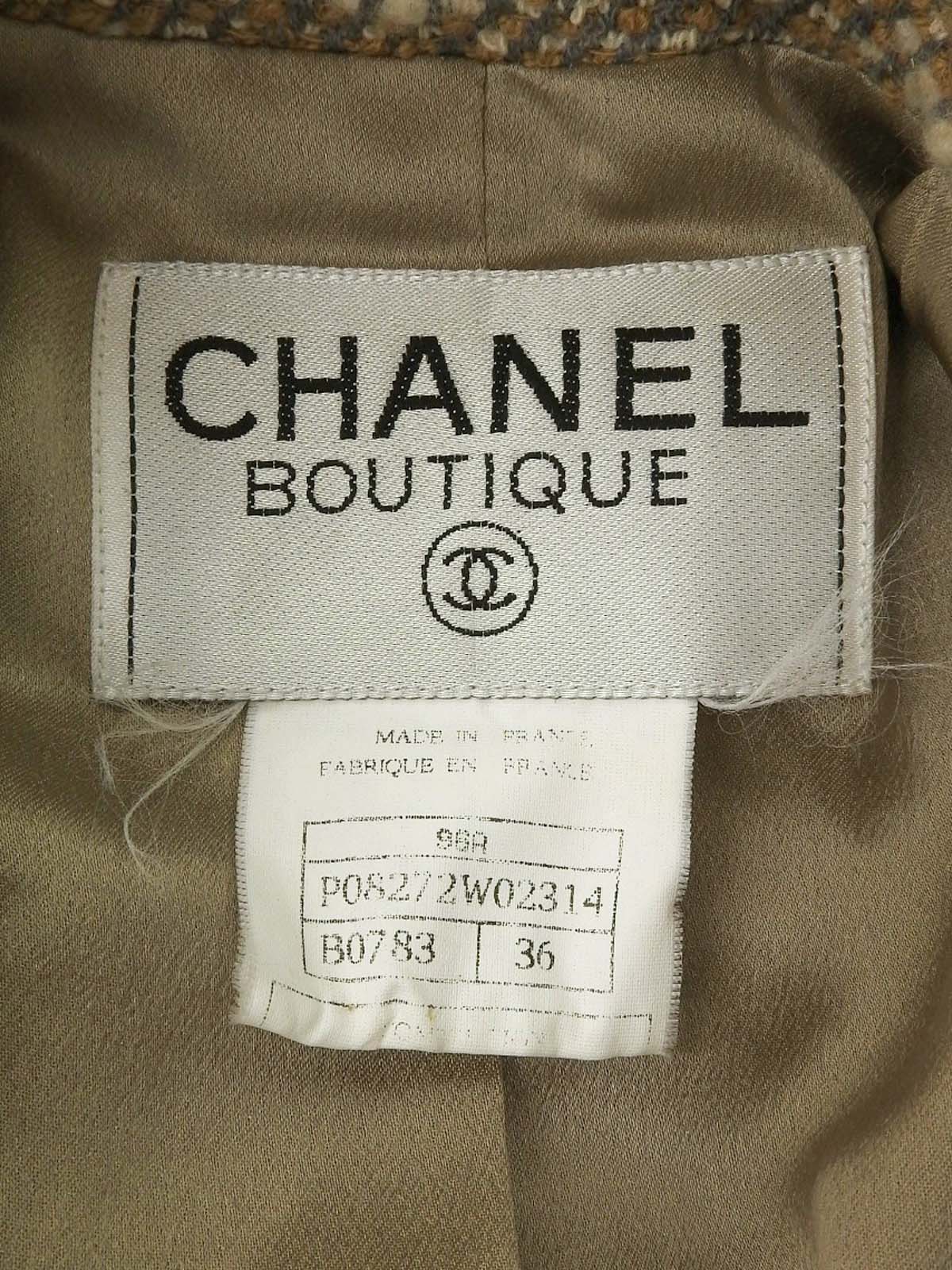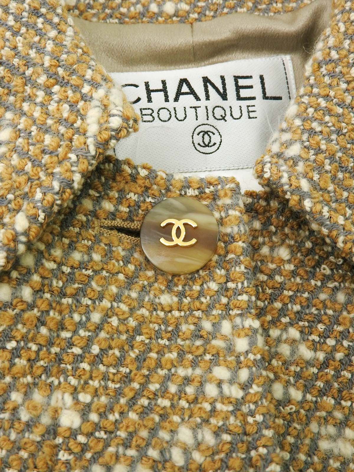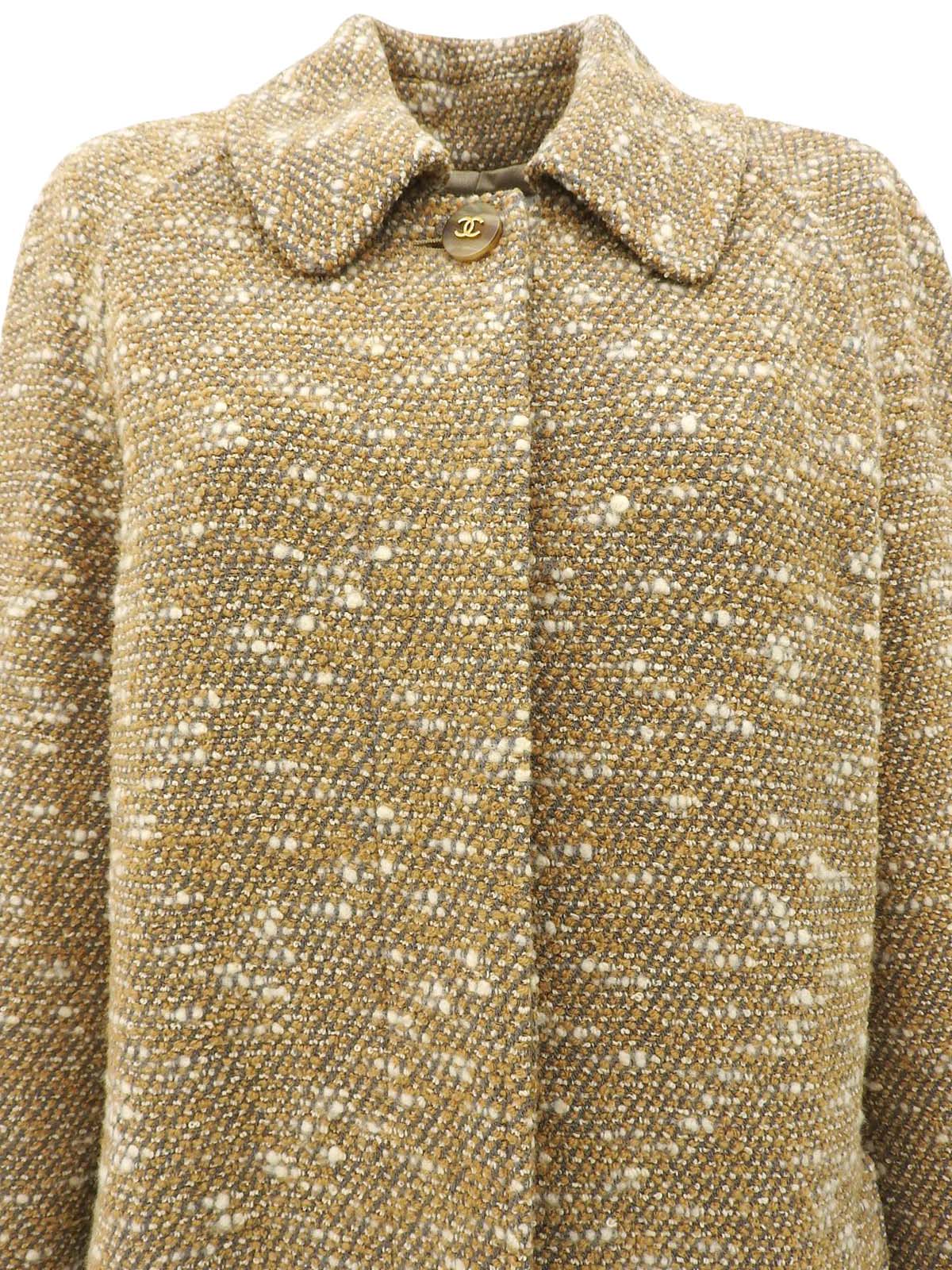 1996年製 ツイードCCマークボタンロングコート ベージュ/グレー