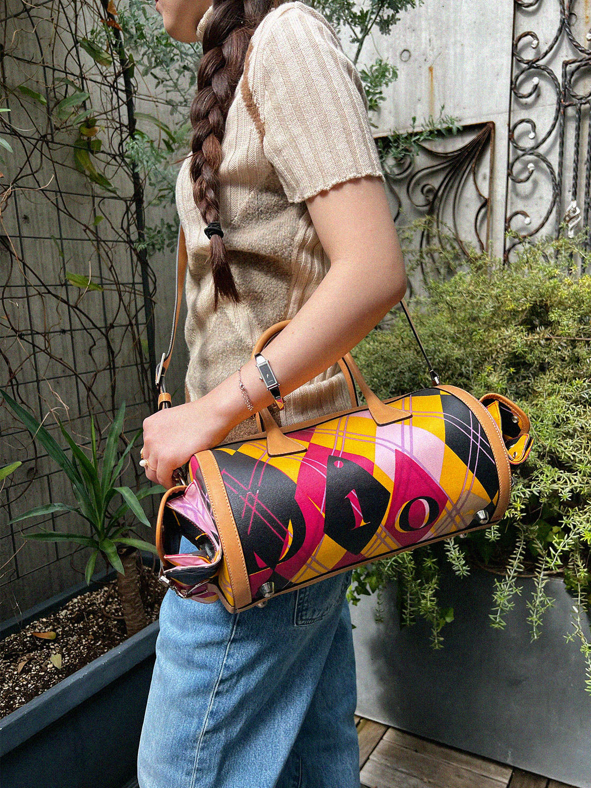 アーガイルチェックパターン2wayボストンバッグ イエロー/マルチカラー