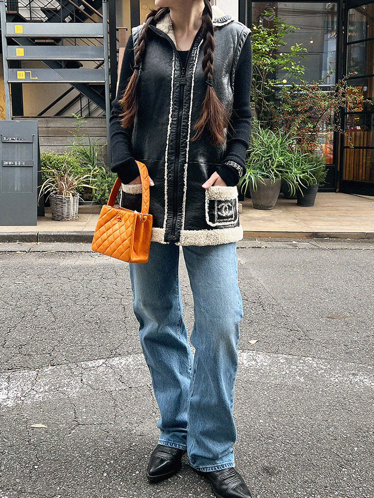 2008年製 スポーツラインムートンニットCCマークベスト ブラック