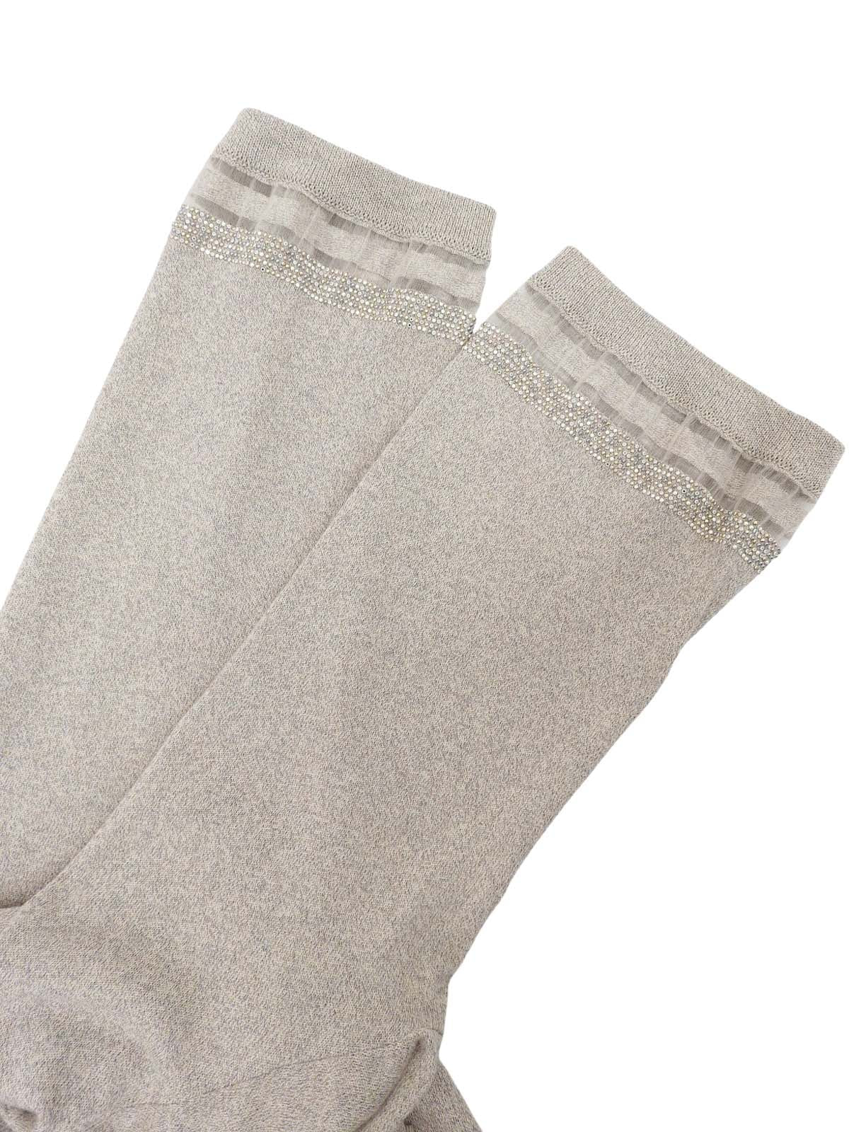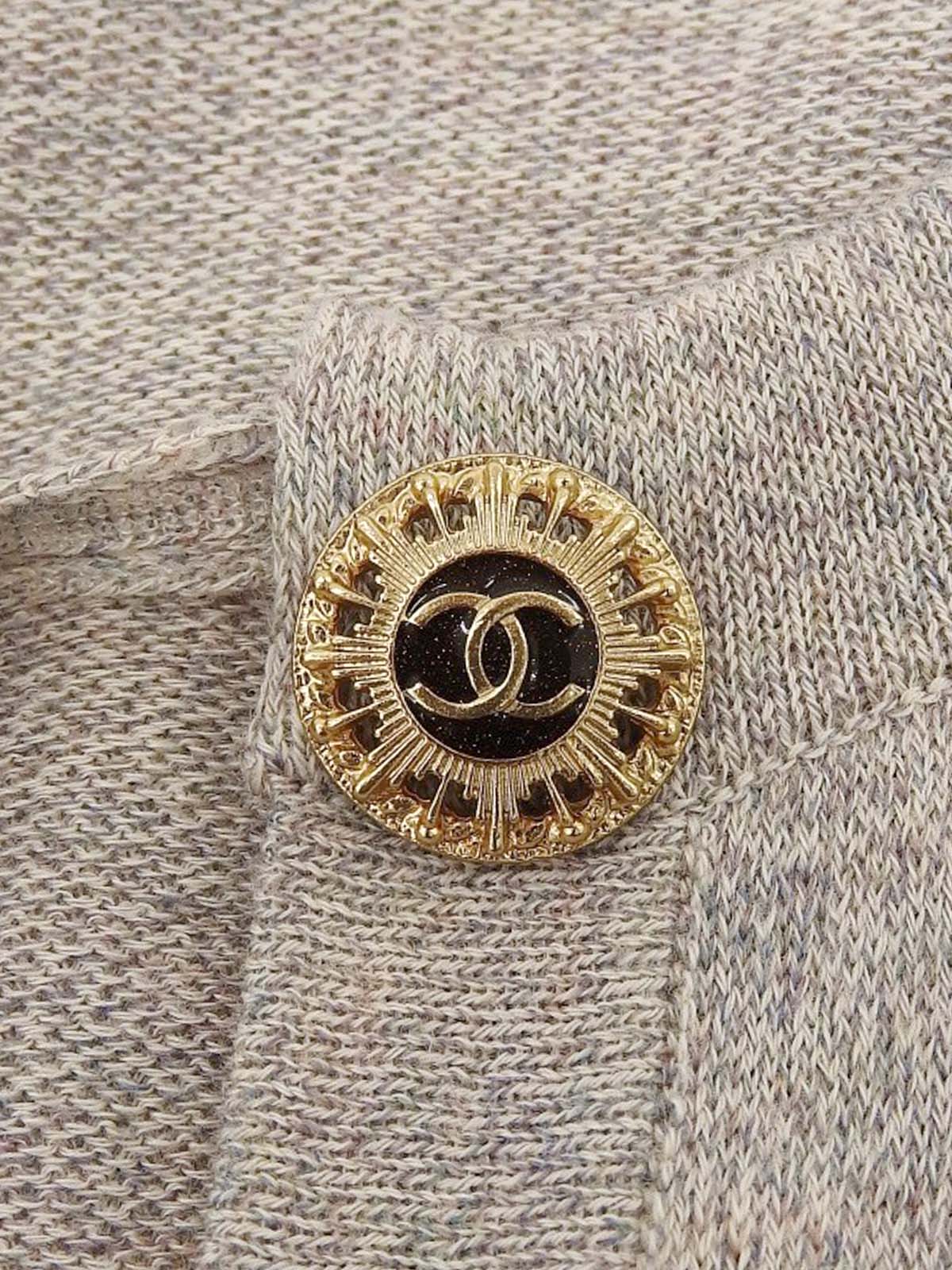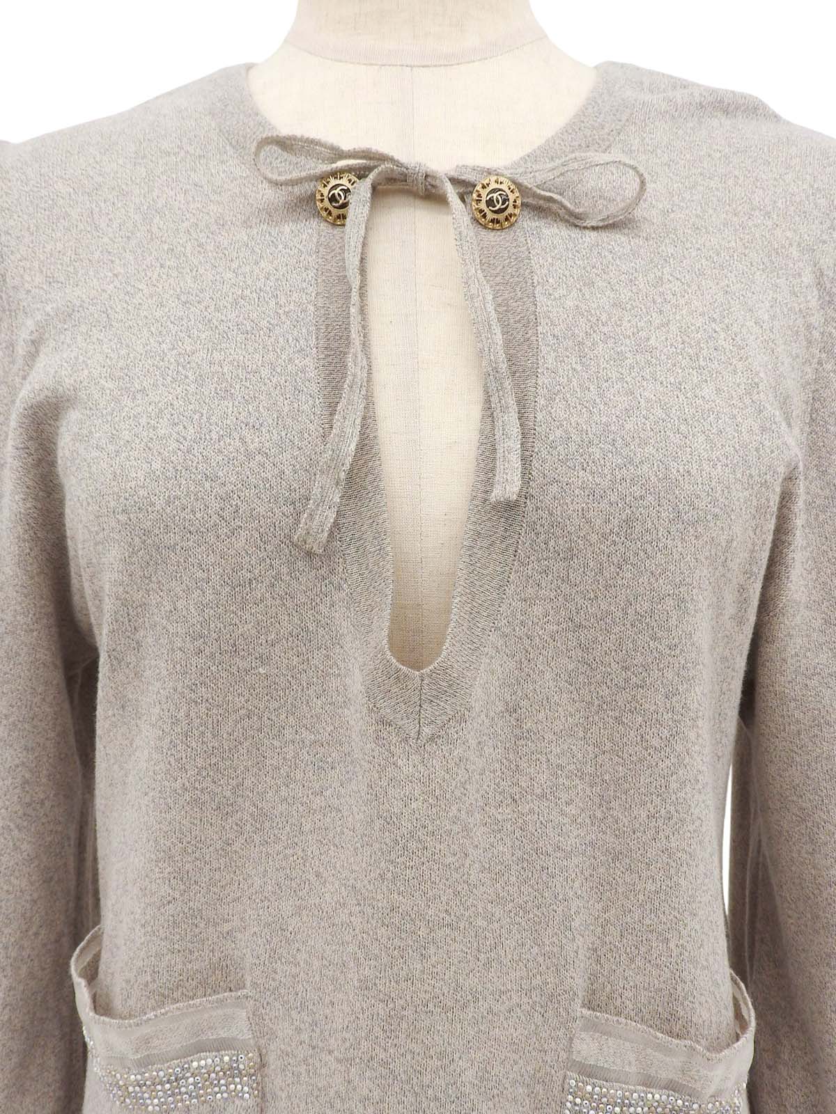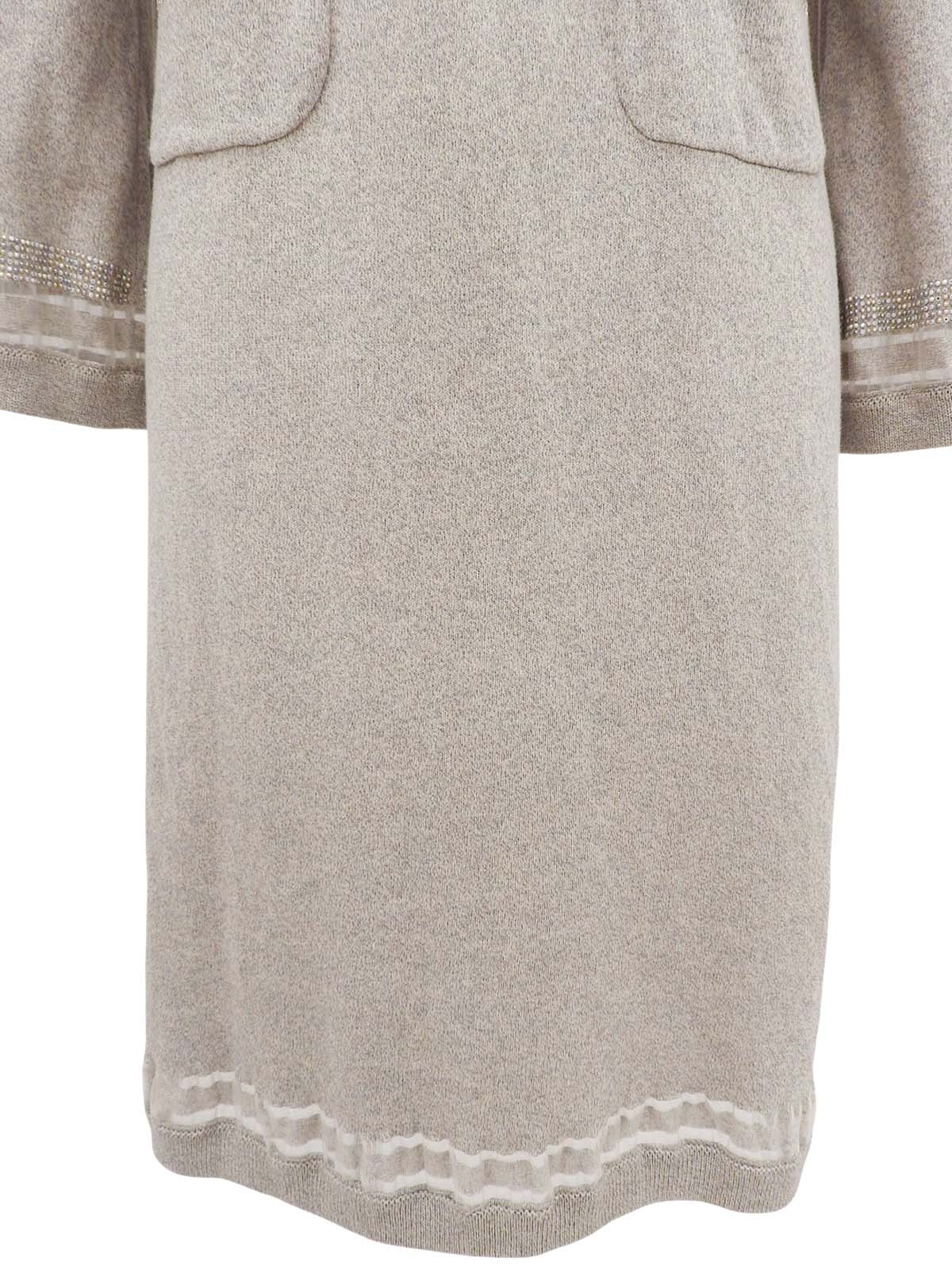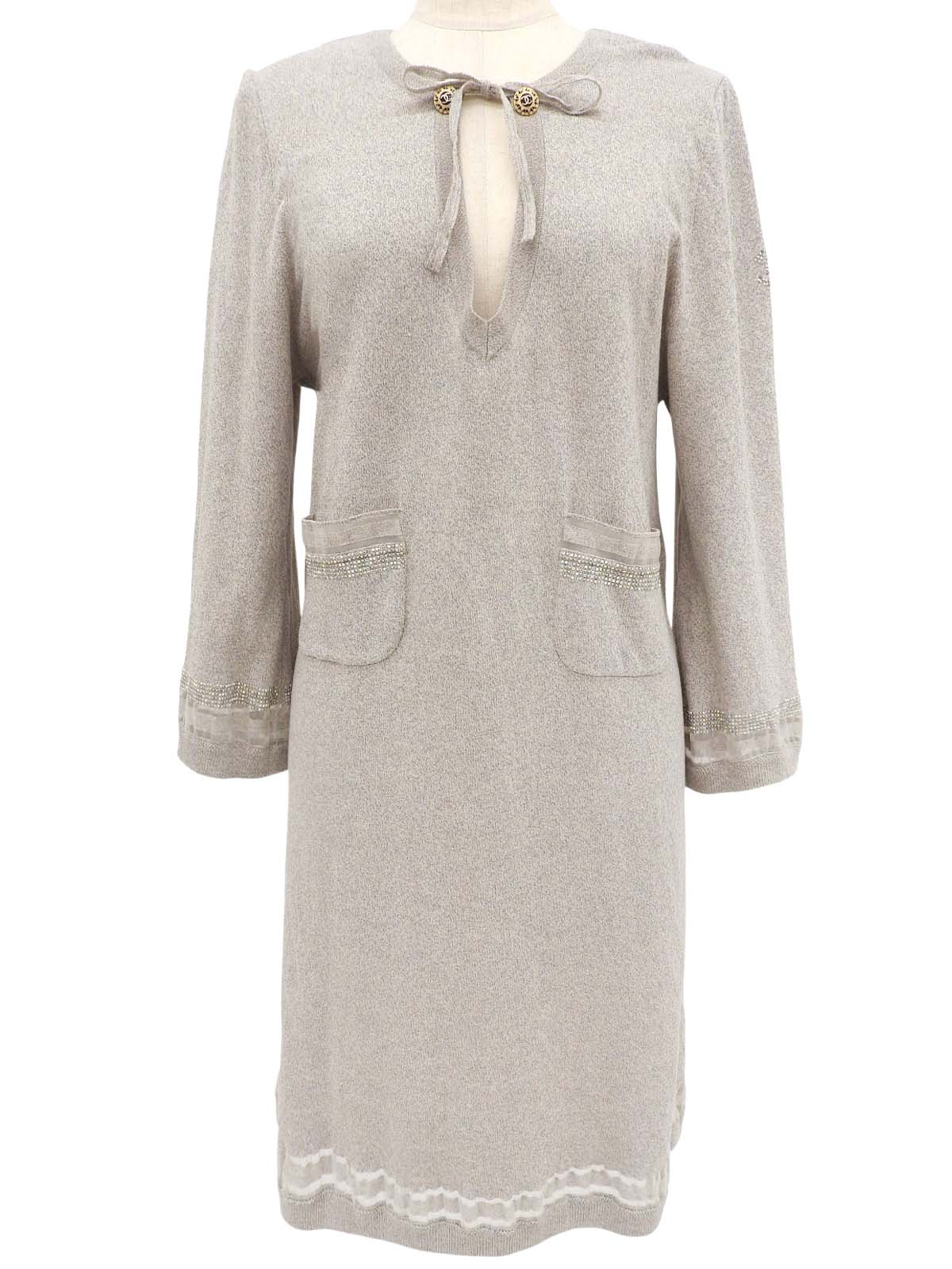 ラインストーントリムデザインCCマークボタンワンピース グレージュ