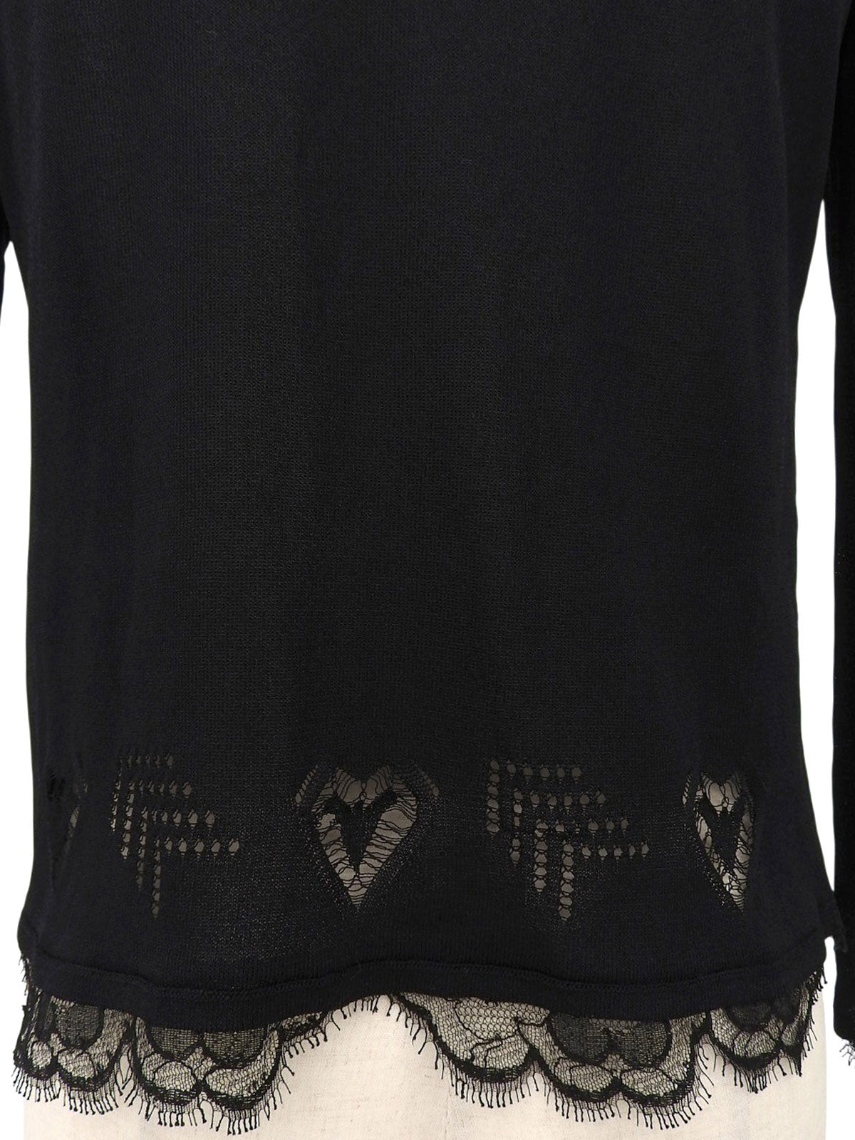 レースハートデザインCCマークプレートシアーカーディガン ブラック