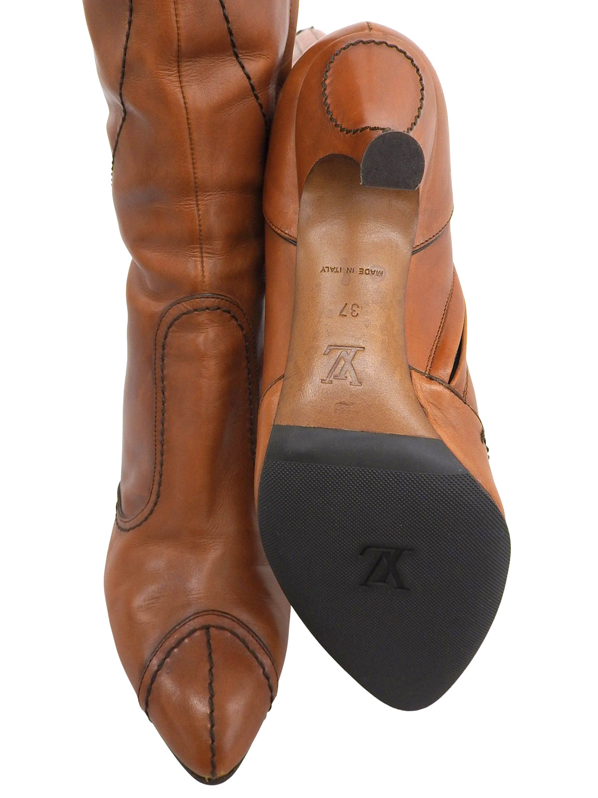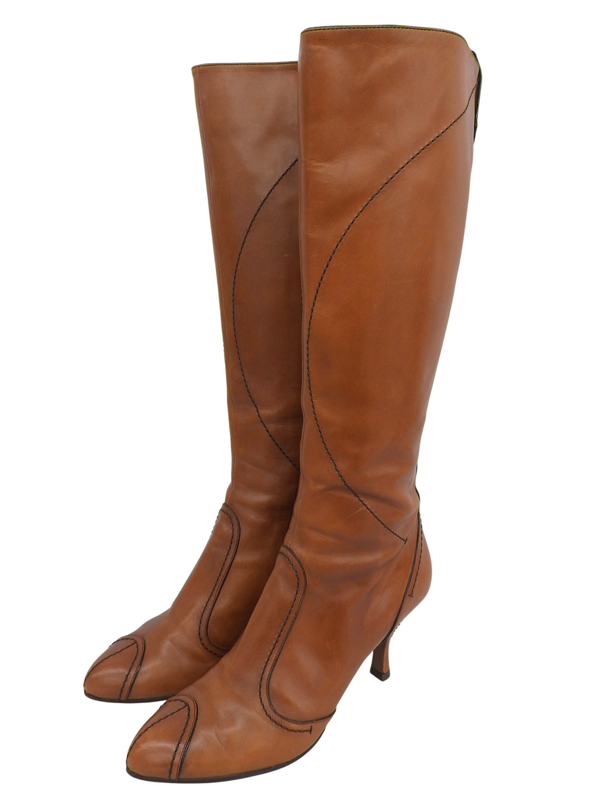 レザーピンヒールロングブーツ キャメル
