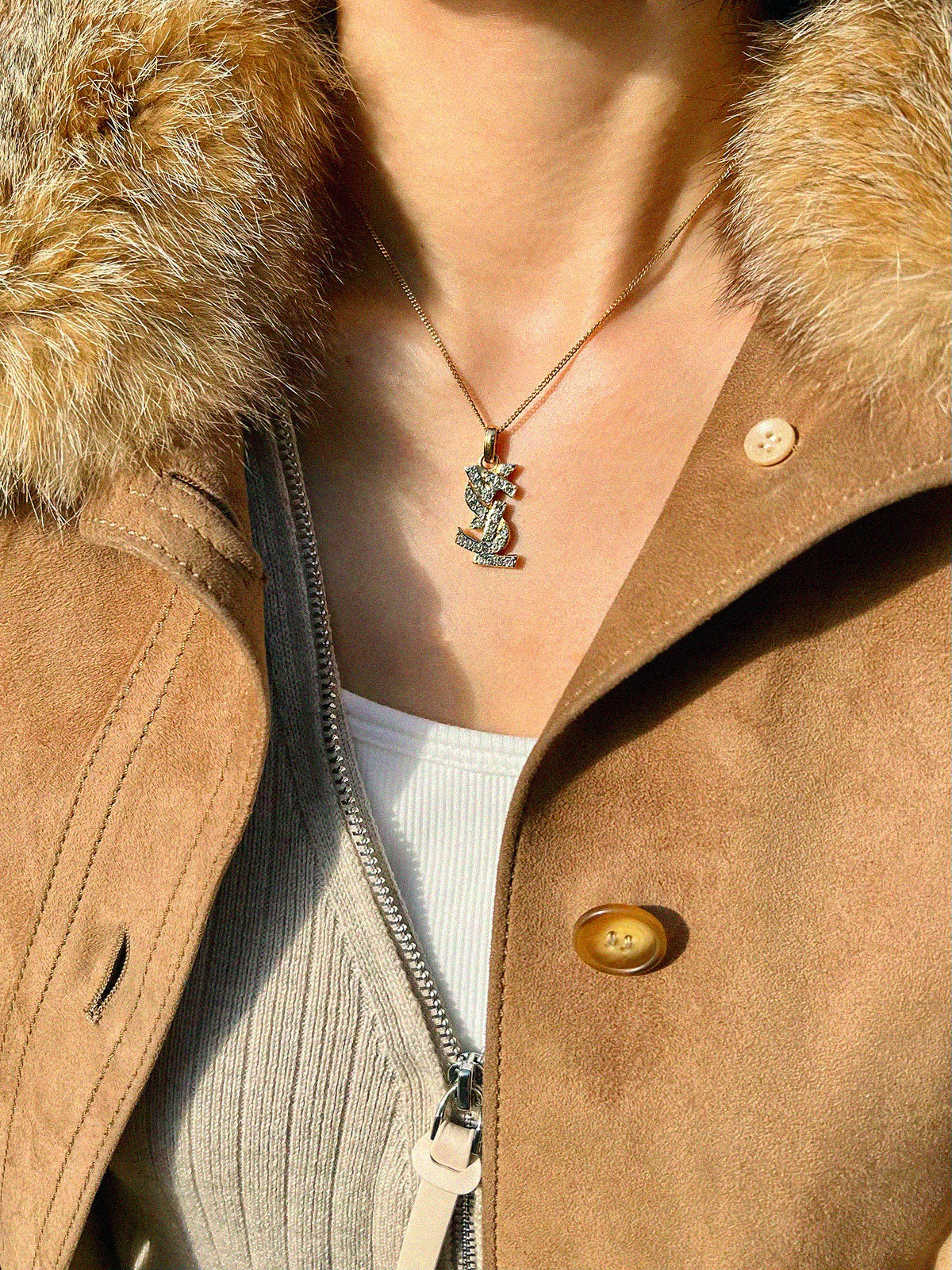 ラインストーンロゴネックレス ゴールド