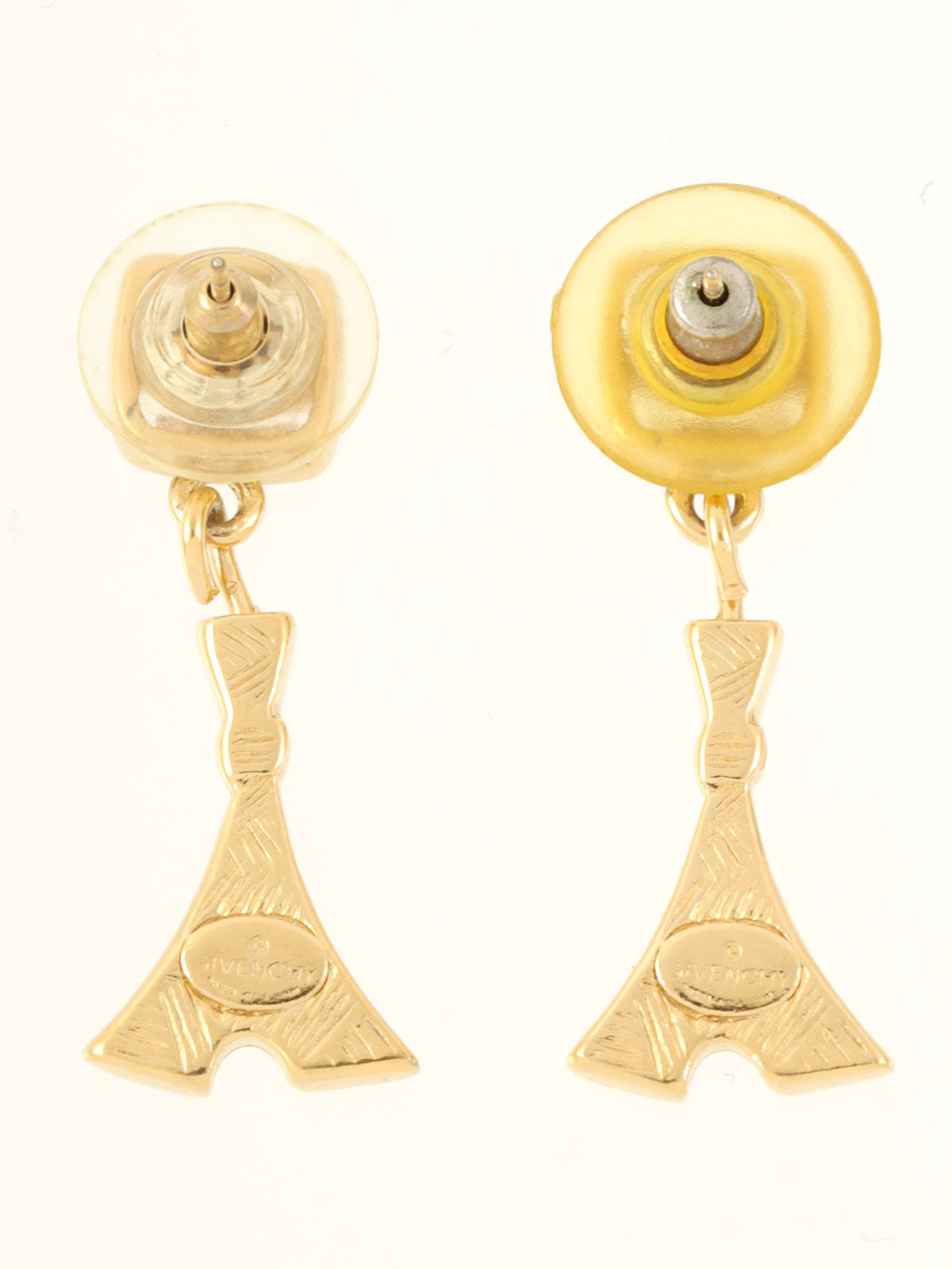 ラインストーンロゴプレートエッフェルタワーピアス ゴールド