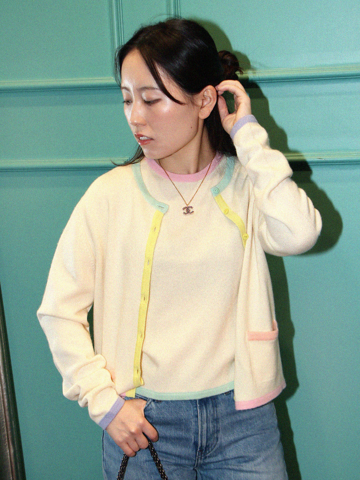 1998年製 カシミアロゴボタンニットアンサンブル アイボリー/マルチ