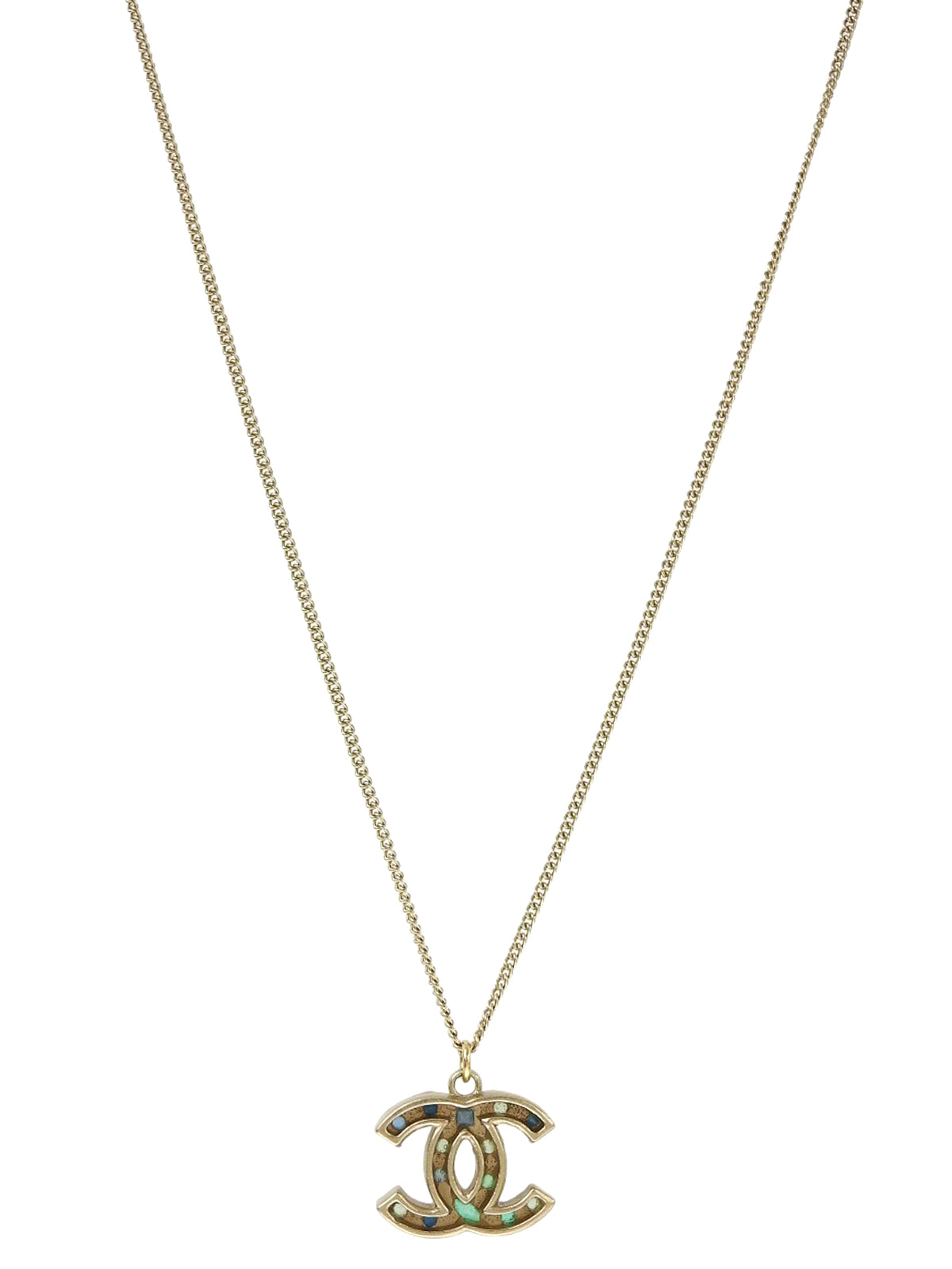 2007年製 カラーストーンCCマークネックレス ゴールド/グリーン/ブルー