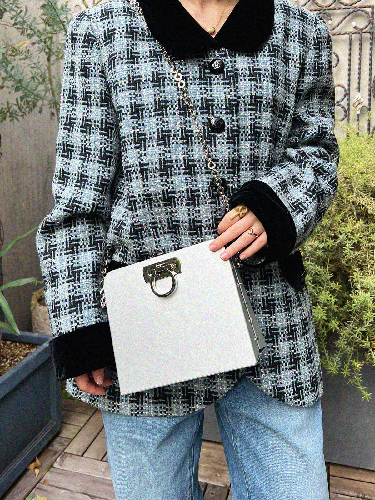 アルミガンチーニプレートチェーンショルダーバッグ シルバー