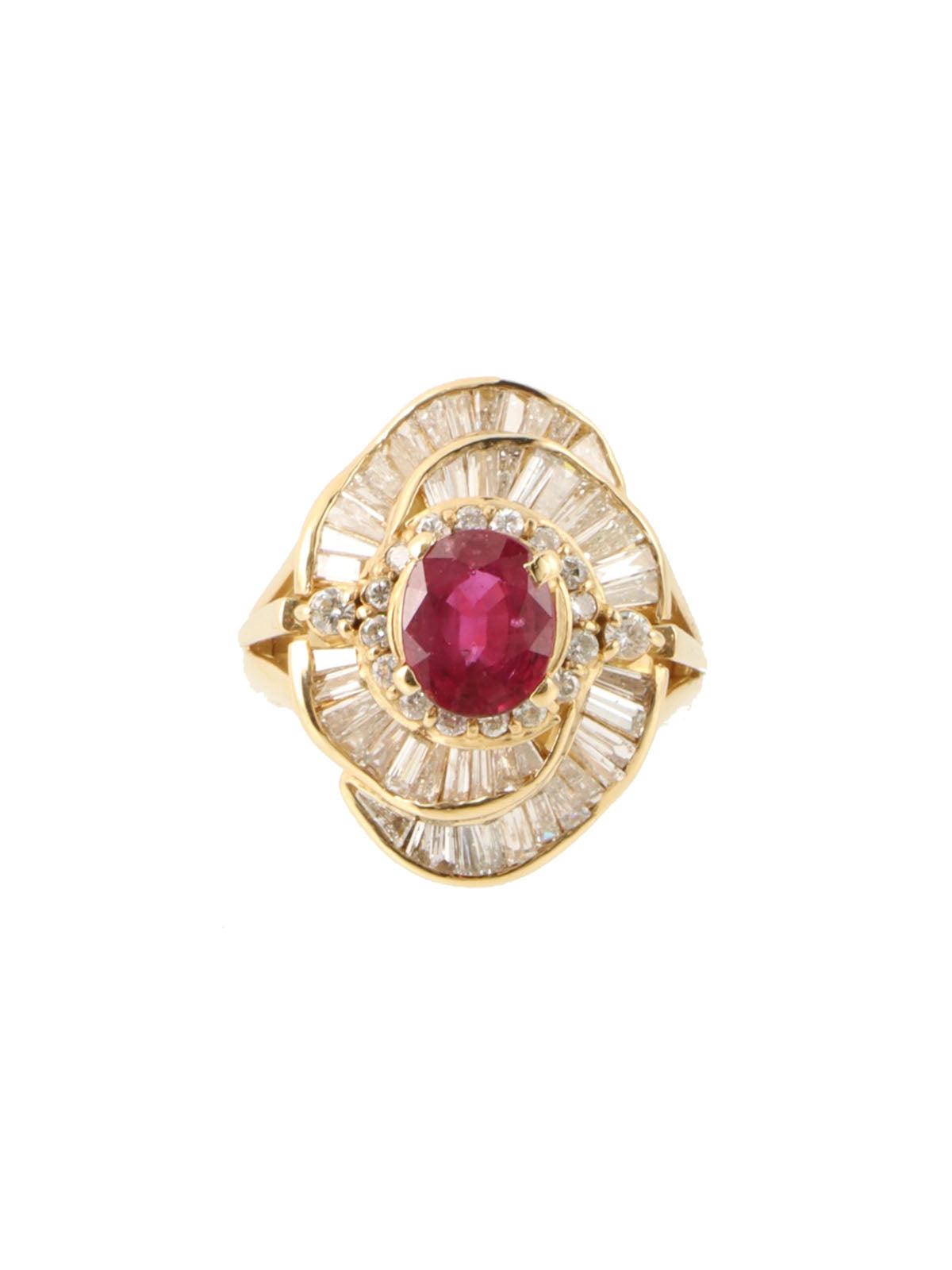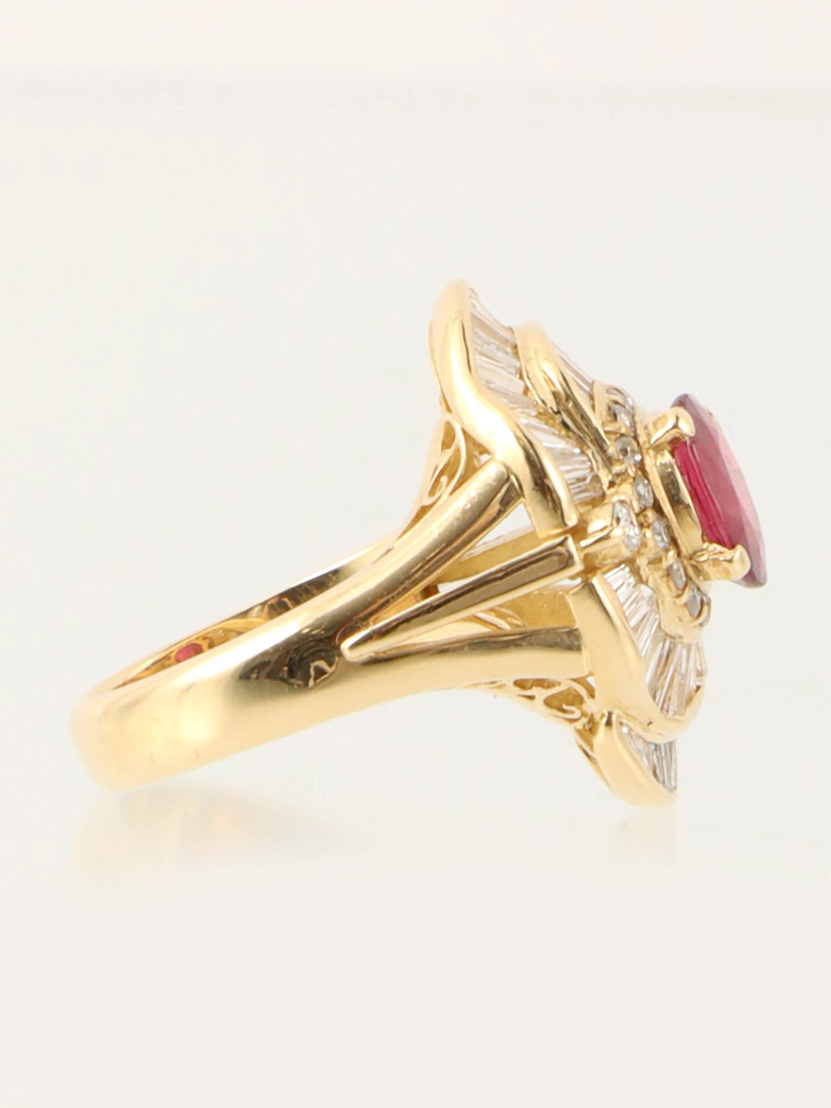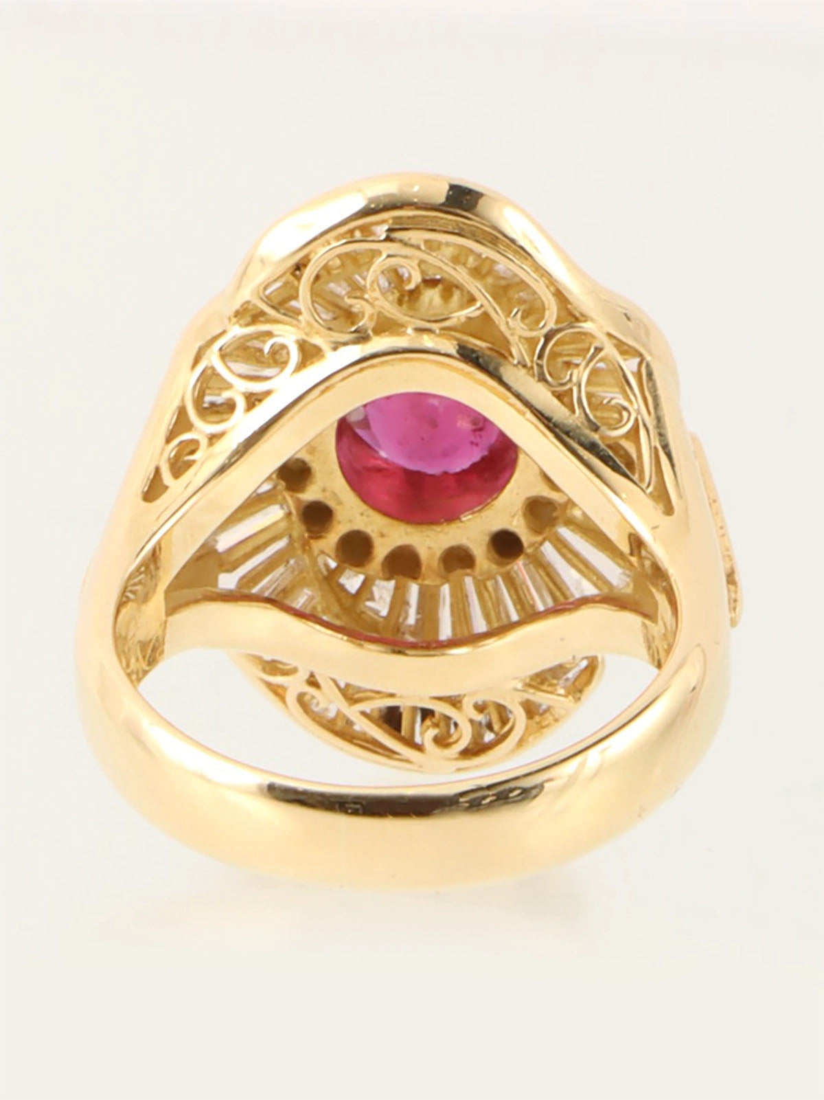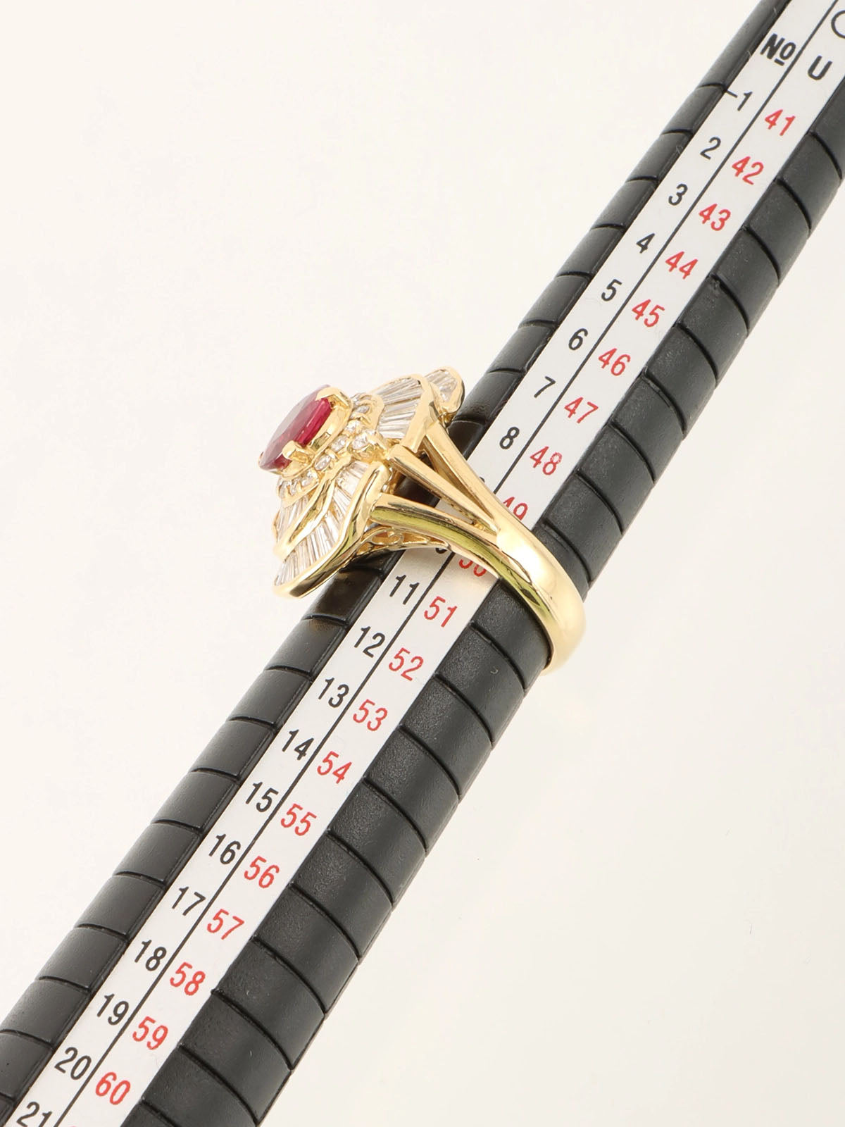 18Kダイヤモンドルビーオーバルデザインリング ゴールド/チェリーレッド