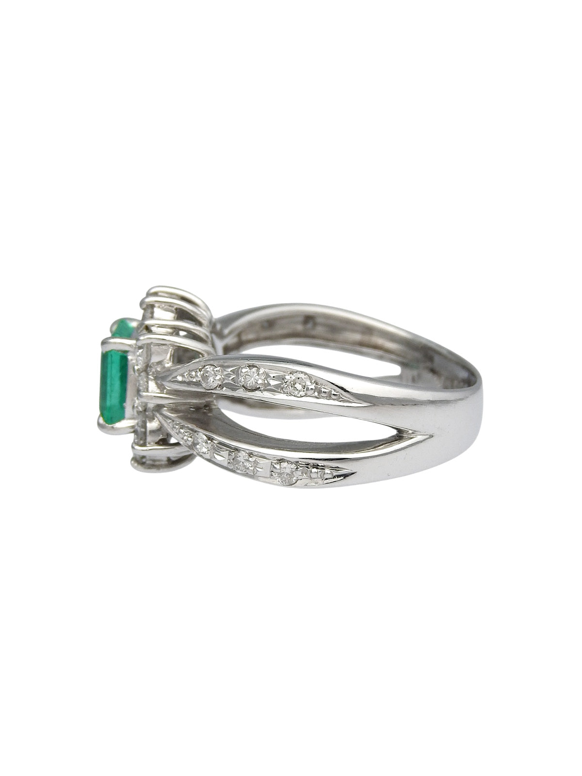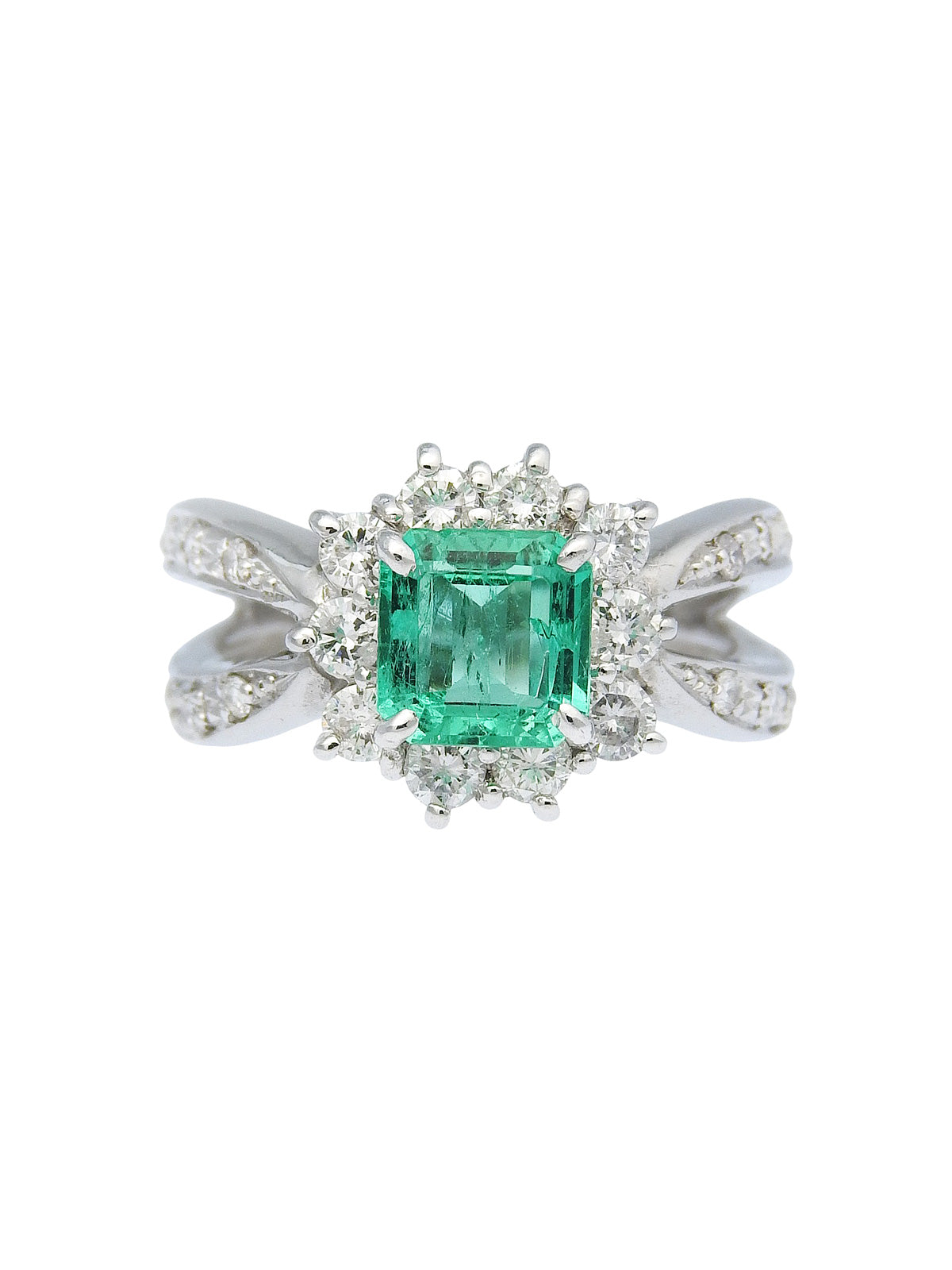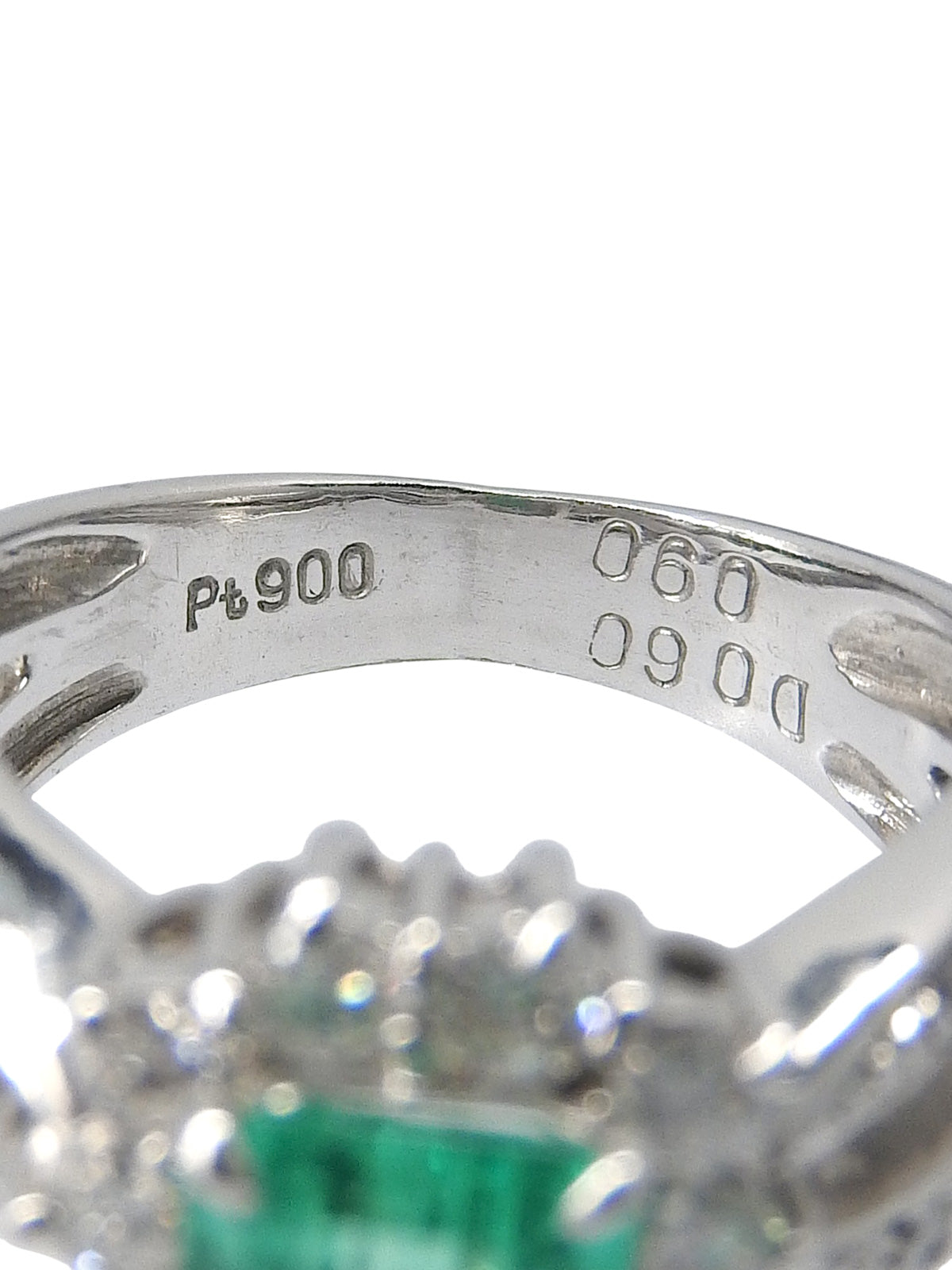プラチナエメラルドダイヤモンドデザインリング シルバー/グリーン