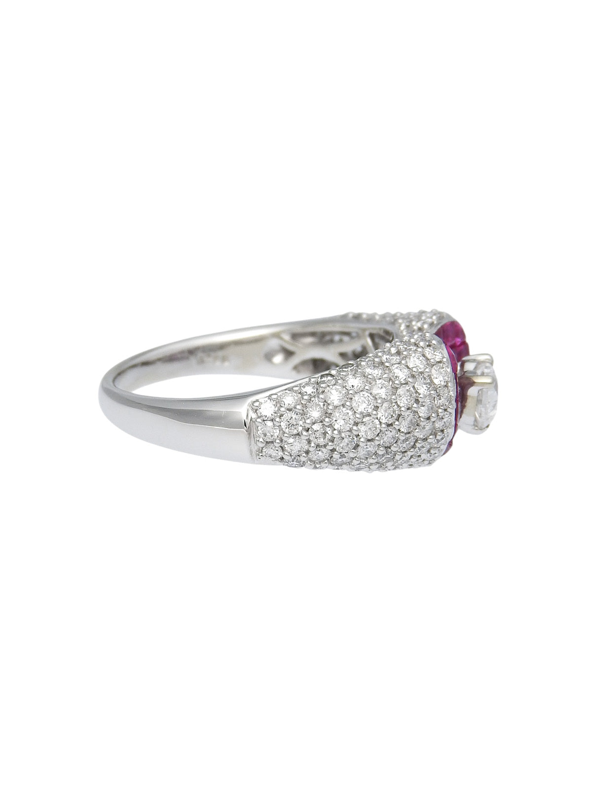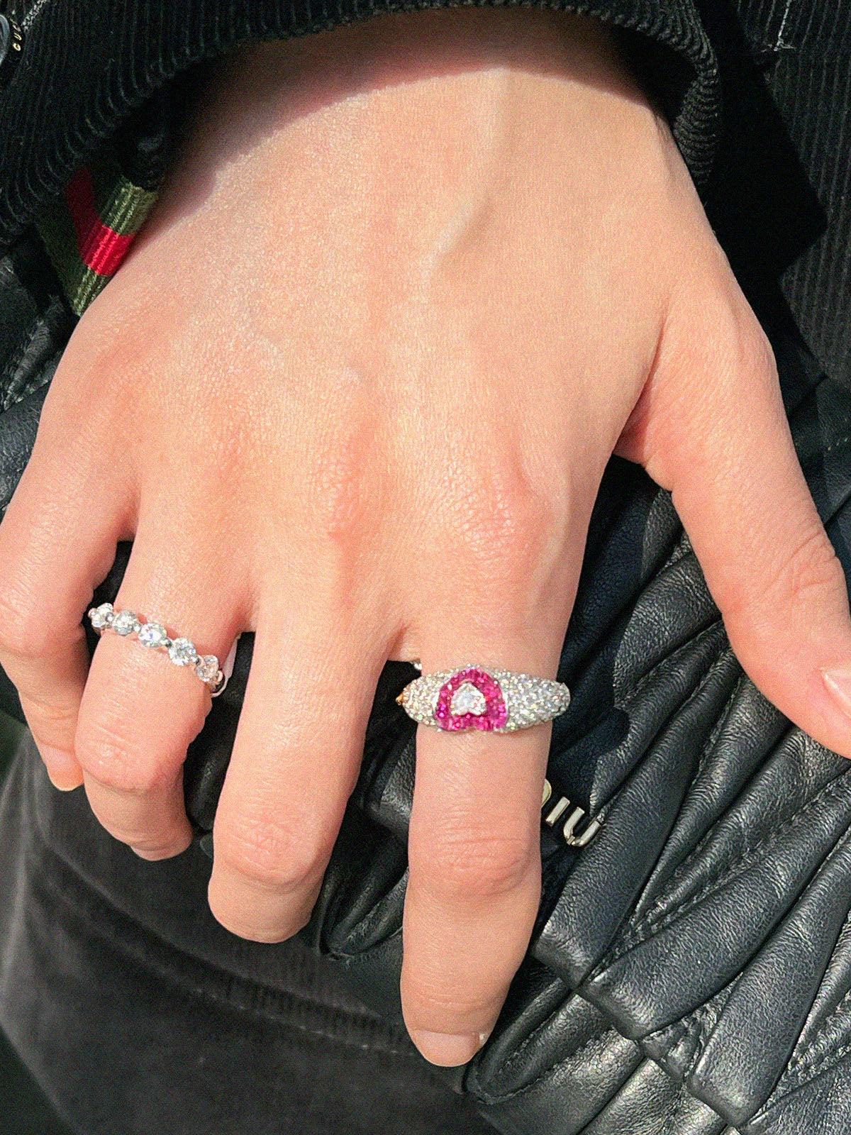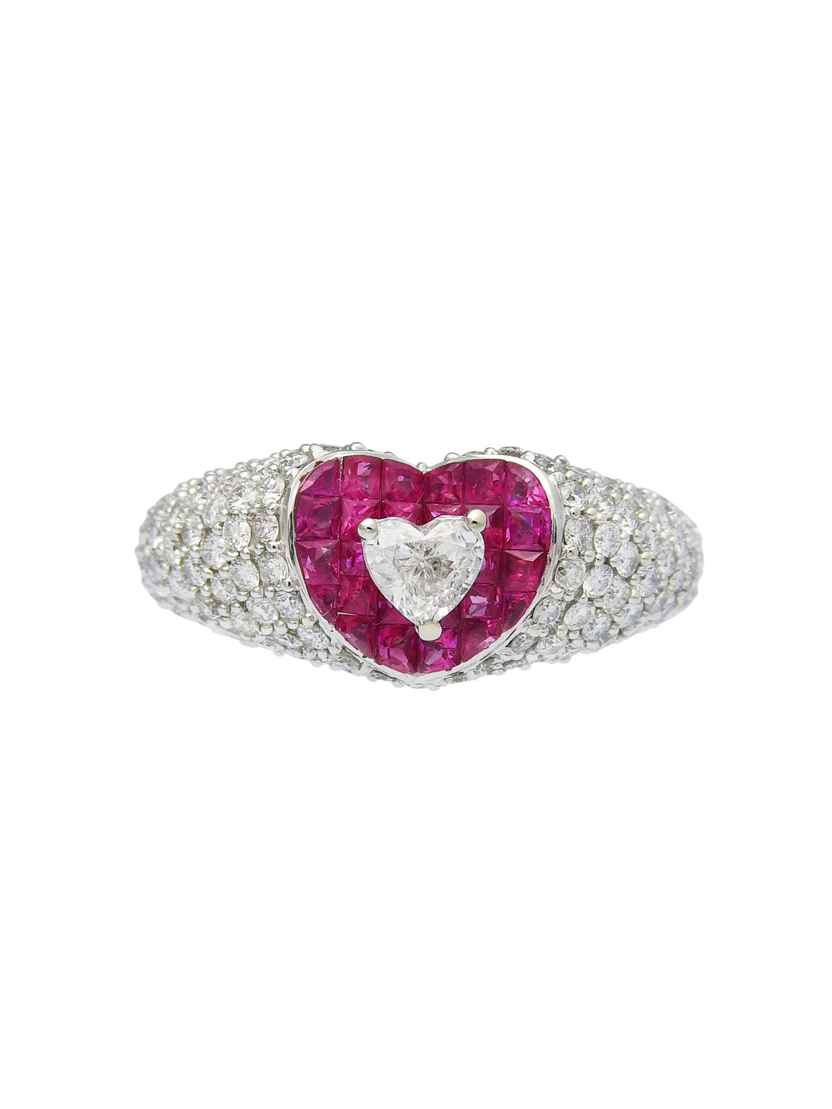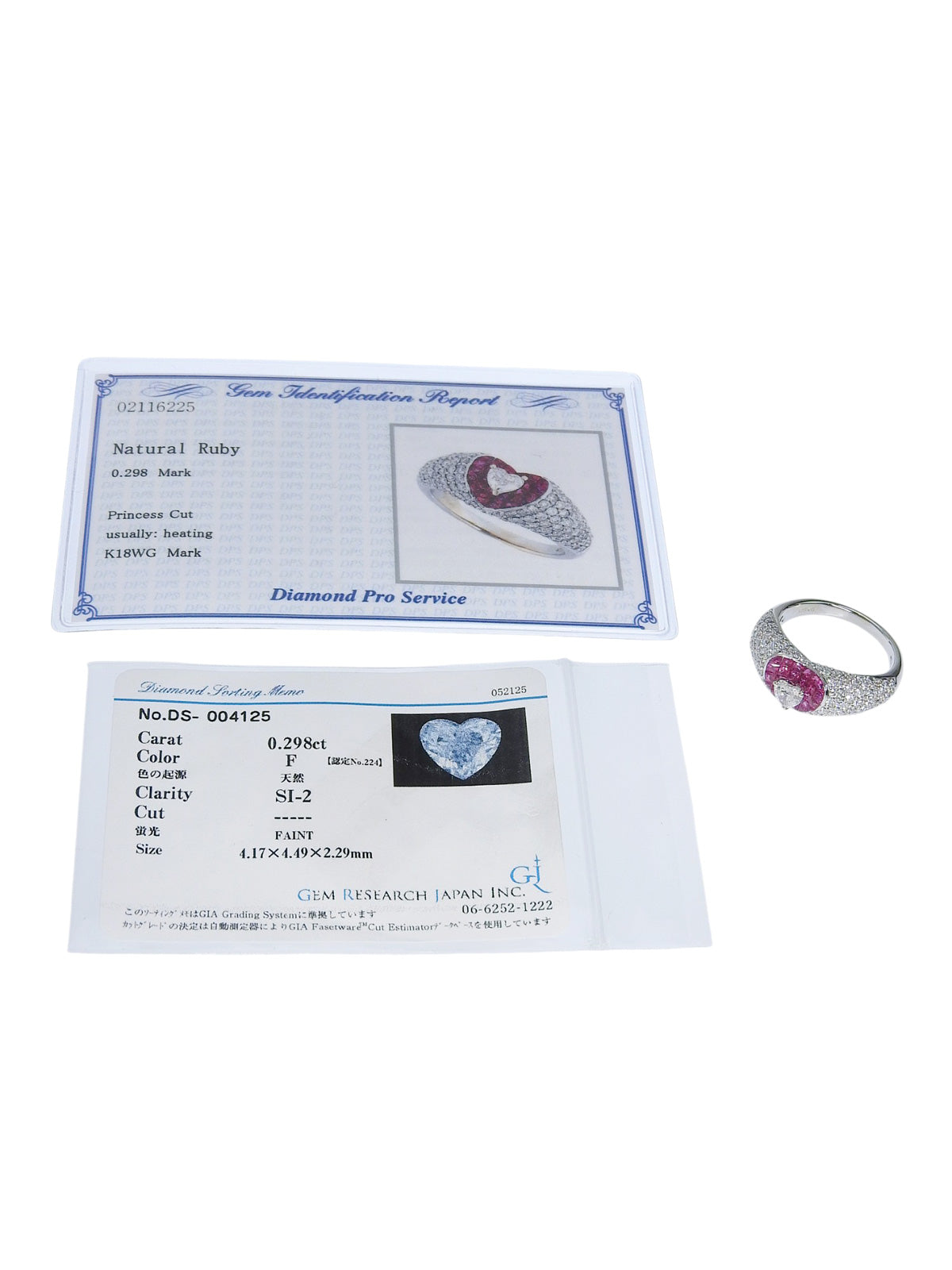 18Kルビーダイヤモンドハートリング シルバー/チェリーレッド