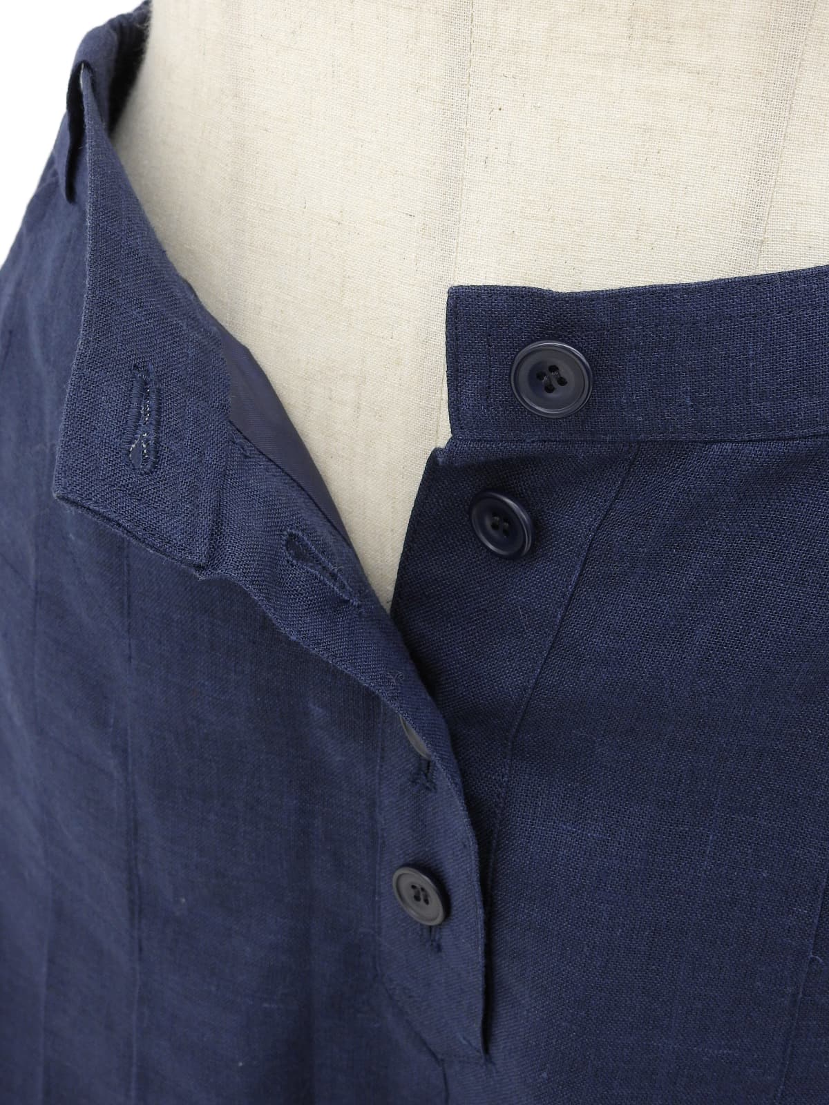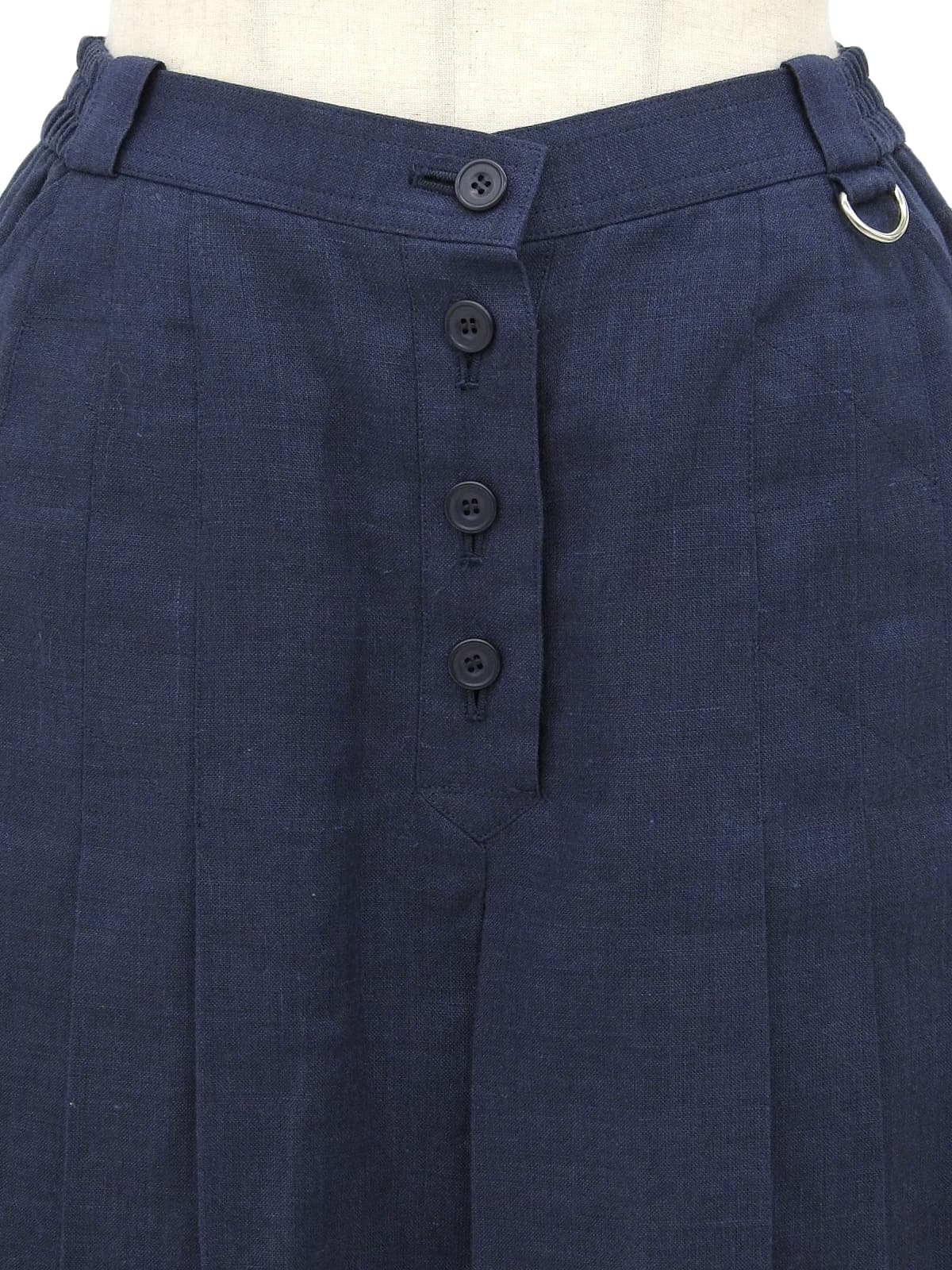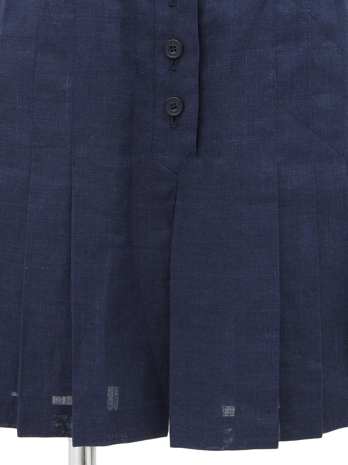リネンロゴ刺繍プリーツキュロットパンツ ネイビー
