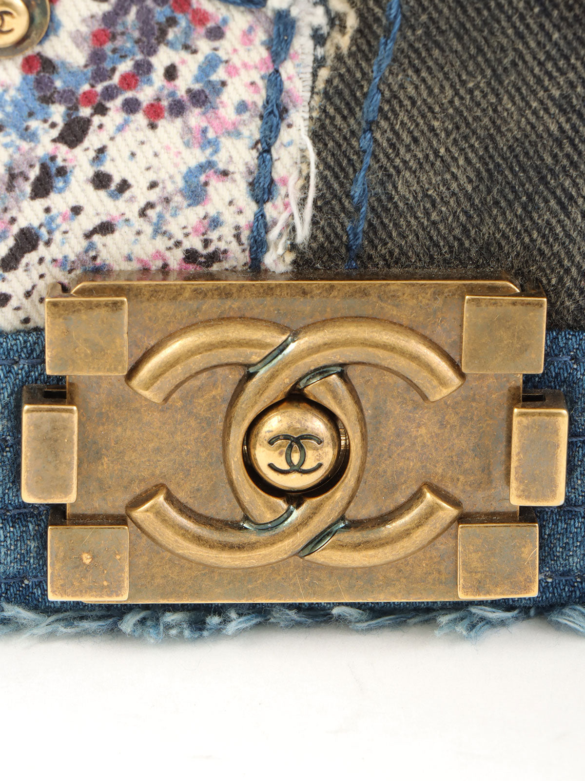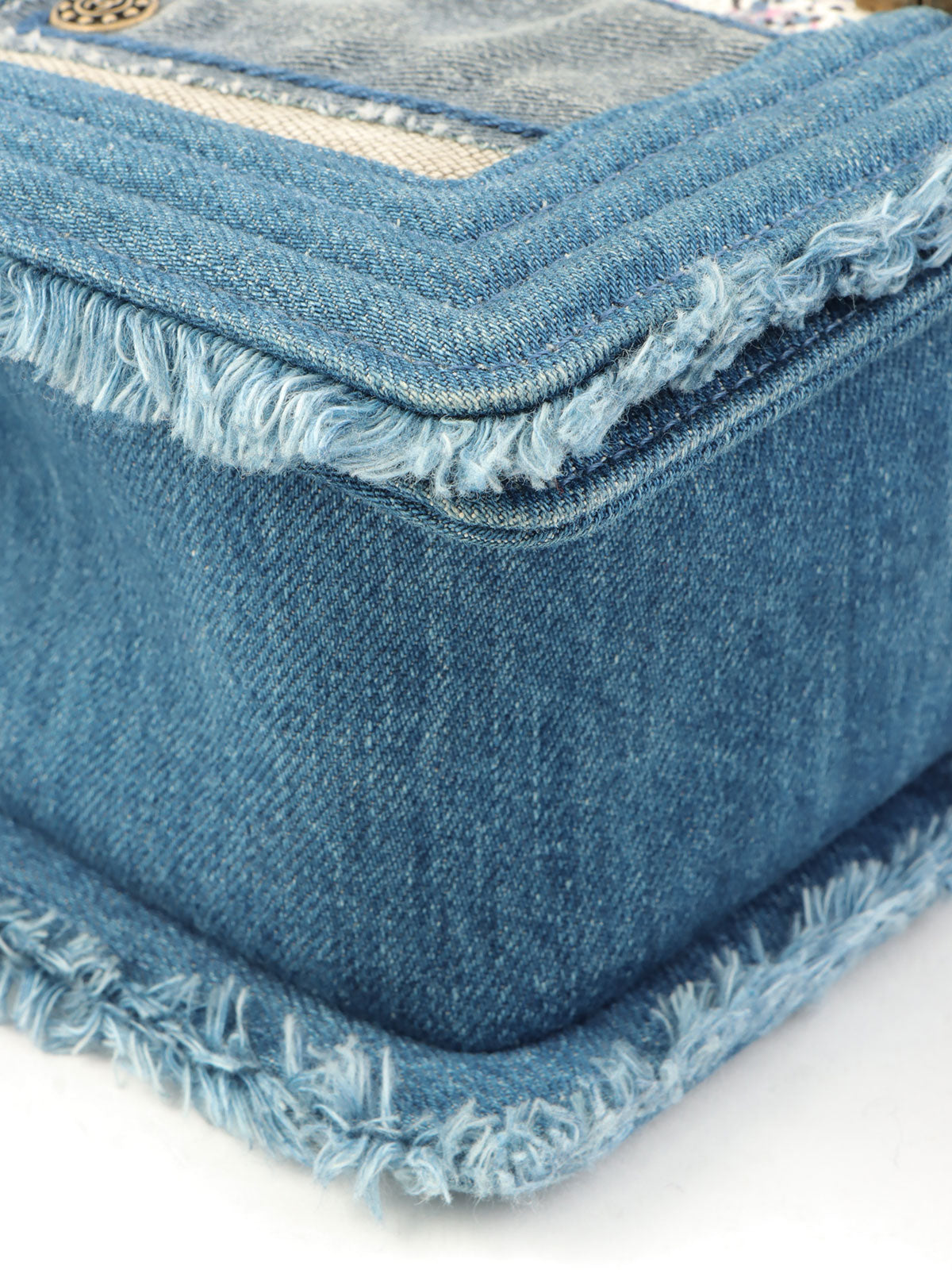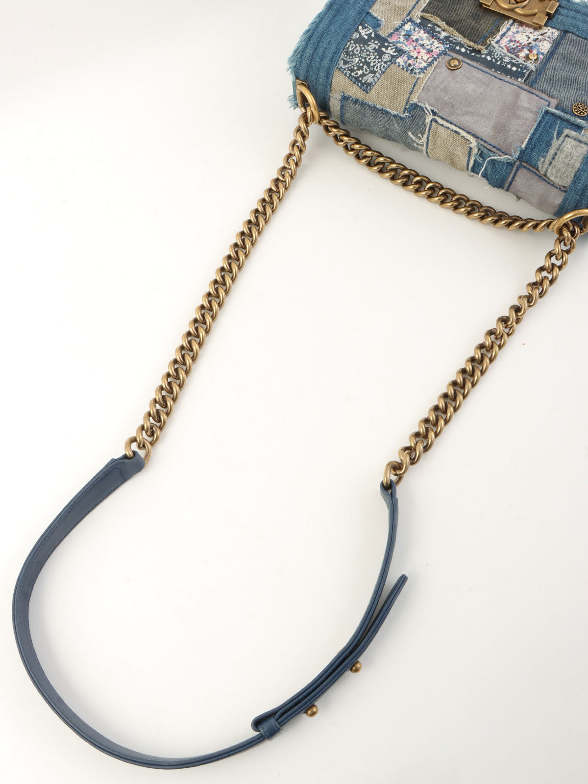 2014年頃製 デニムパッチワークボーイシャネルチェーンショルダーバッグ ブルー/マルチ