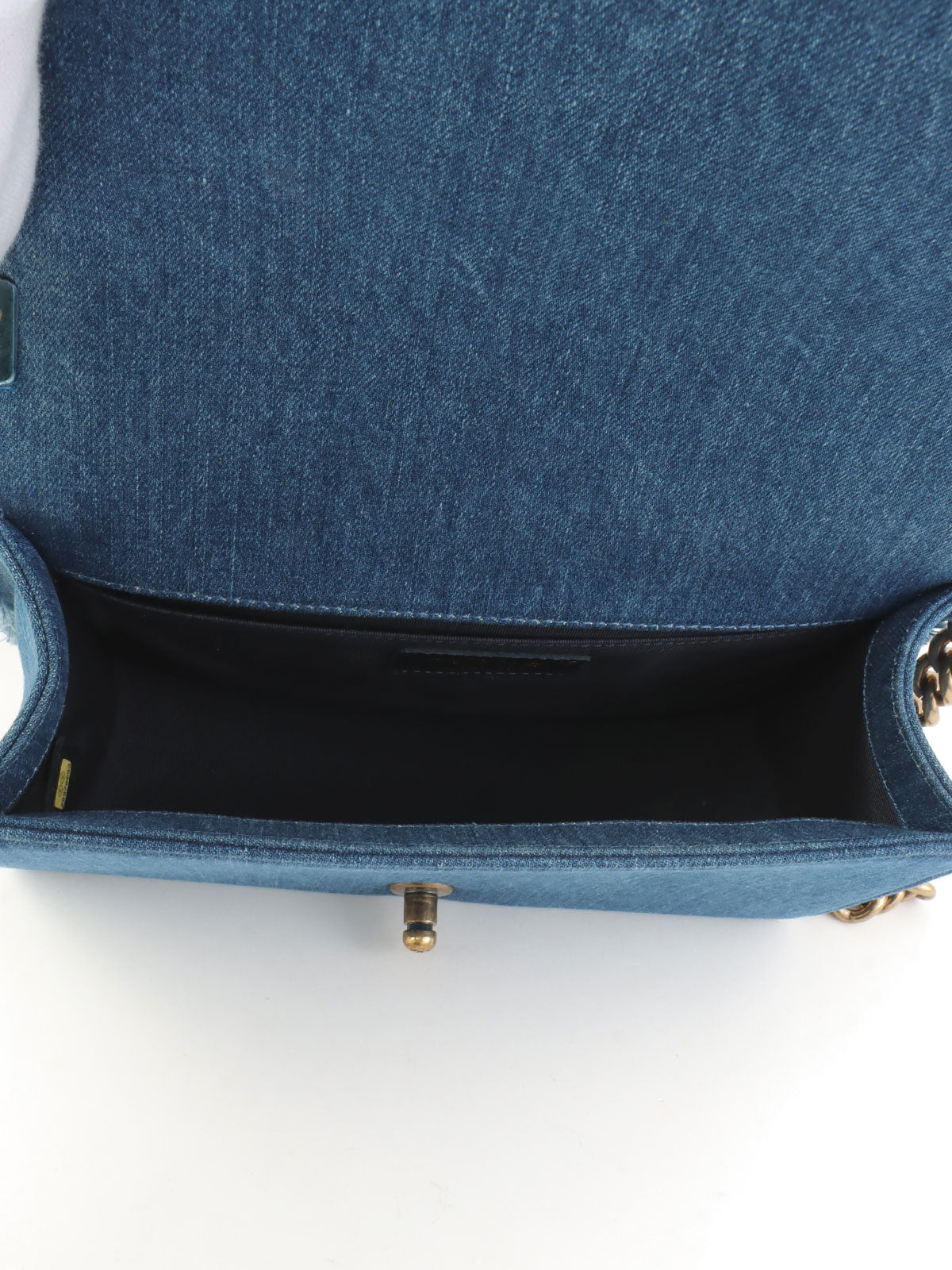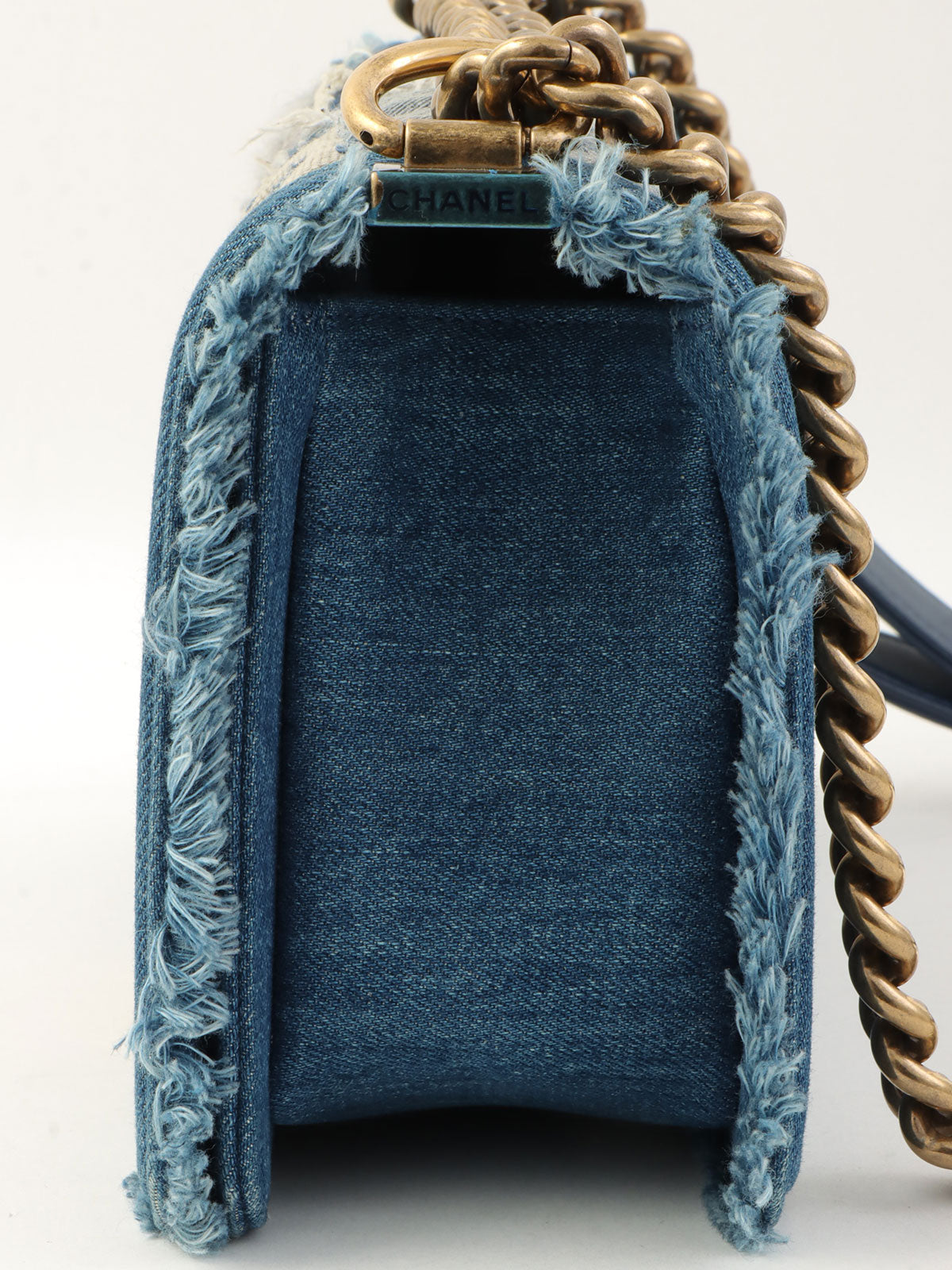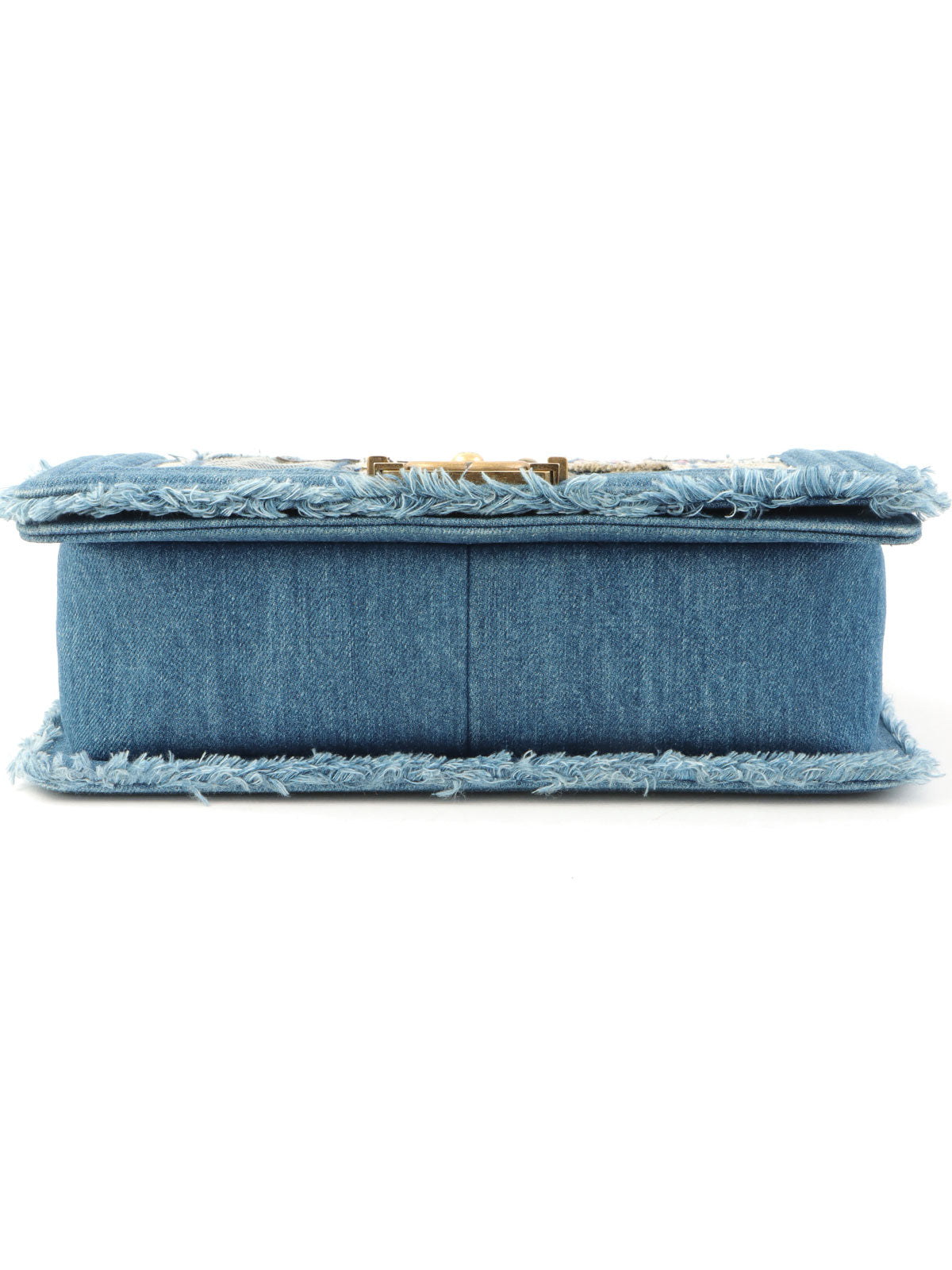 2014年頃製 デニムパッチワークボーイシャネルチェーンショルダーバッグ ブルー/マルチ