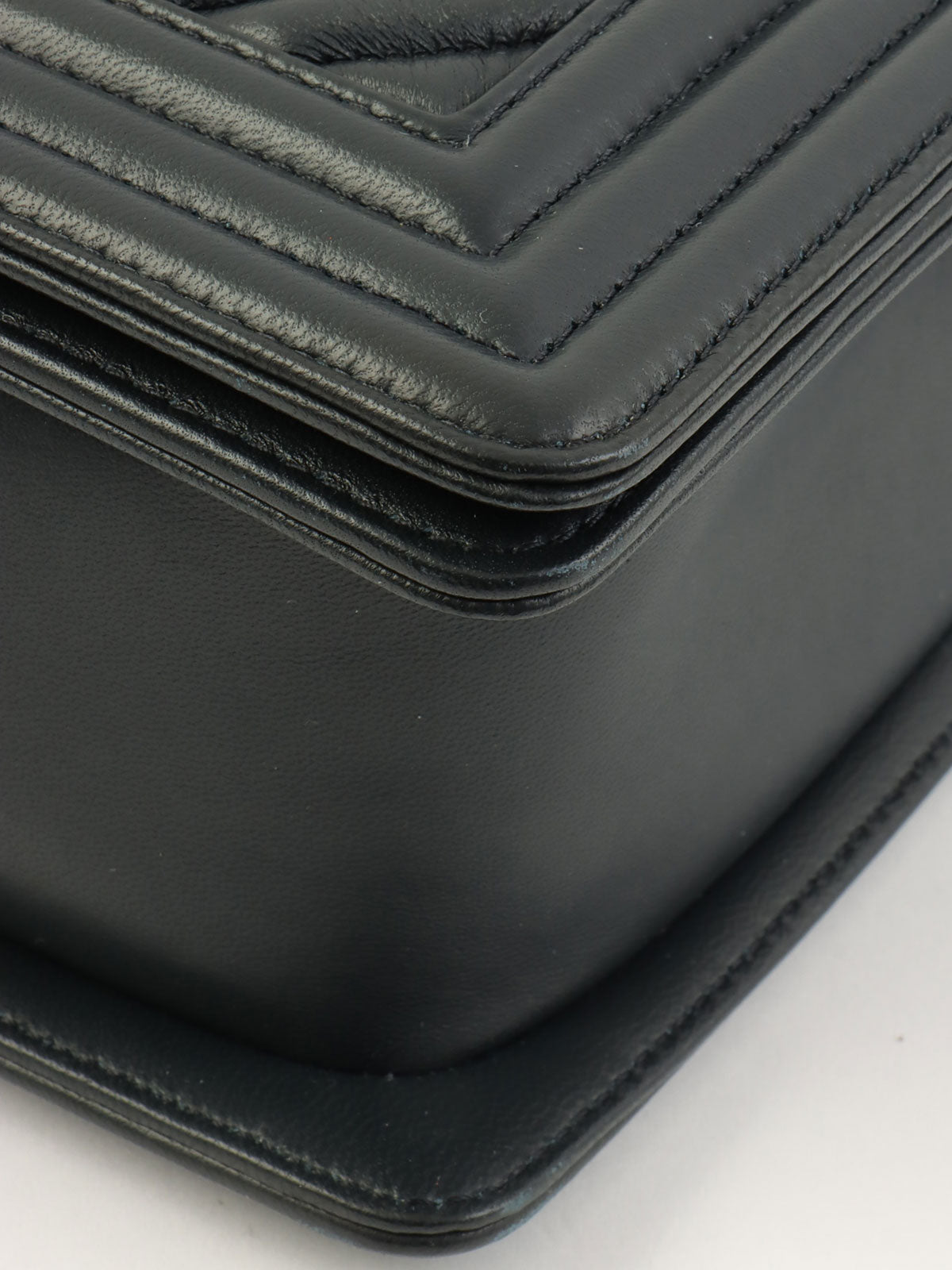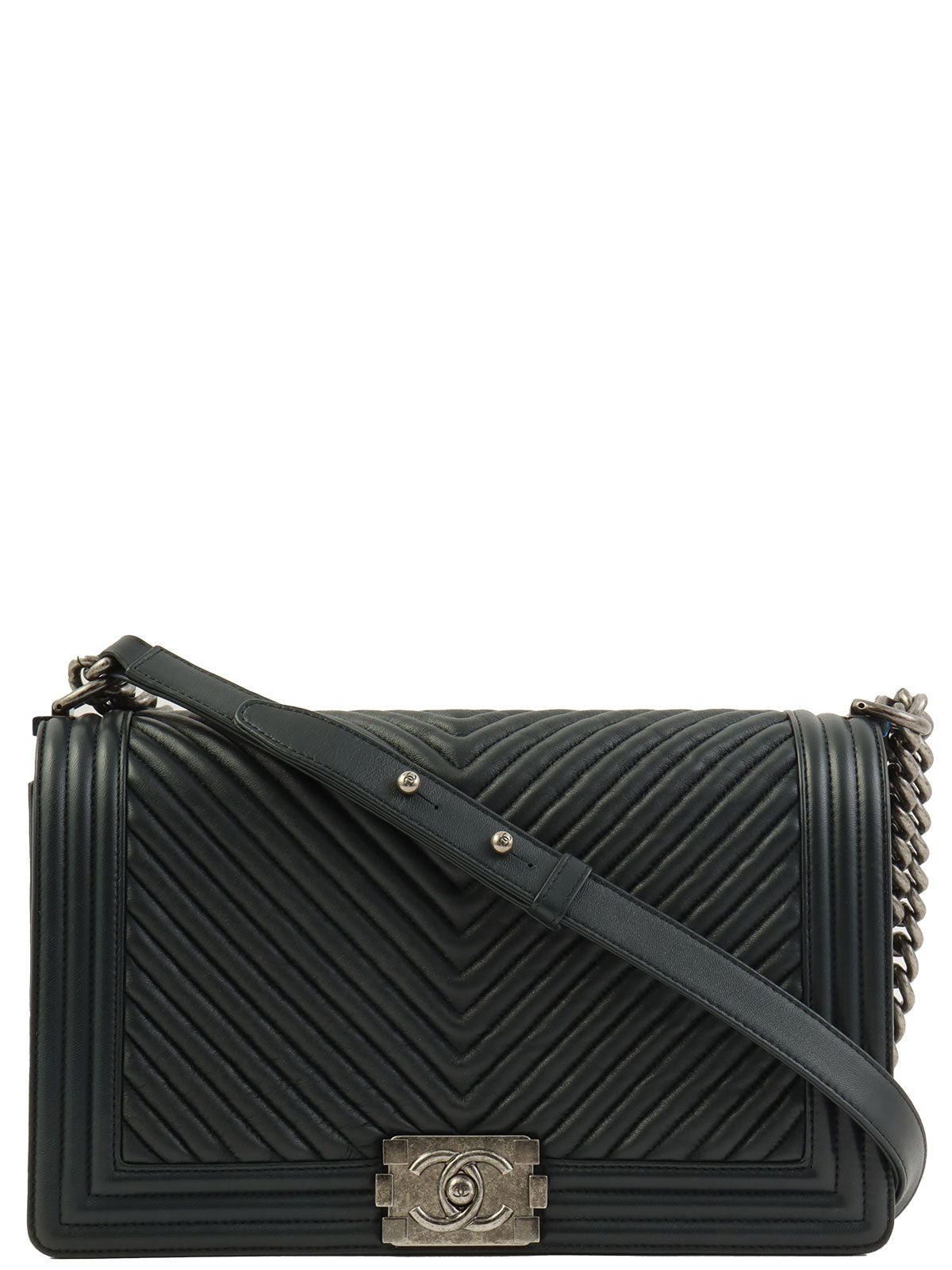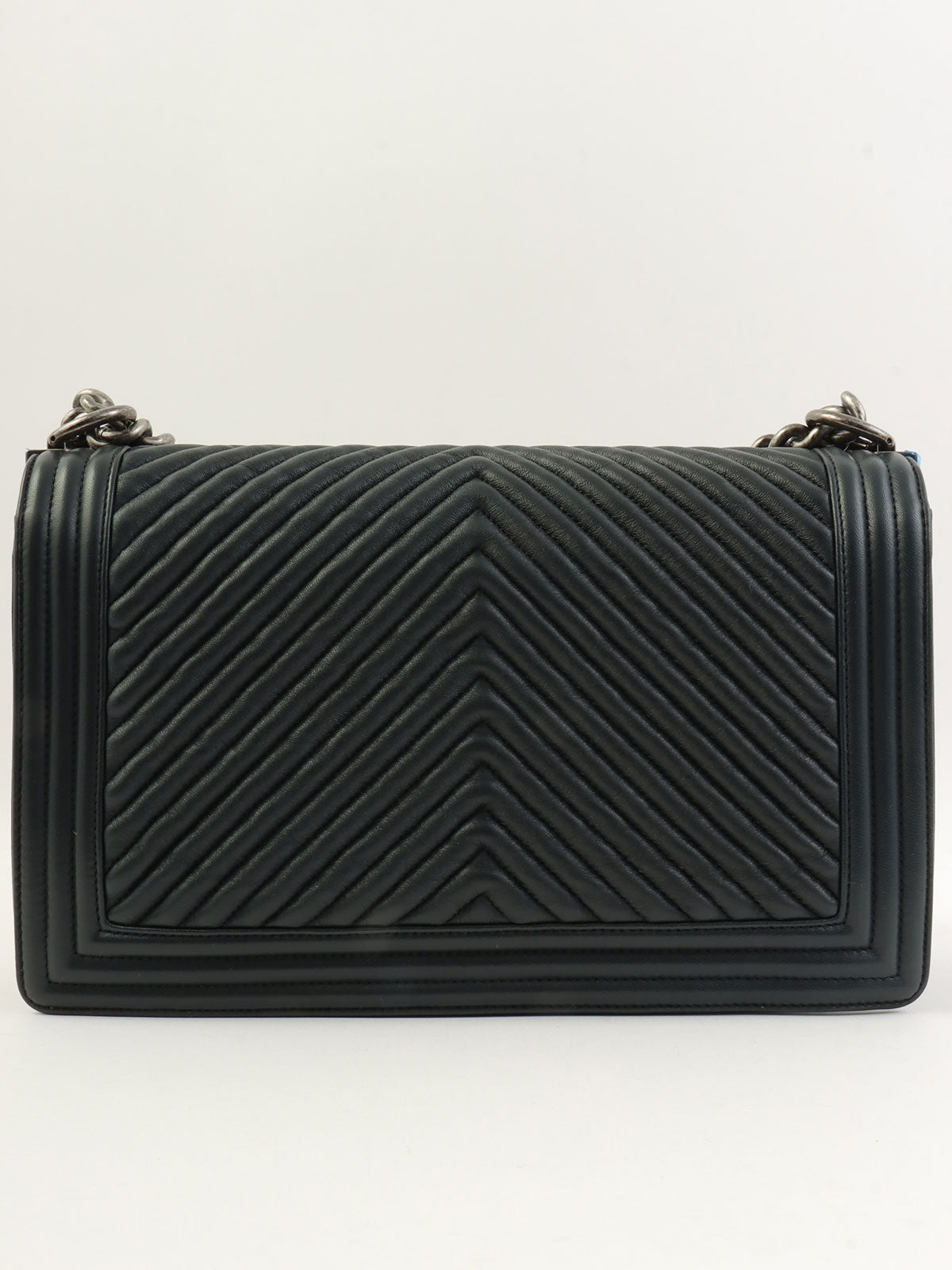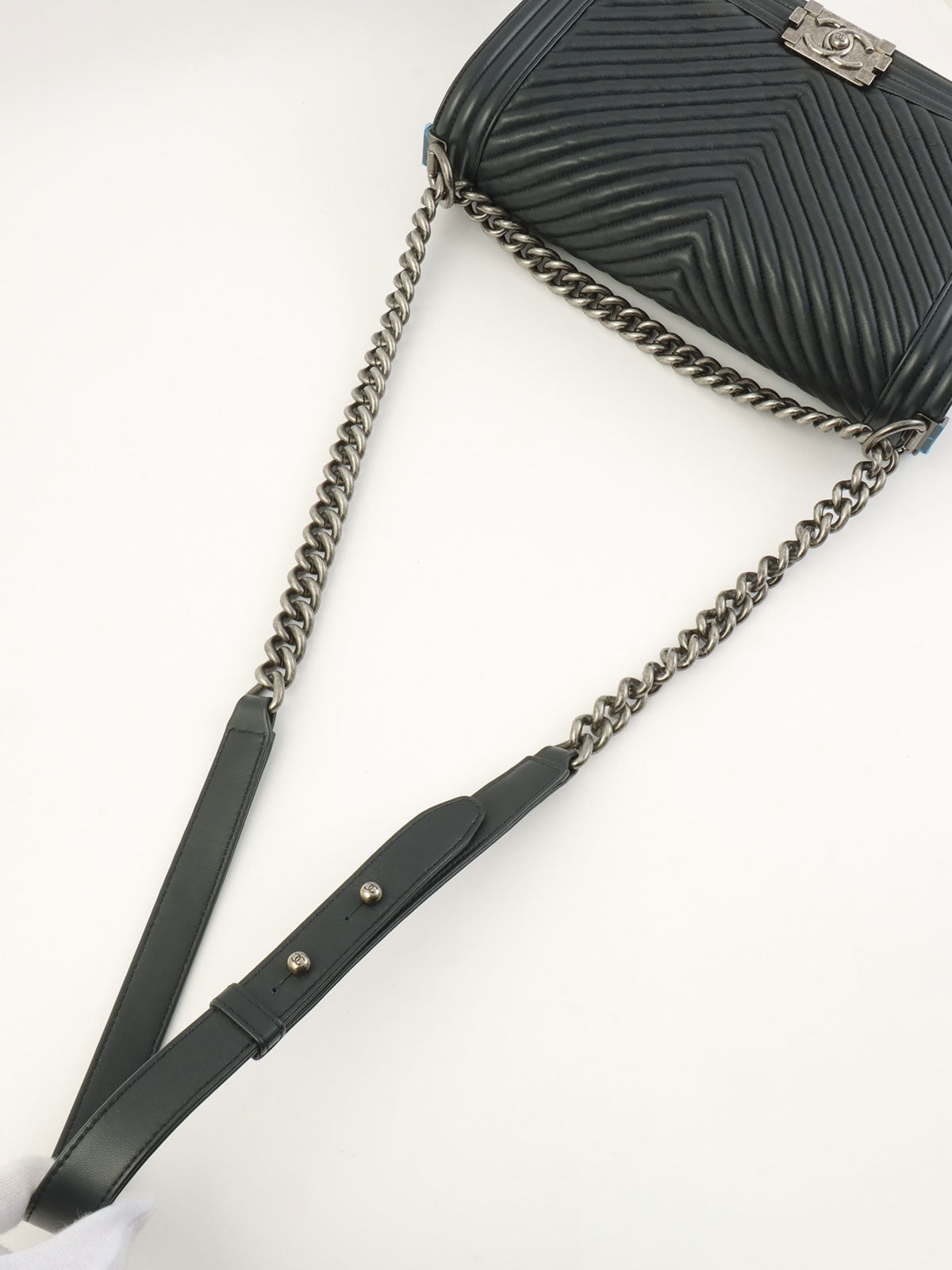 2014年頃製 シェブロンステッチボーイシャネルチェーンショルダーバッグ ブラック