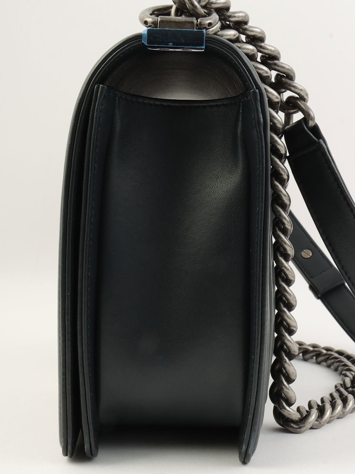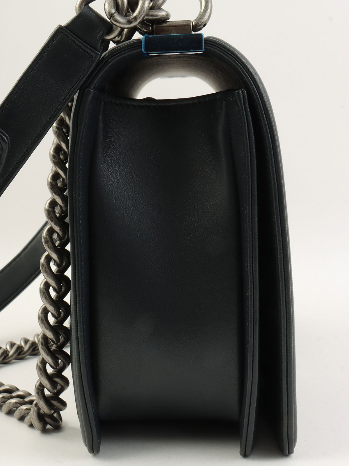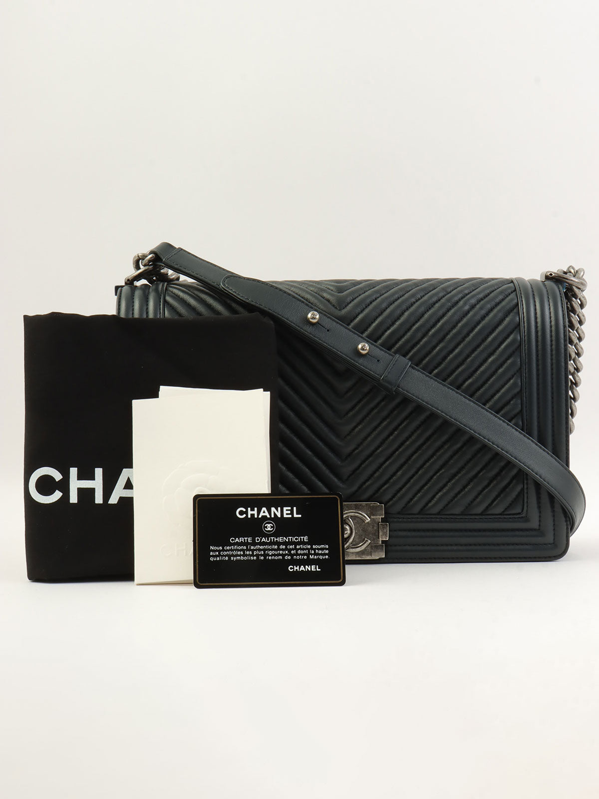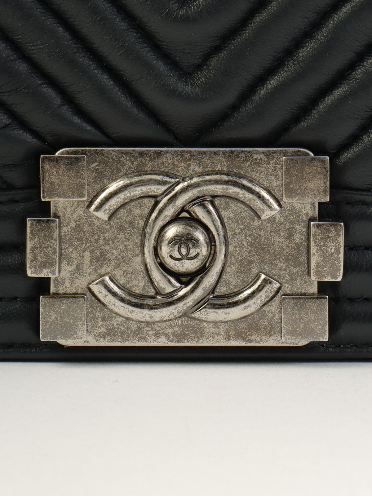2014年頃製 シェブロンステッチボーイシャネルチェーンショルダーバッグ ブラック