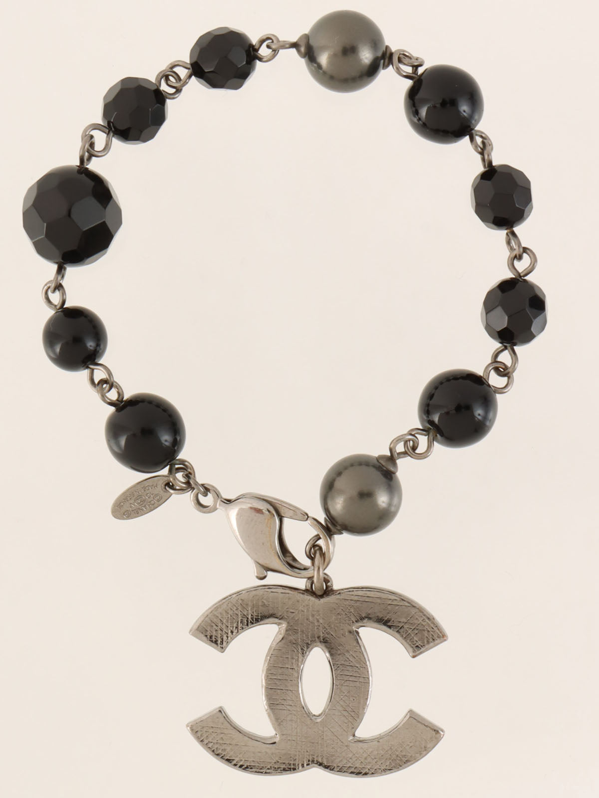 2010年製 CCマークプレートボールチェーンブレスレット ブラック/シルバー