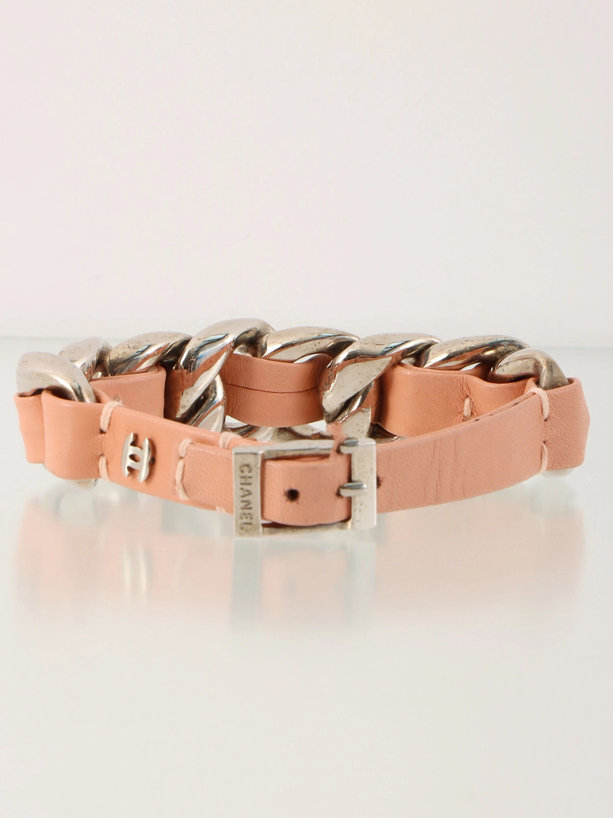 2002年製 チェーンレザーCCマークプレートブレスレット ピンク/シルバー