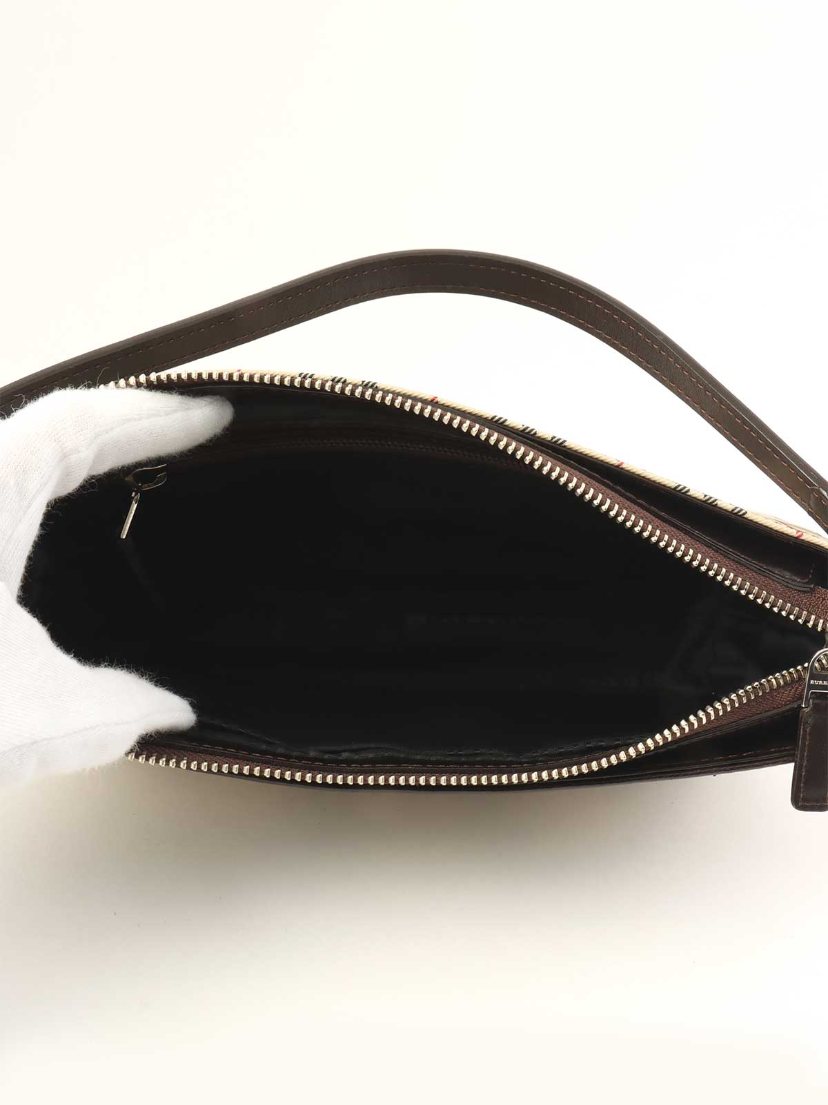 ノバチェックパターンロゴプレートショルダーバック ベージュ/ダークブラウン/マルチ