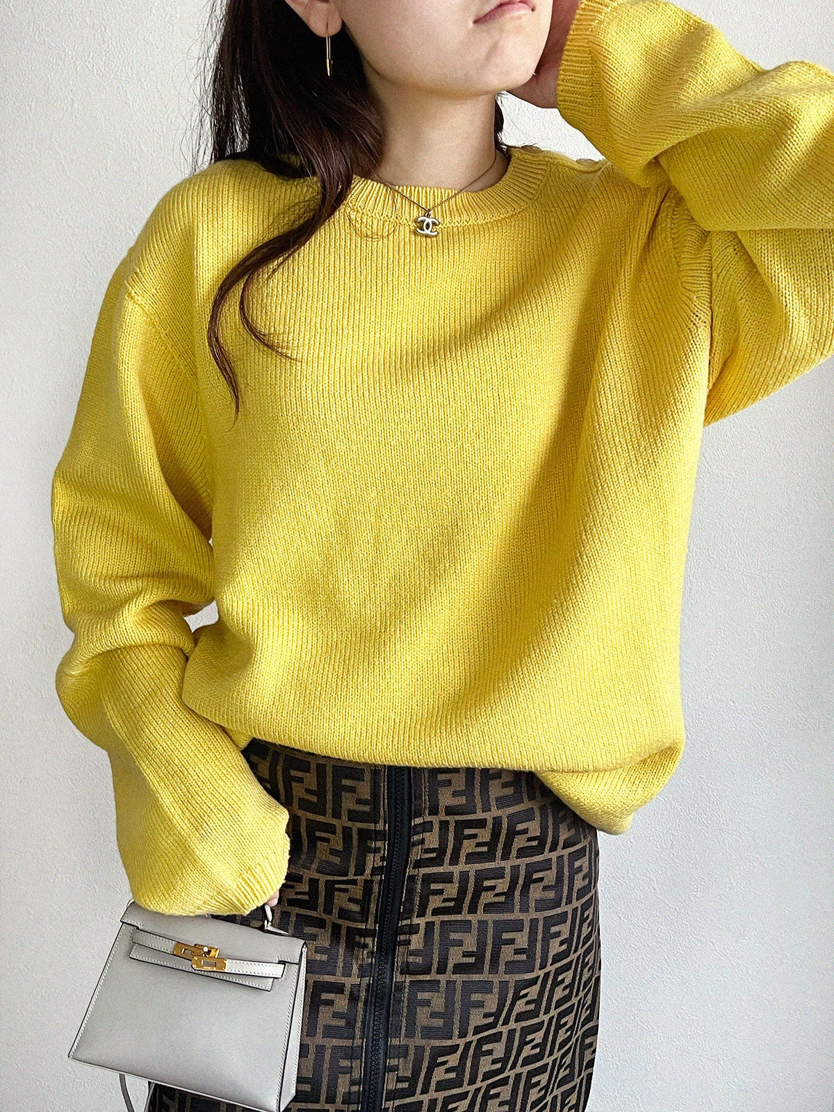 ウールロゴ刺繍ロングスリーブニットセーター イエロー