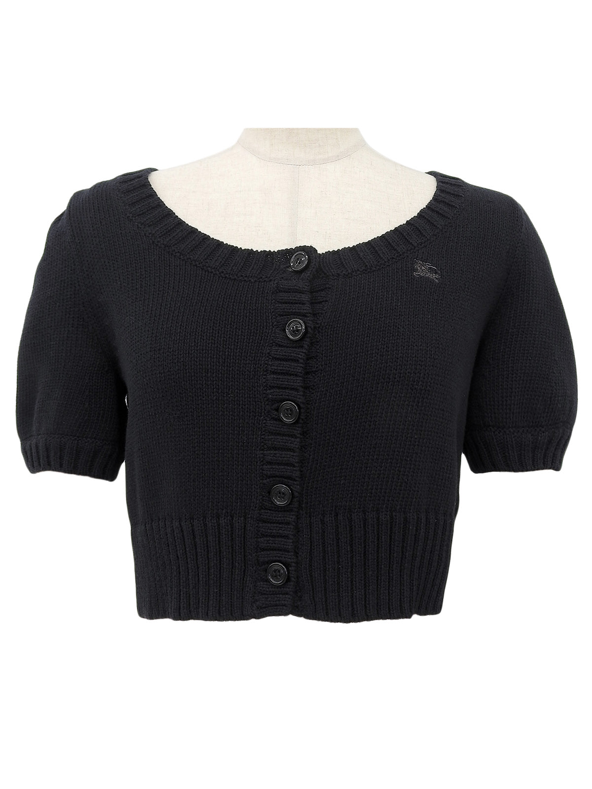 ロゴ刺繍ハーフスリーブクロップドカーディガン ブラック