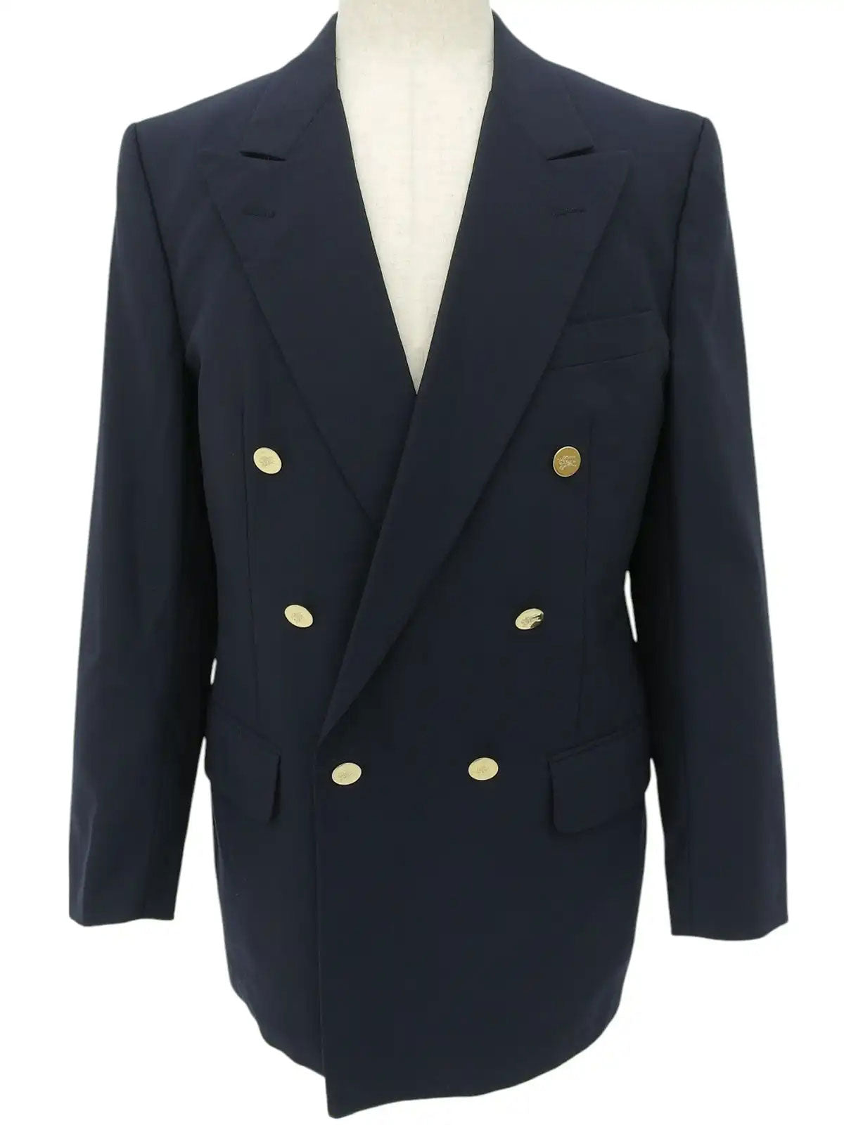 ウールロゴボタンダブルブレストジャケット ネイビー