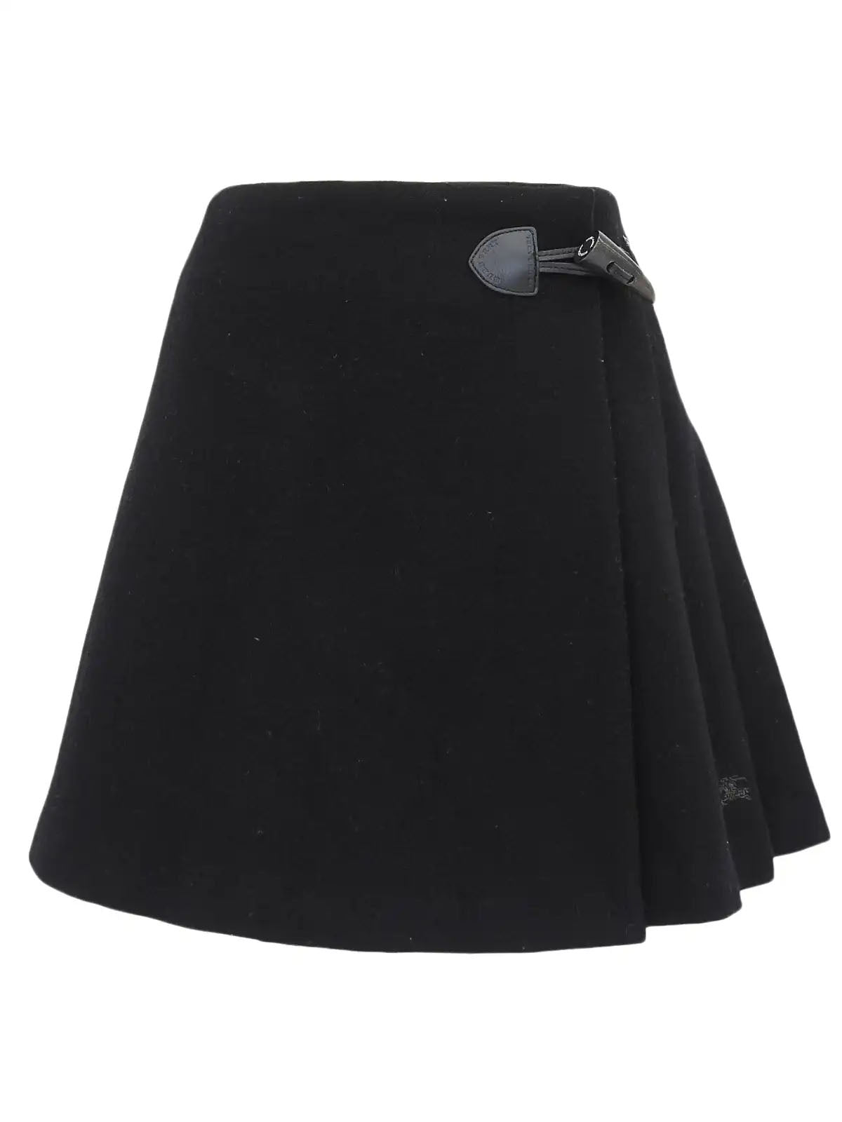 ウールロゴ刺繍トグルボタンミニスカート ブラック