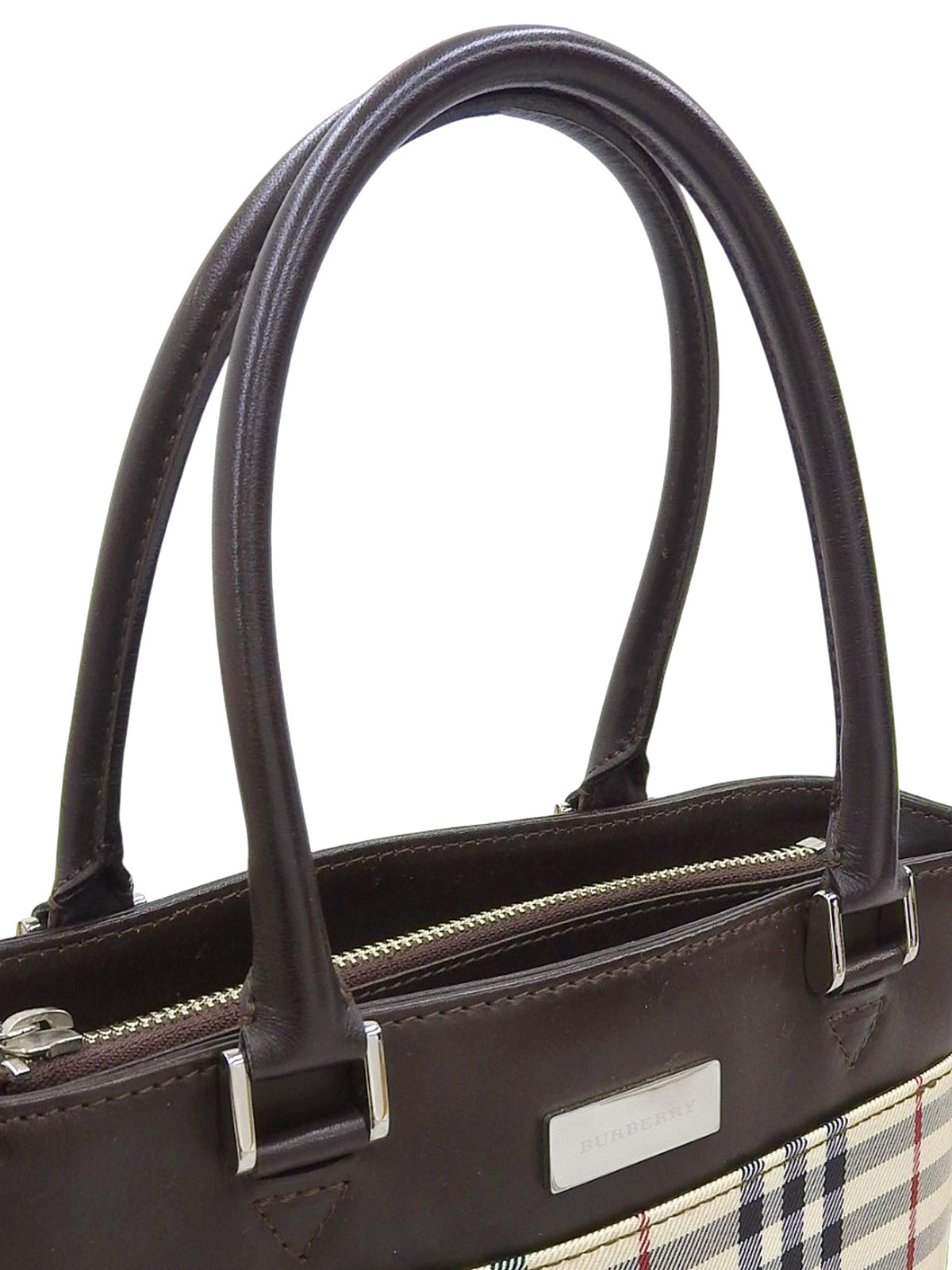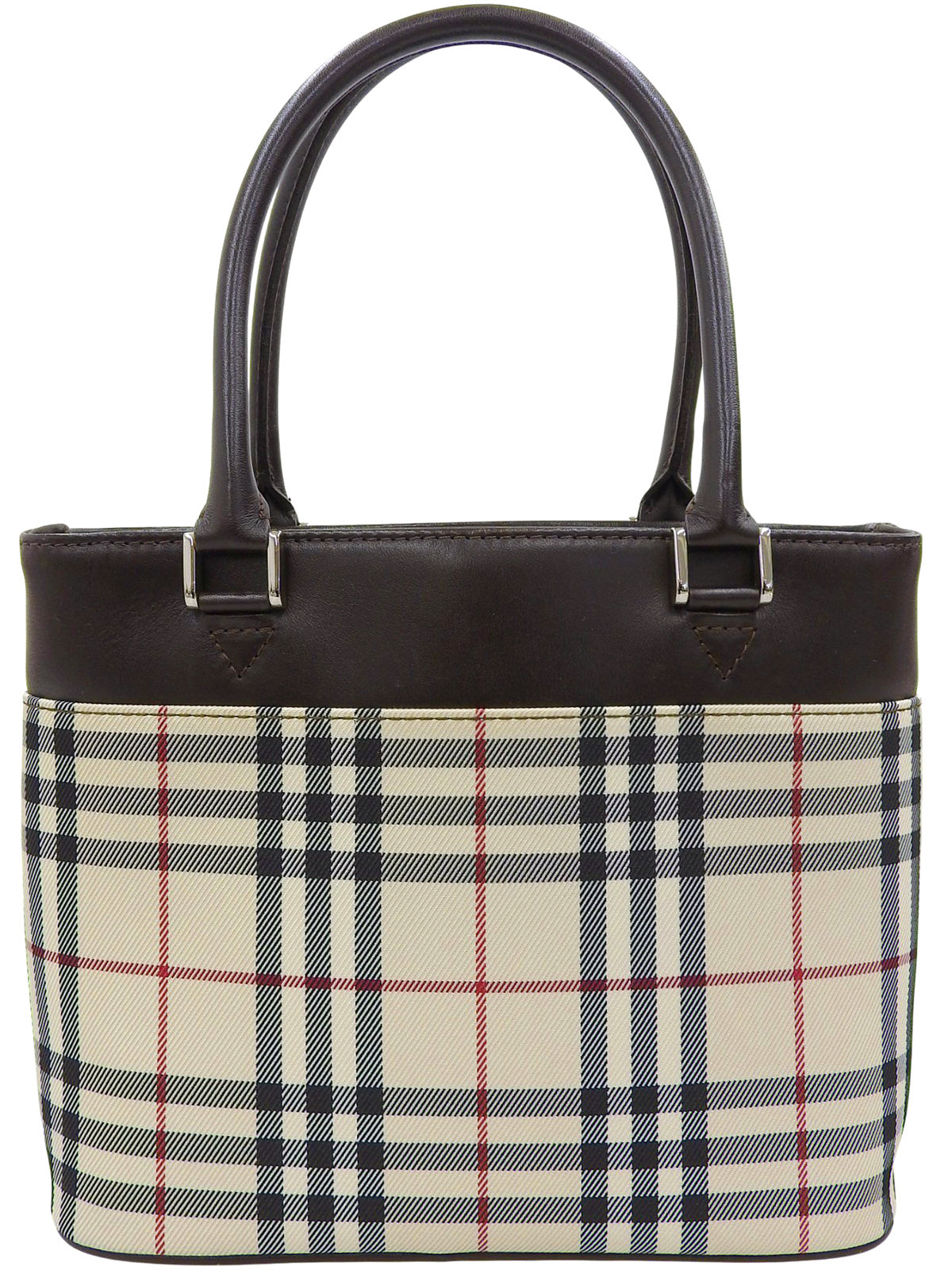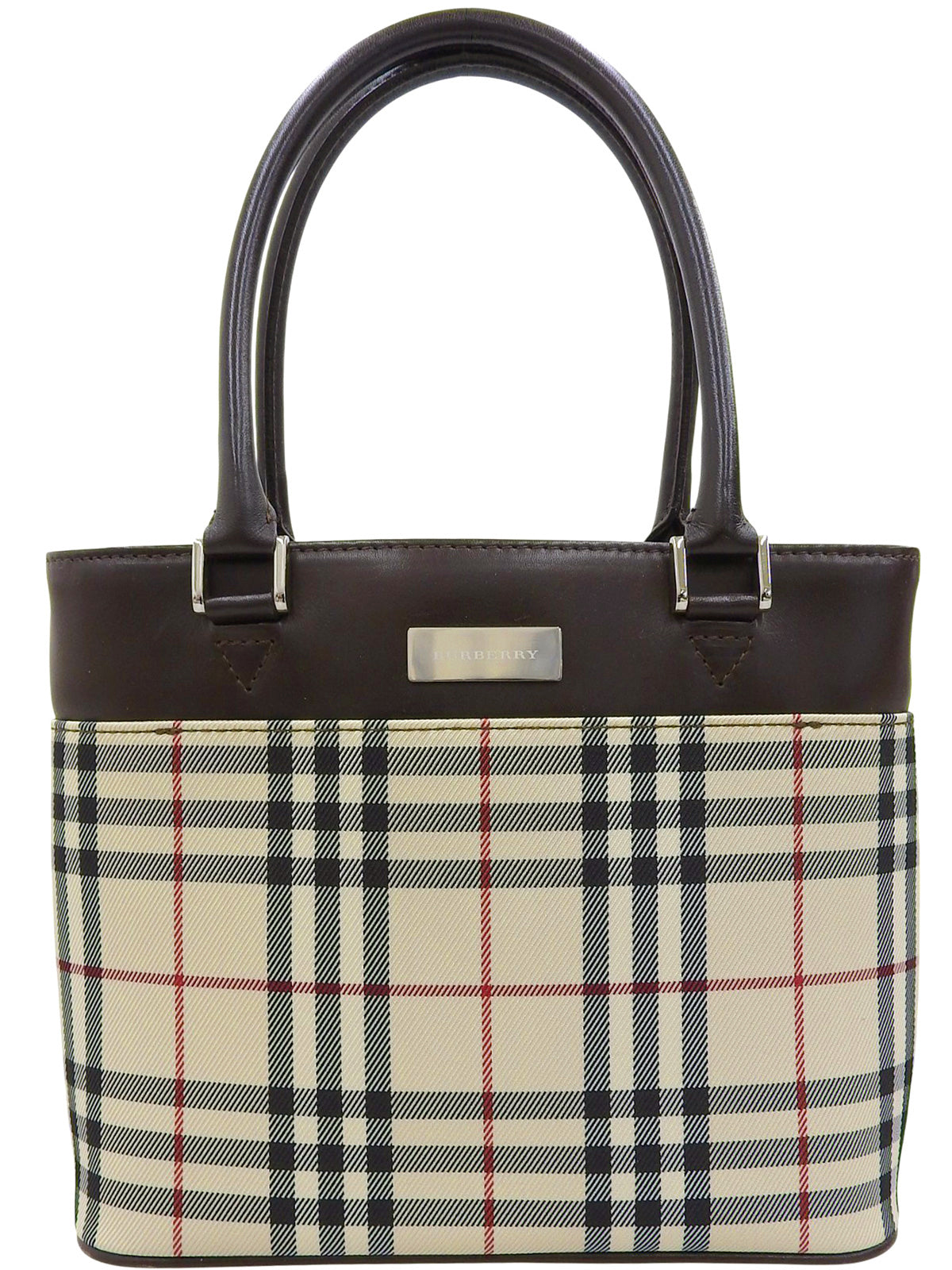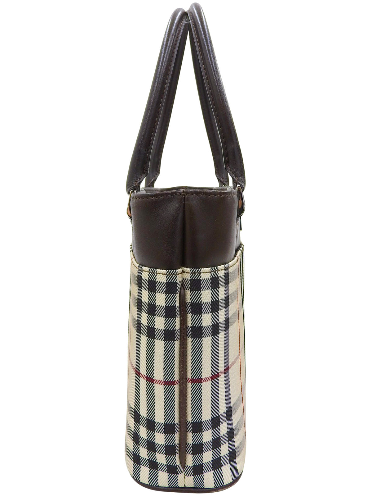 ノバチェックパターンロゴプレートハンドバッグ ベージュ/ブラウン