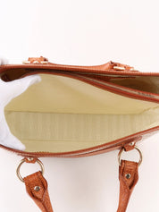 キャンバスレザーコンビマカダムパターンハンドバッグ ベージュ/キャメル