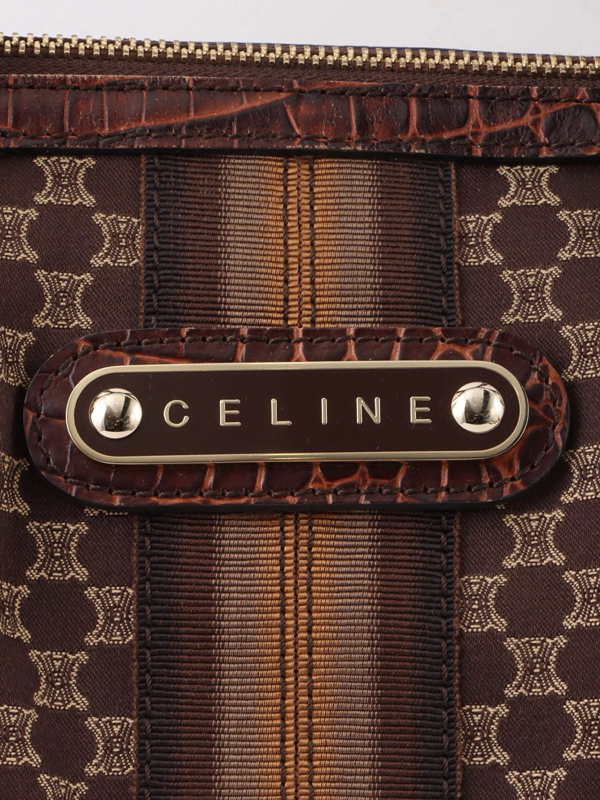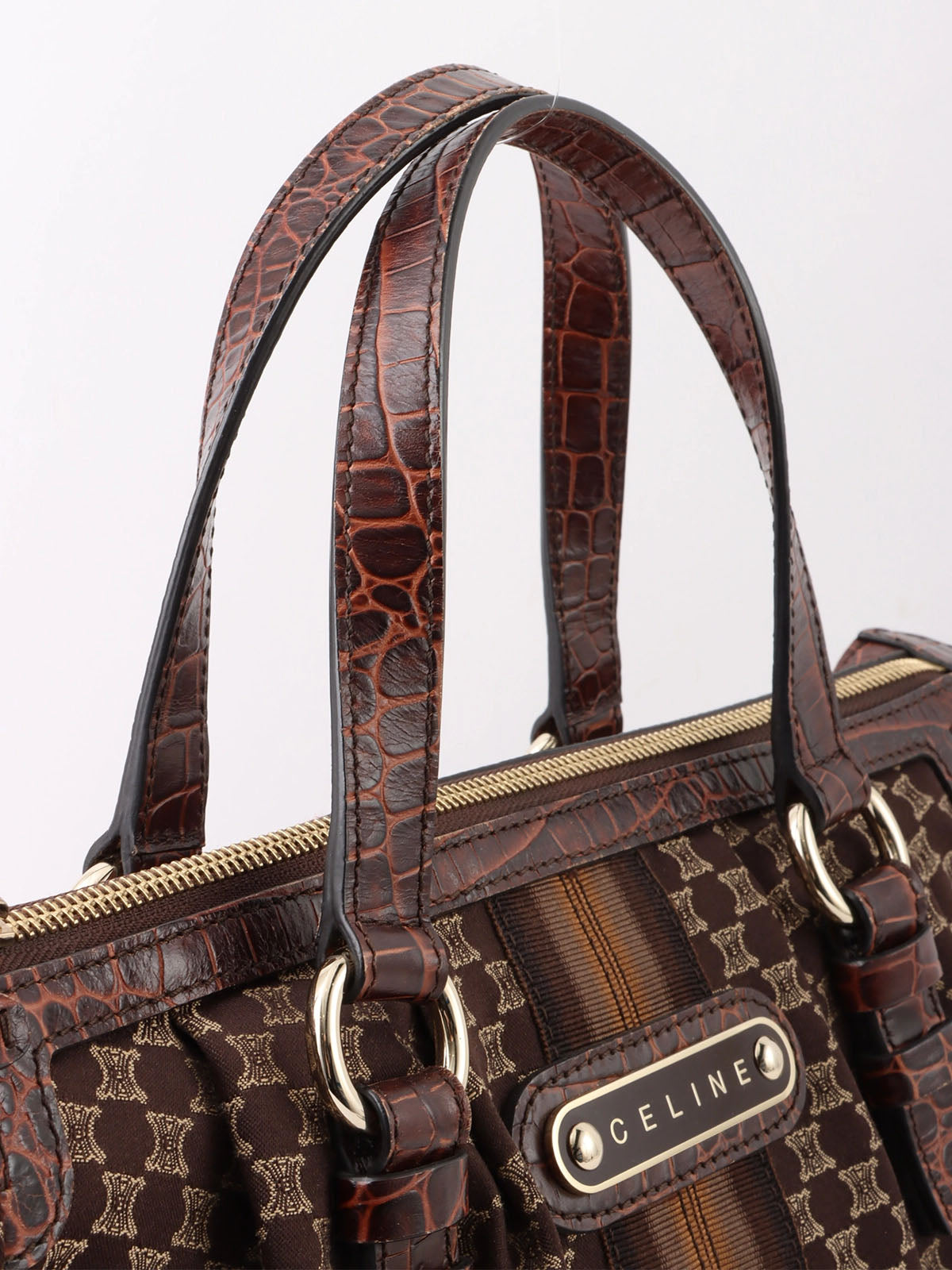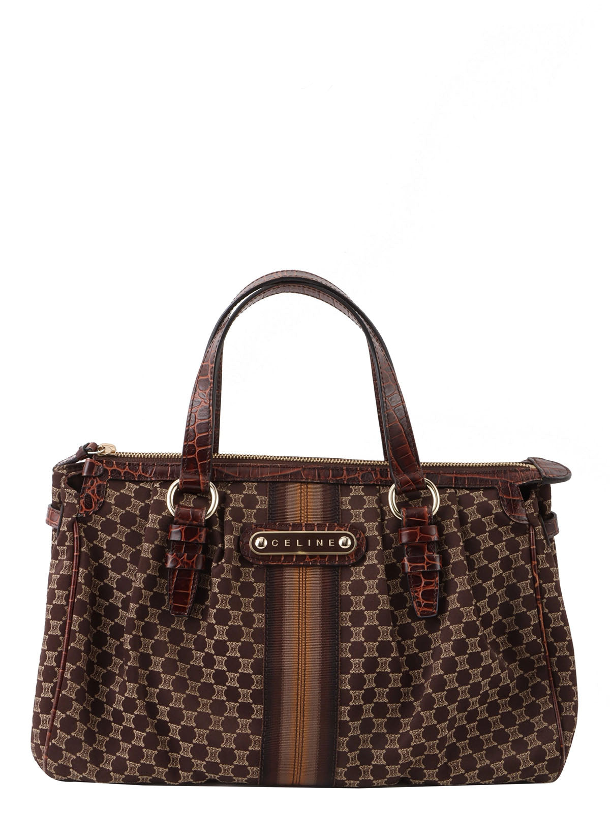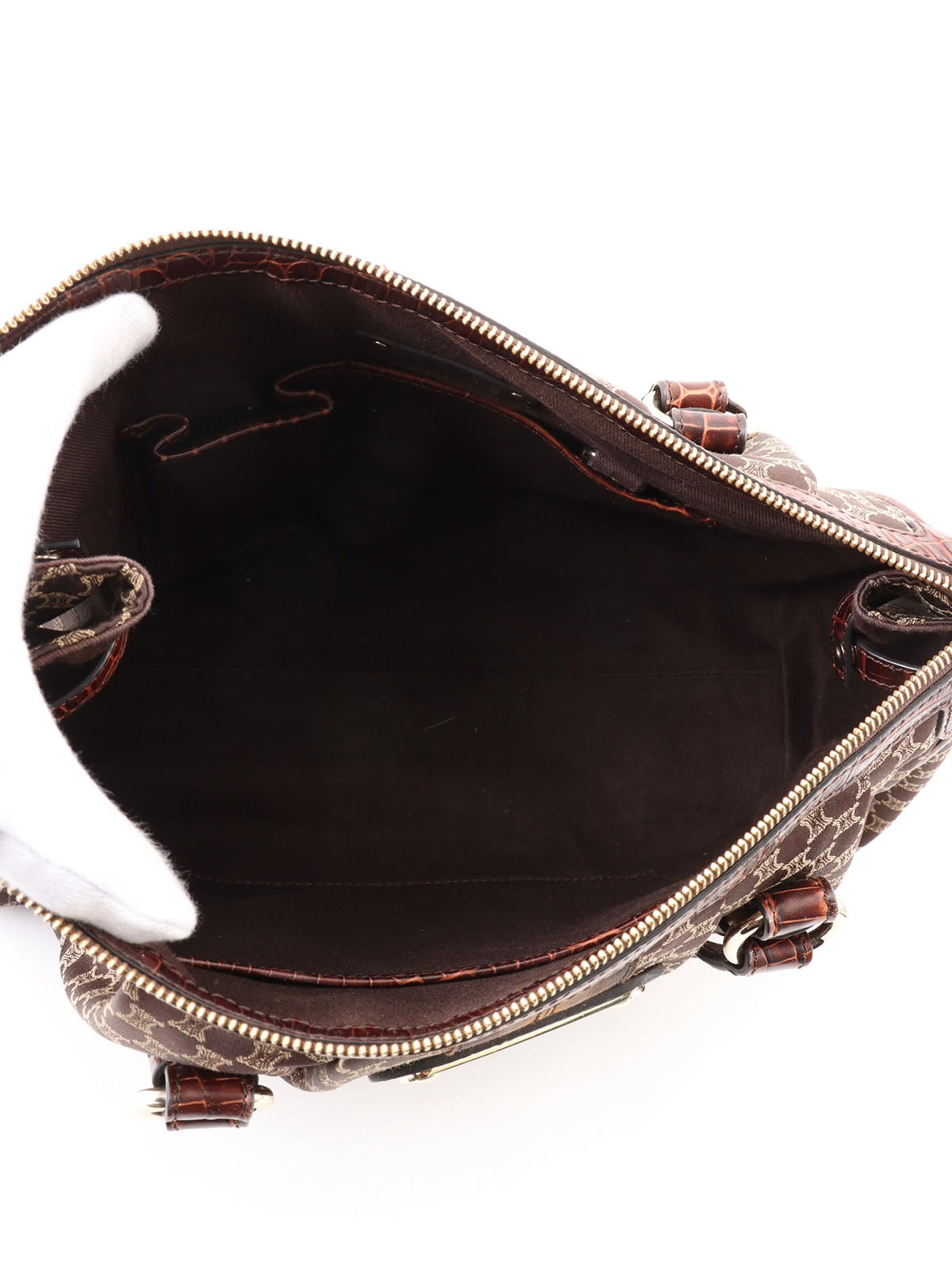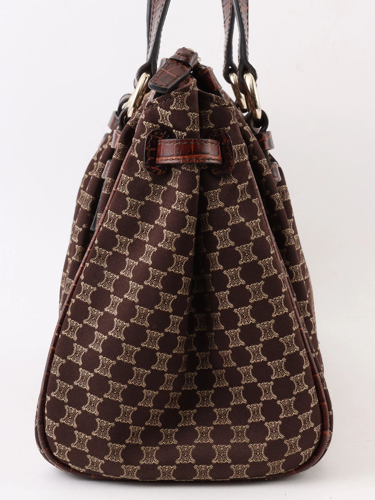 マカダムパターンロゴプレートハンドバッグ ブラウン
