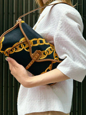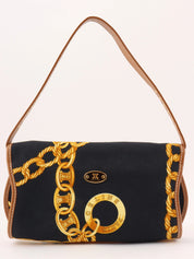 マカダムチェーンパターンワンショルダーバッグ ブラウン/ブラック