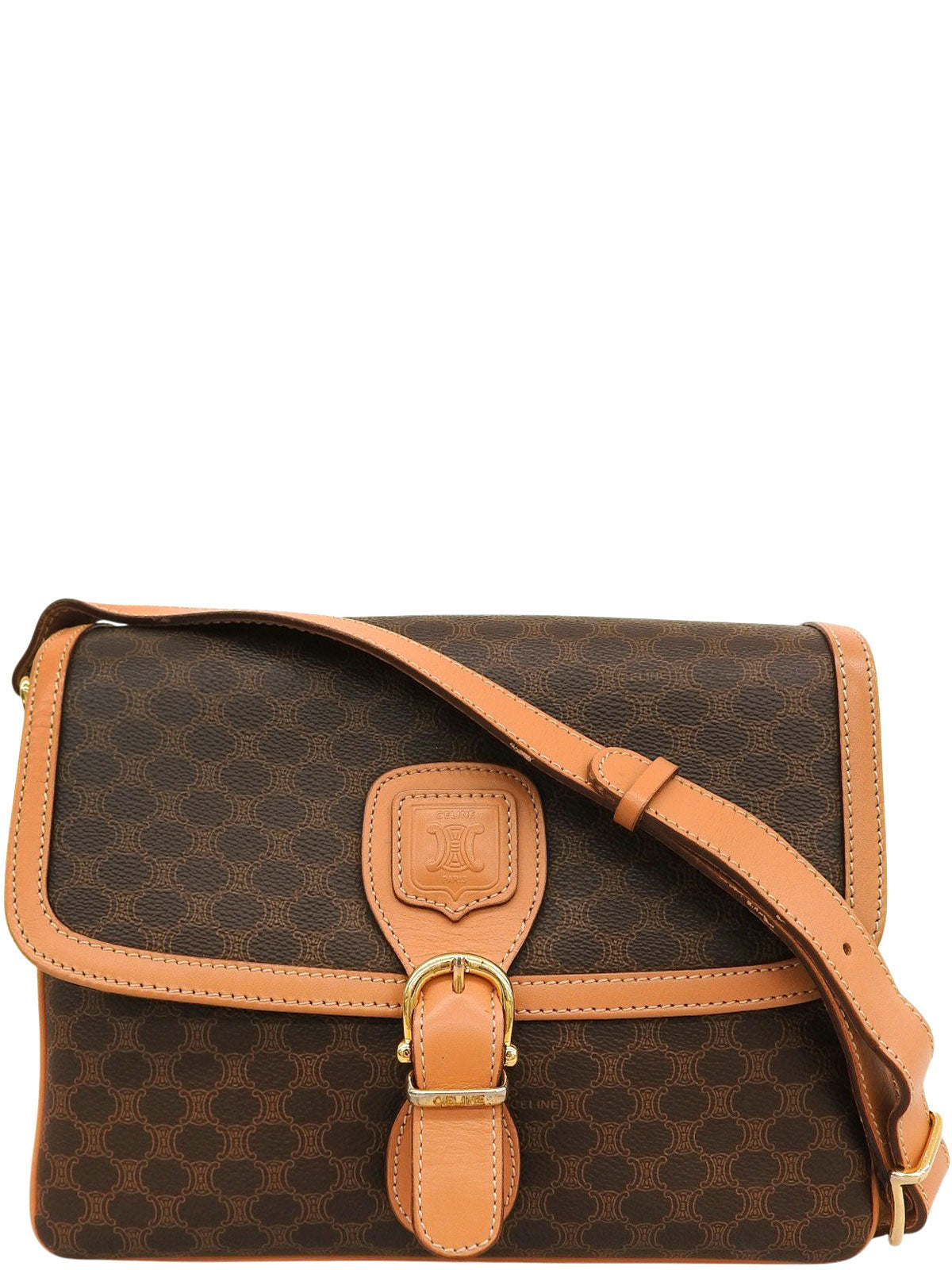 マカダムパターンロゴエンボスショルダーバッグ ブラウン