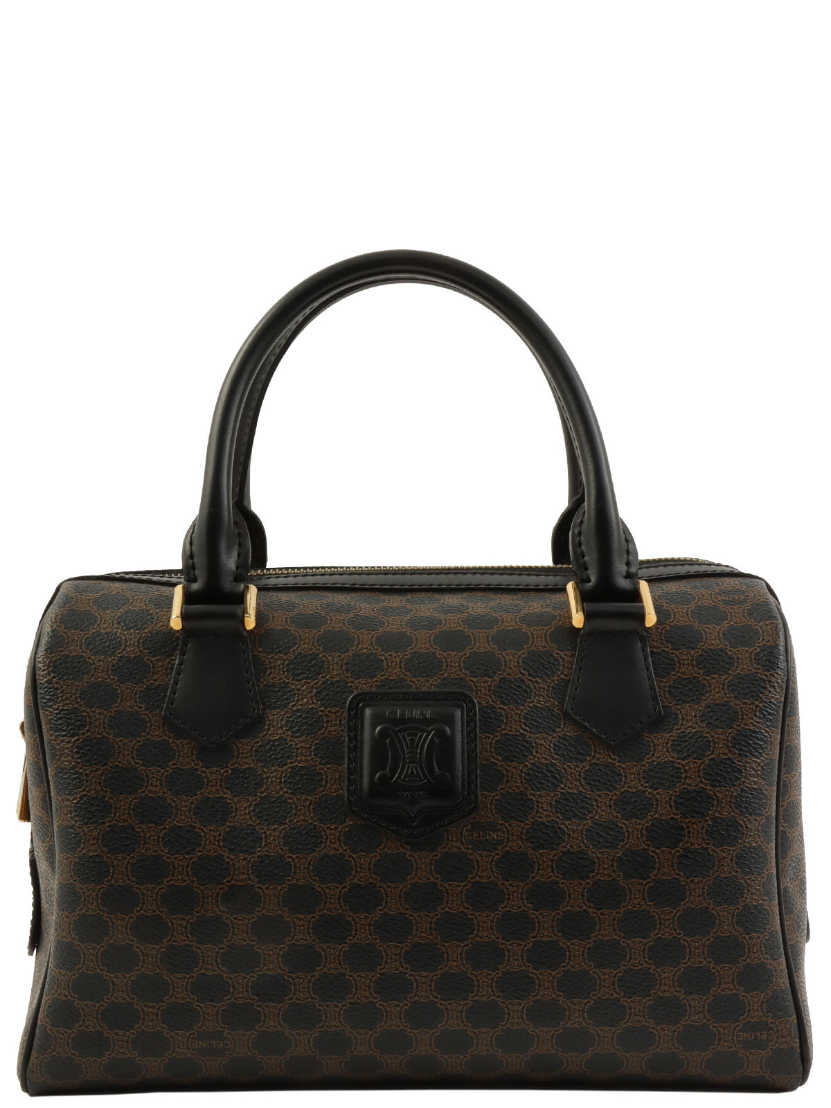 マカダムパターンロゴエンボスミニボストンバッグ ブラウン