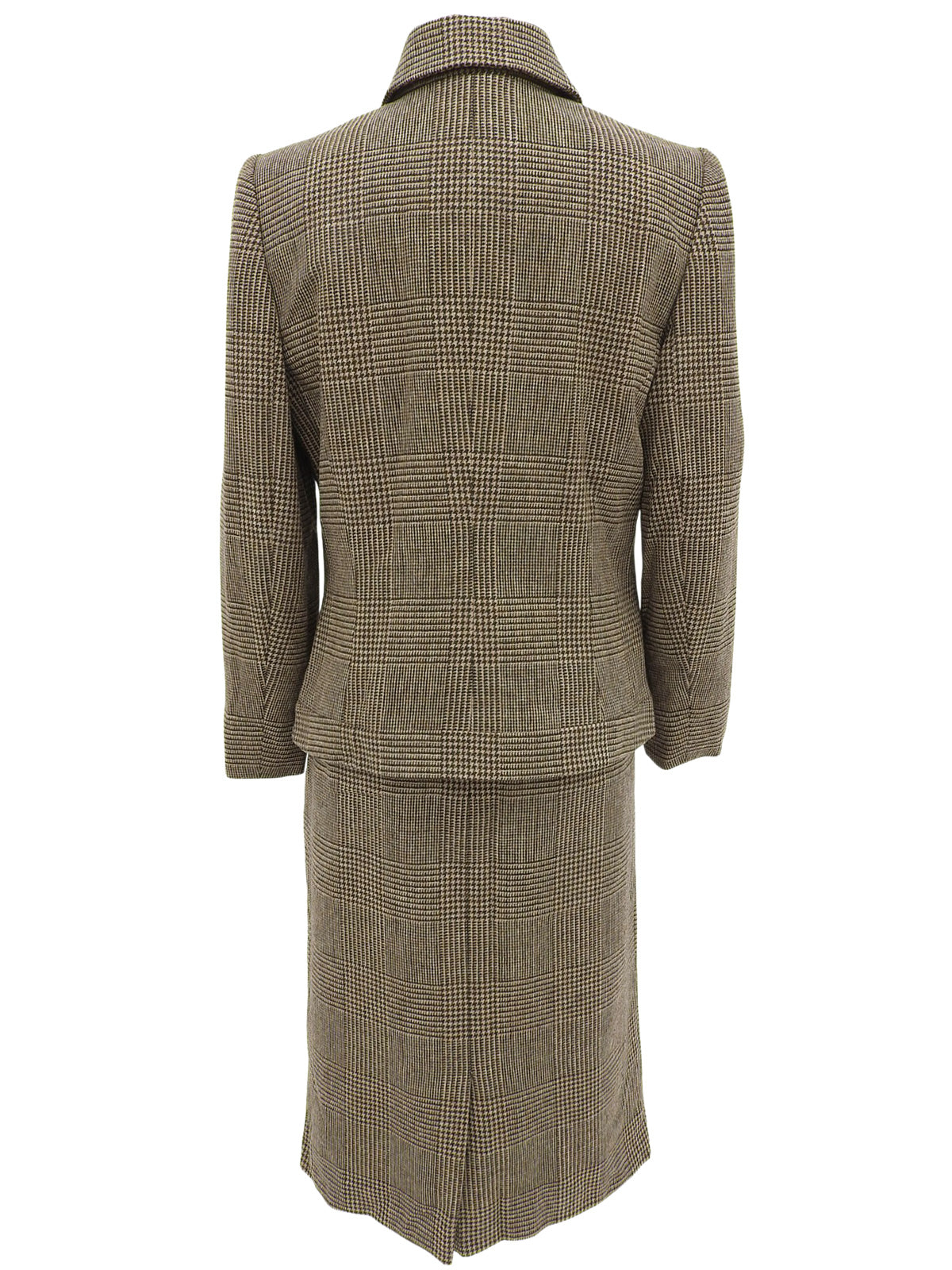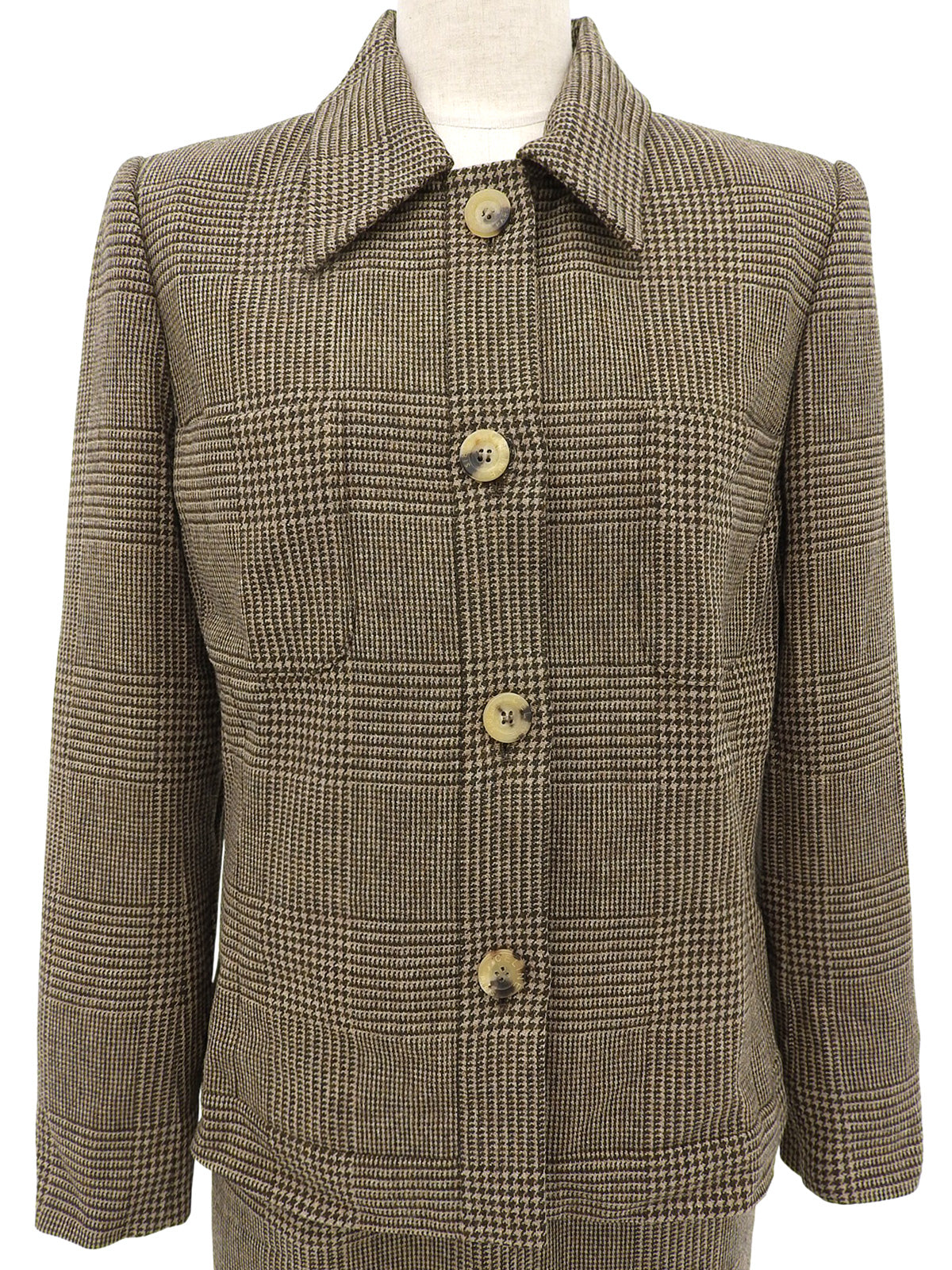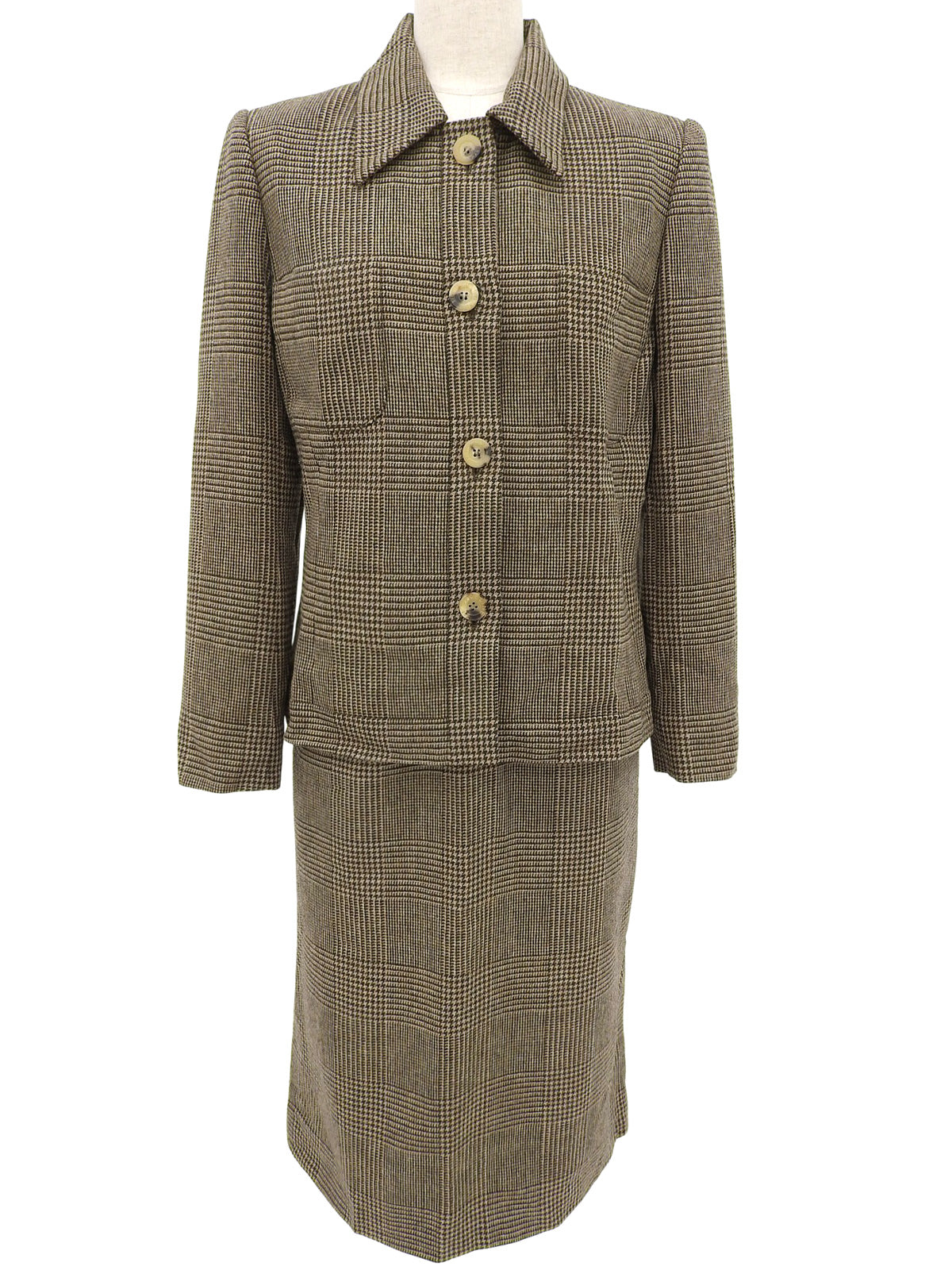 グレンチェックパターンロゴボタンセットアップ ブラウン