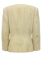 マカダムボタンチェーンデザインノーカラージャケット クリームイエロー