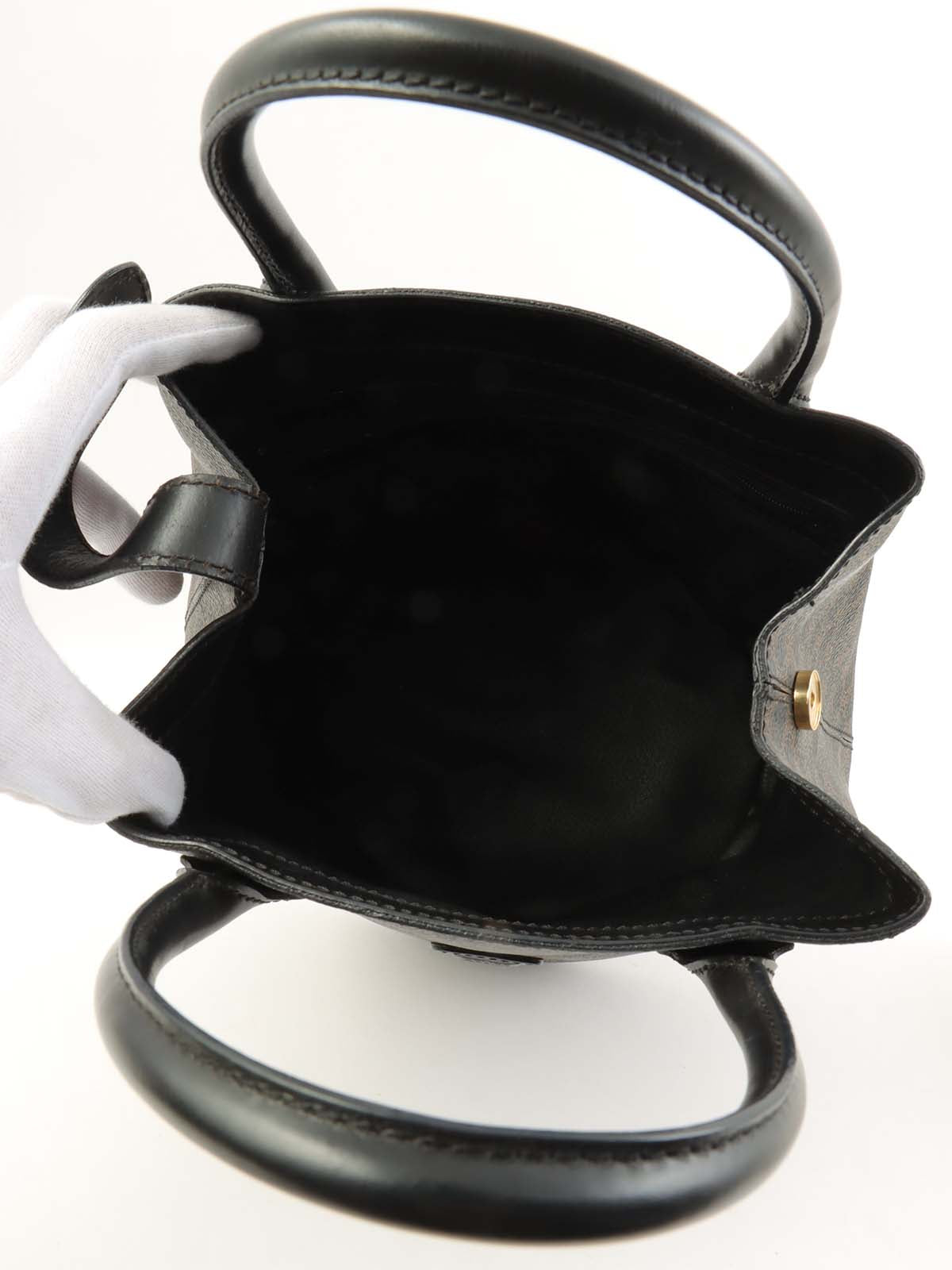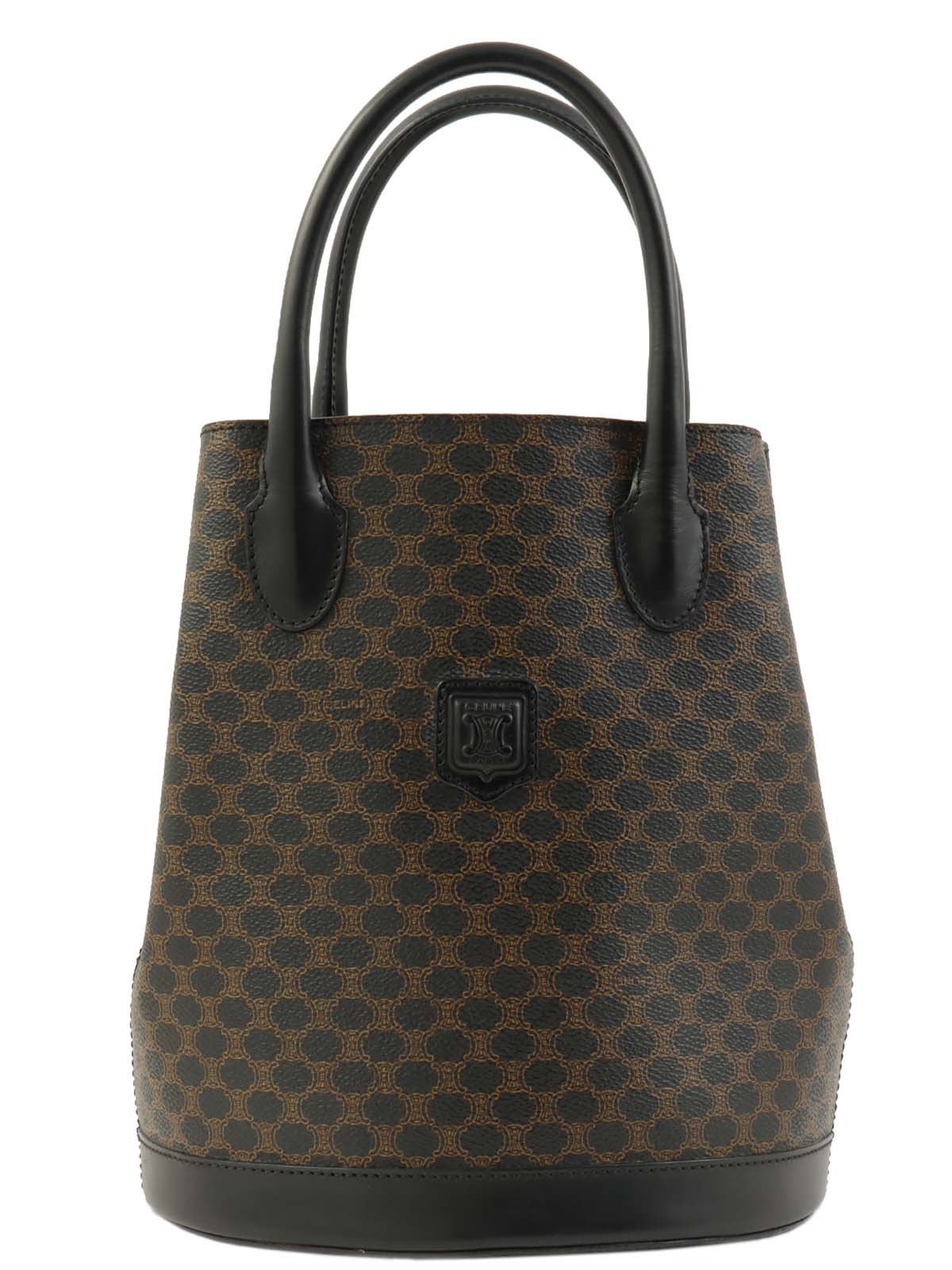 マカダムパターンロゴエンボスハンドバッグ ブラウン/ブラック
