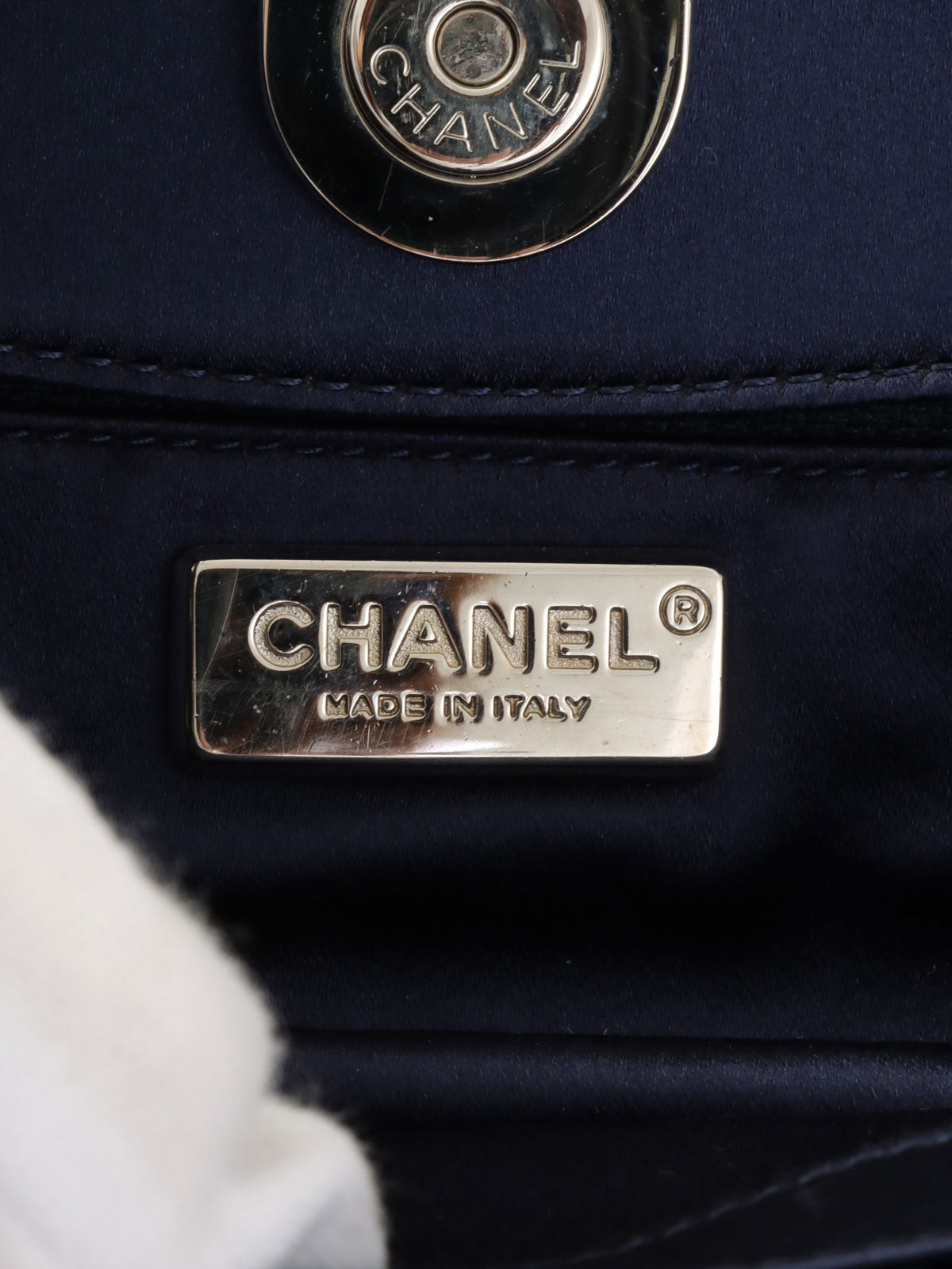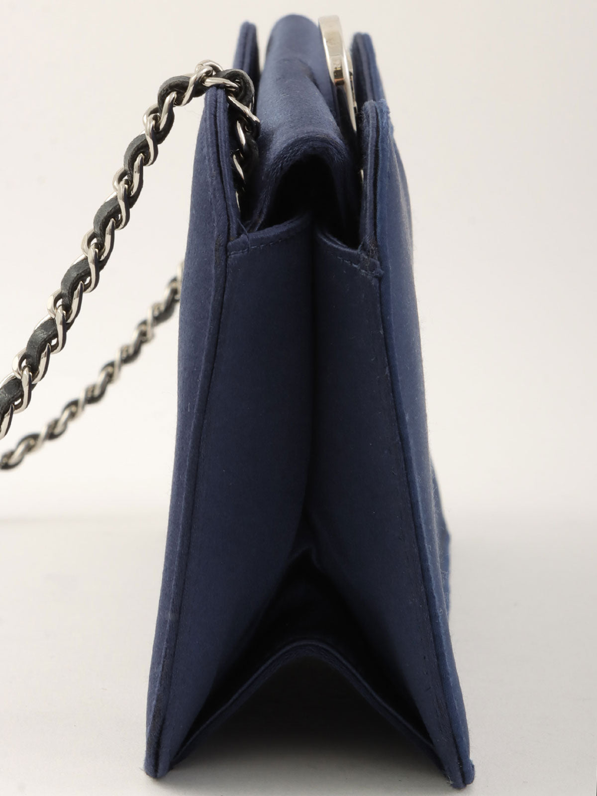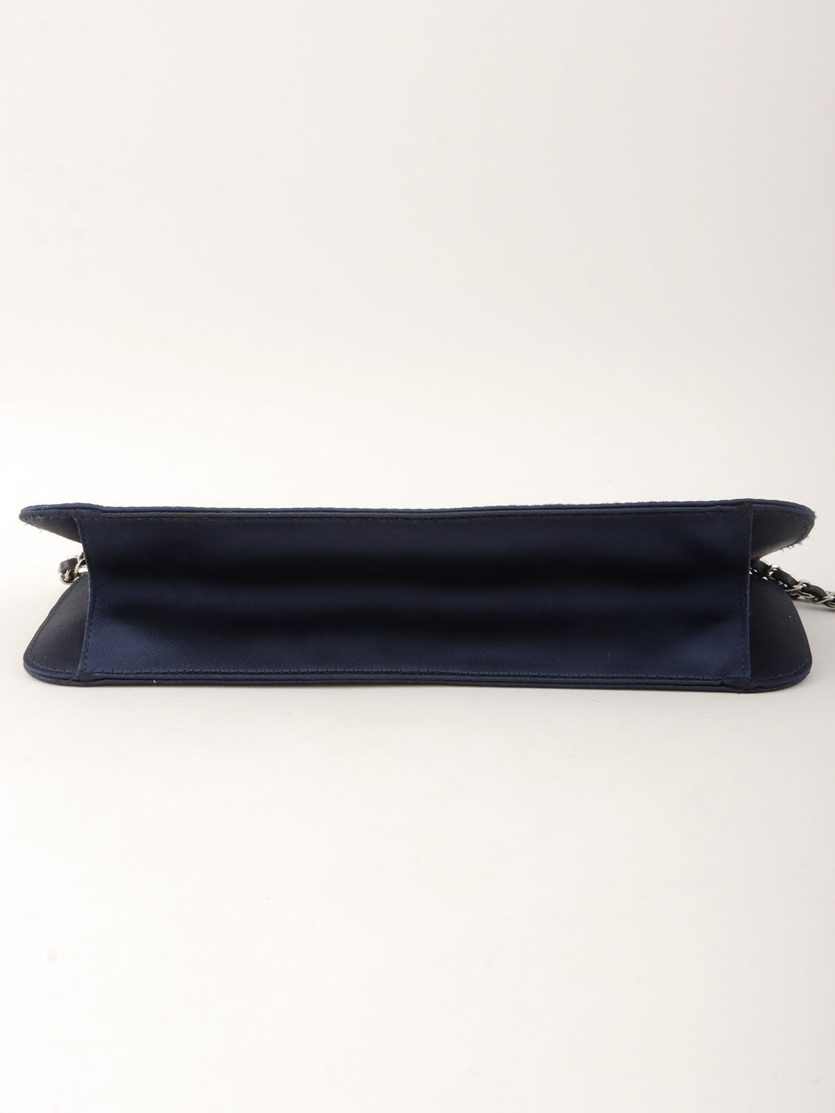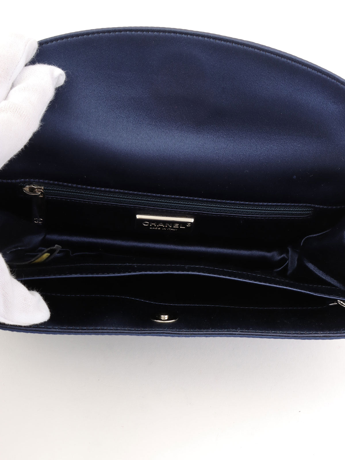 2013年頃 シルクサテンCCマークプレートチェーンショルダーバッグ ネイビー