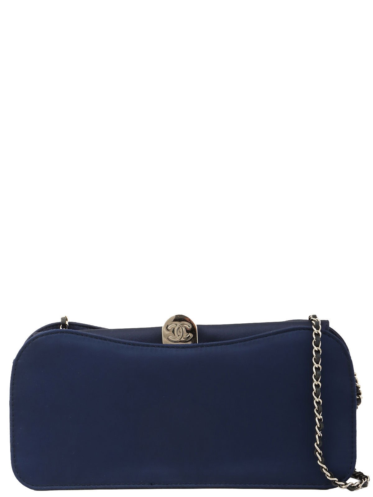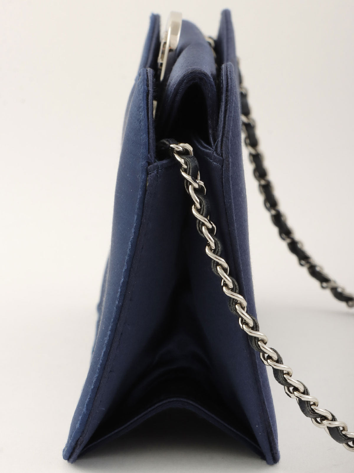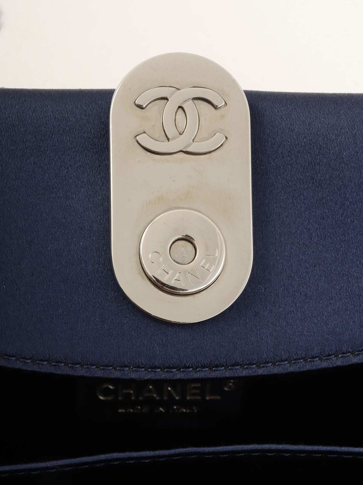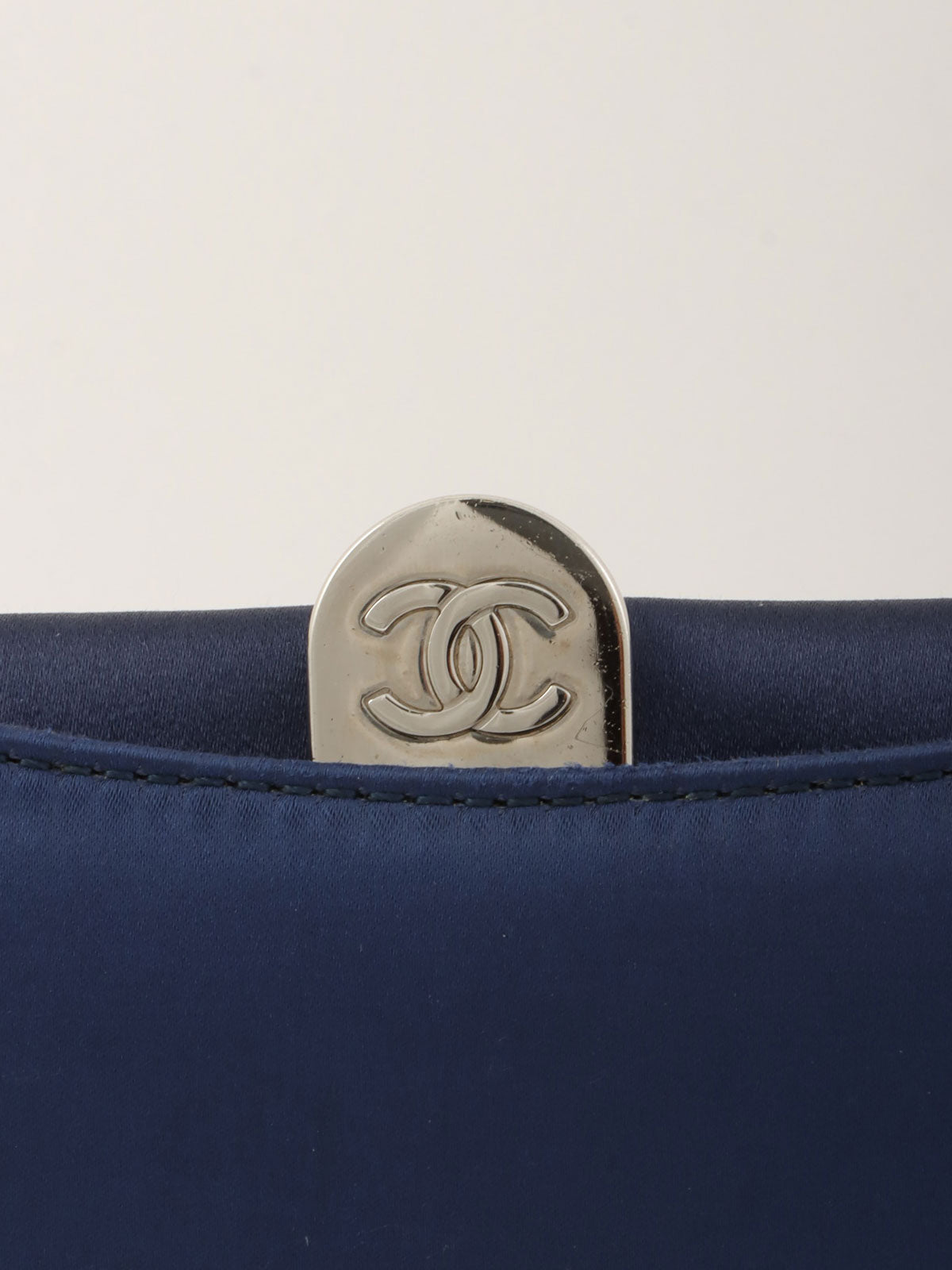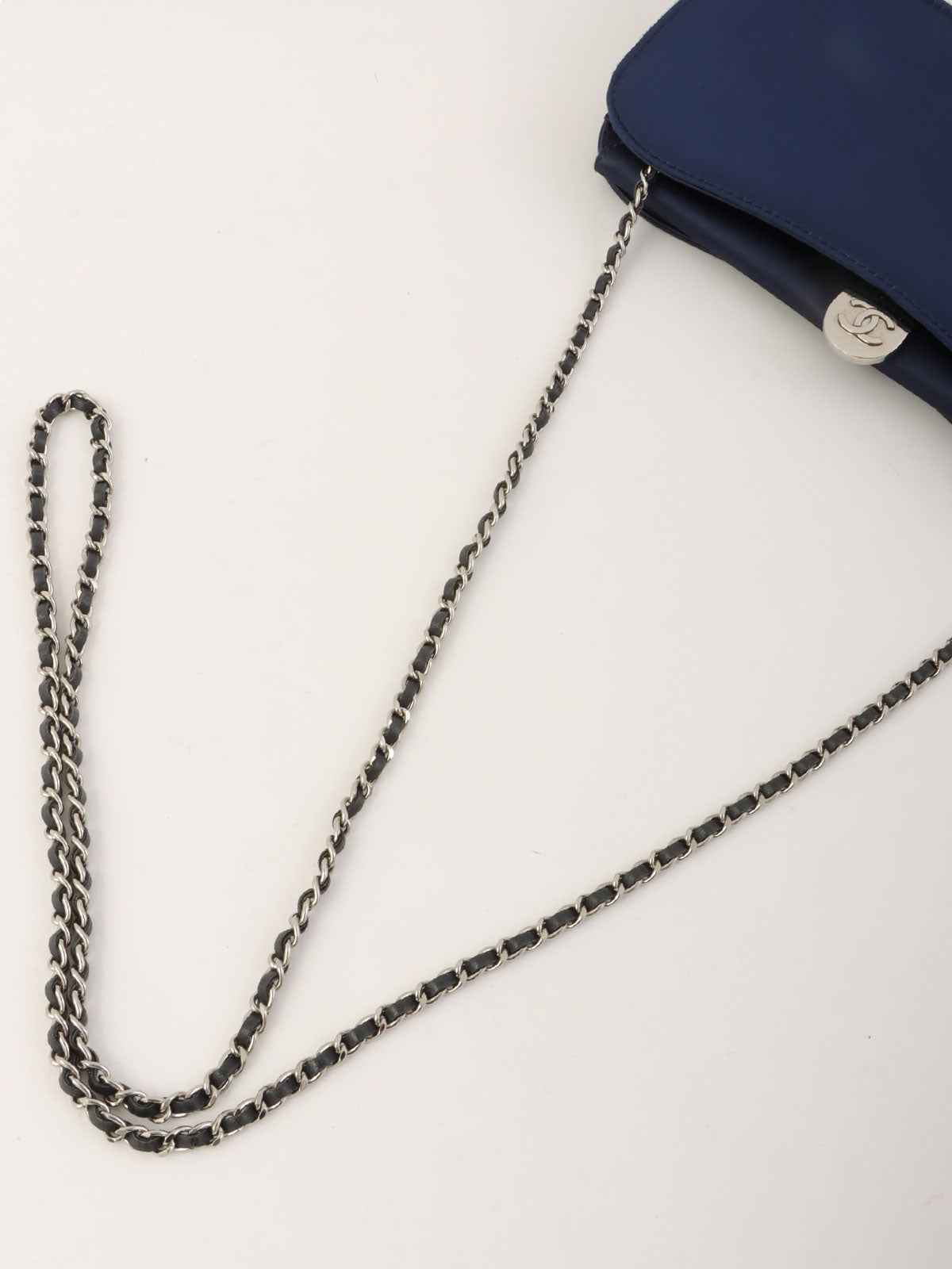 2013年頃 シルクサテンCCマークプレートチェーンショルダーバッグ ネイビー