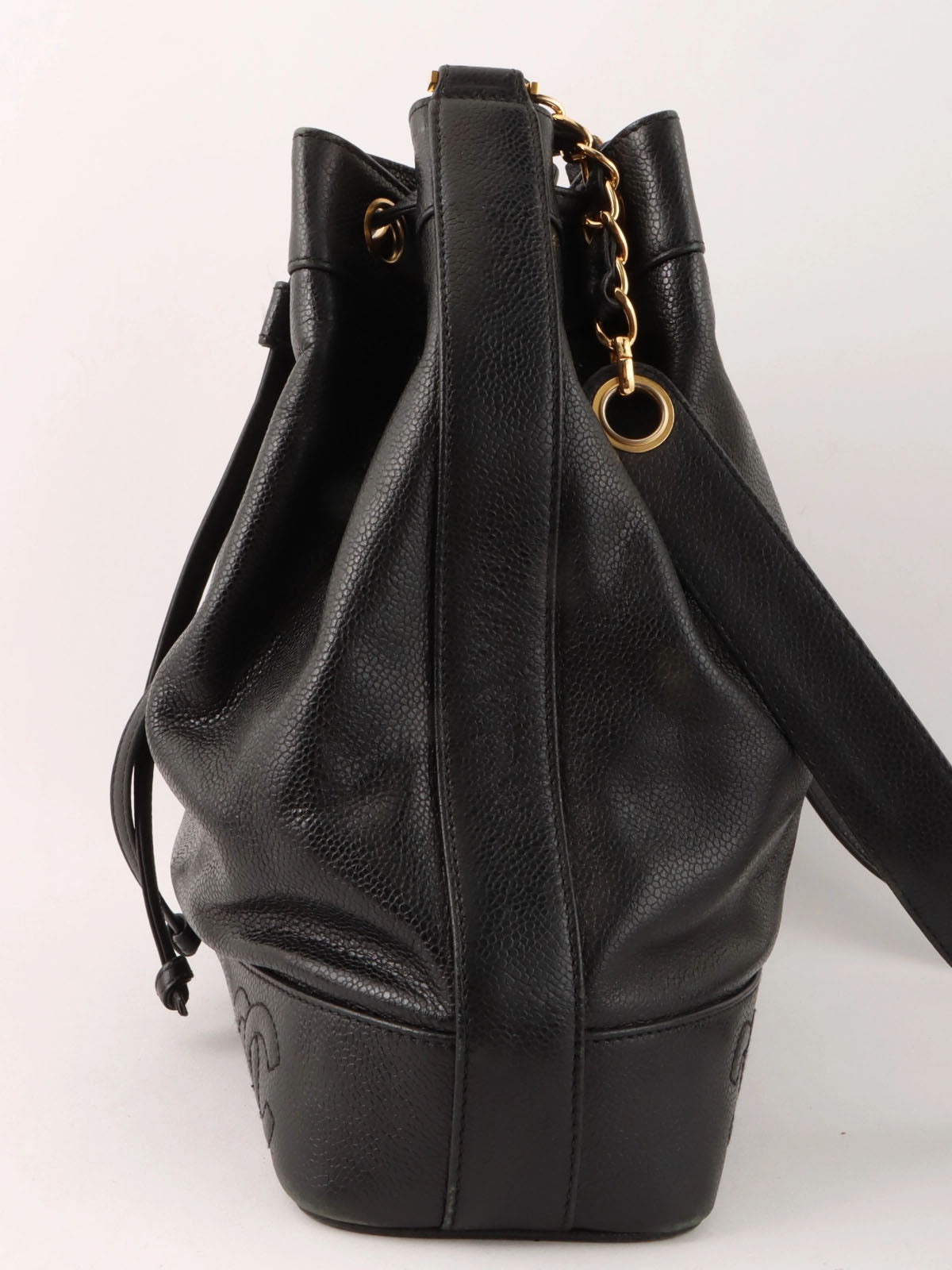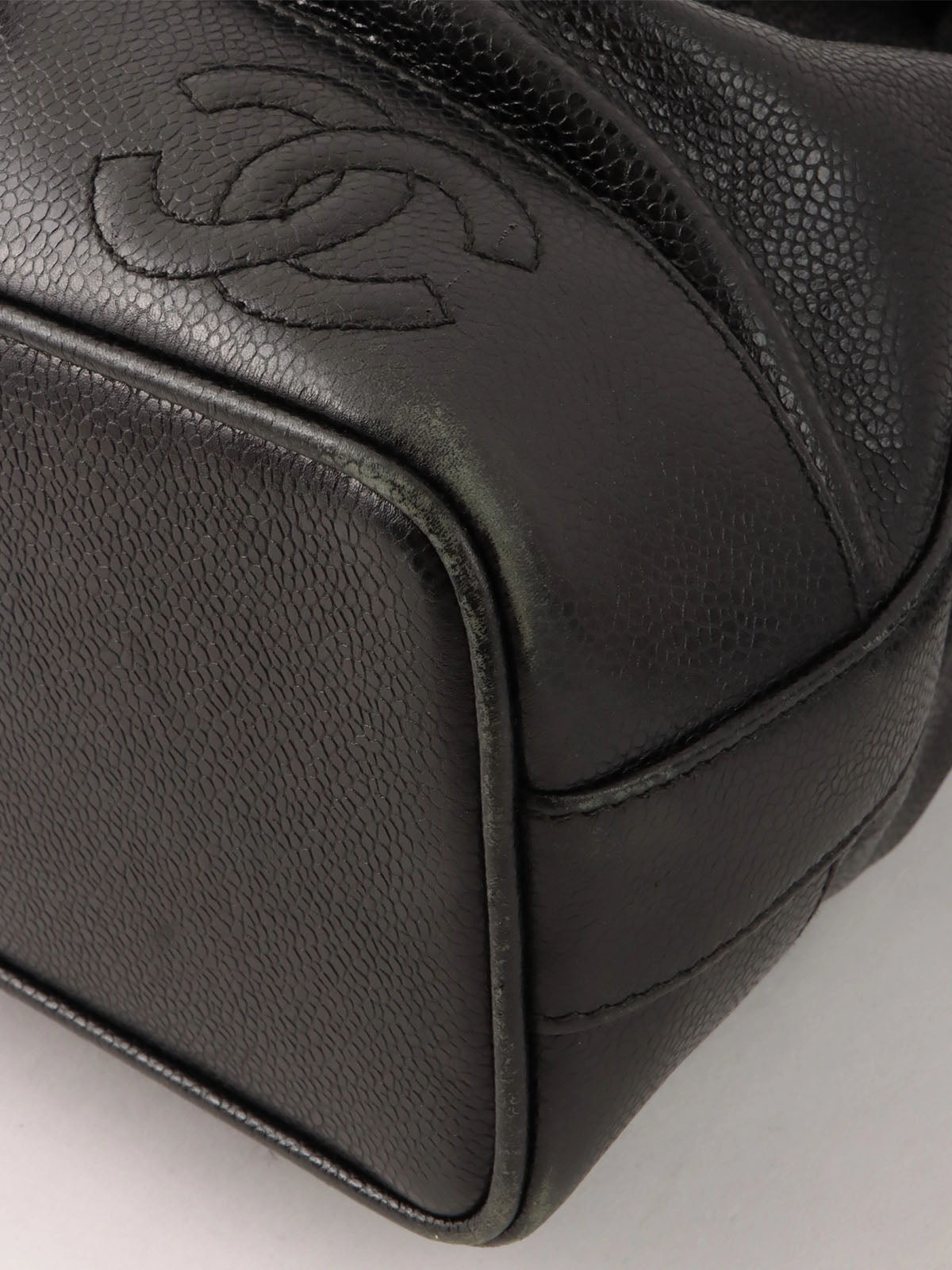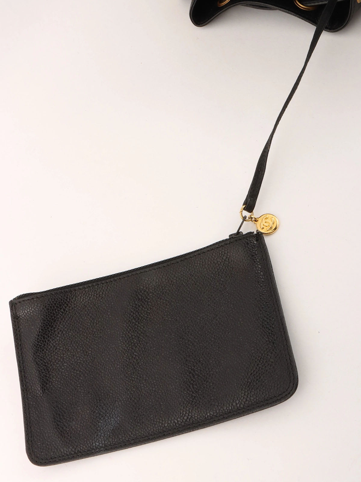 1997年頃製 キャビアスキン6CCマークステッチ巾着ショルダーバック ブラック