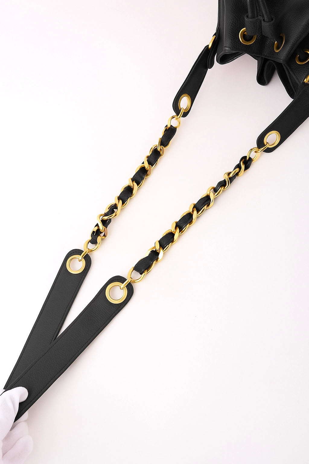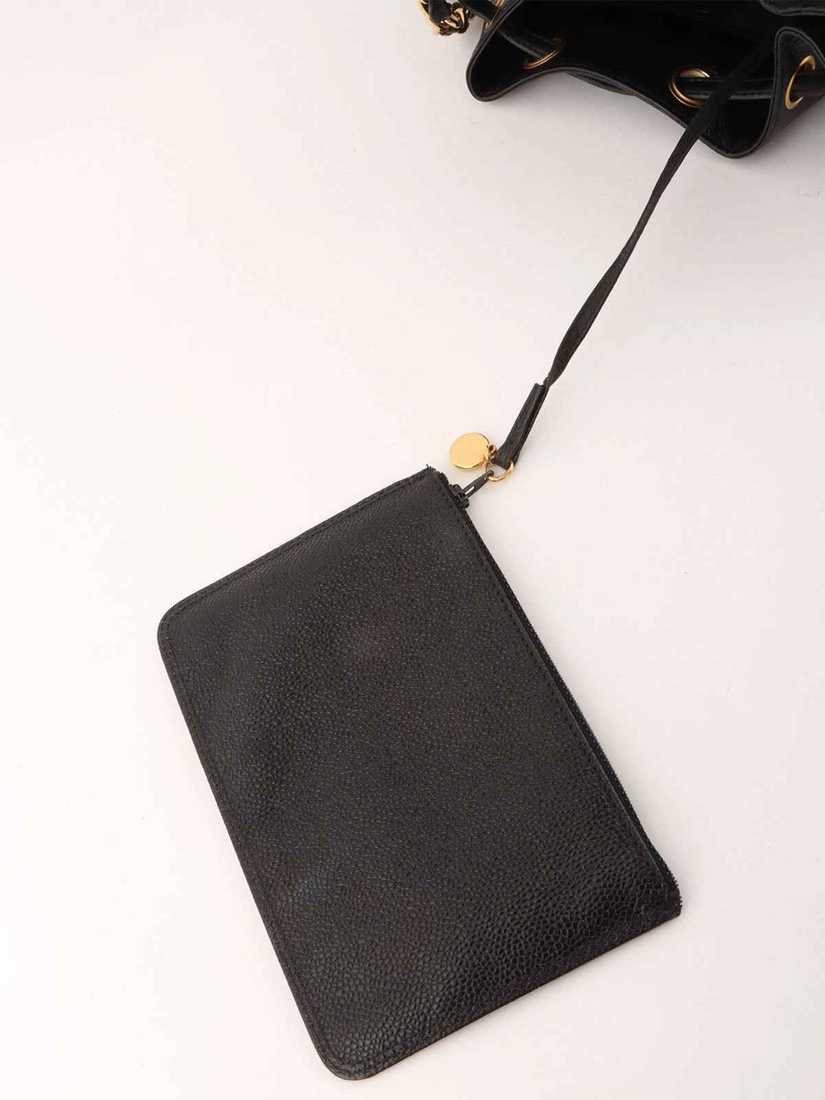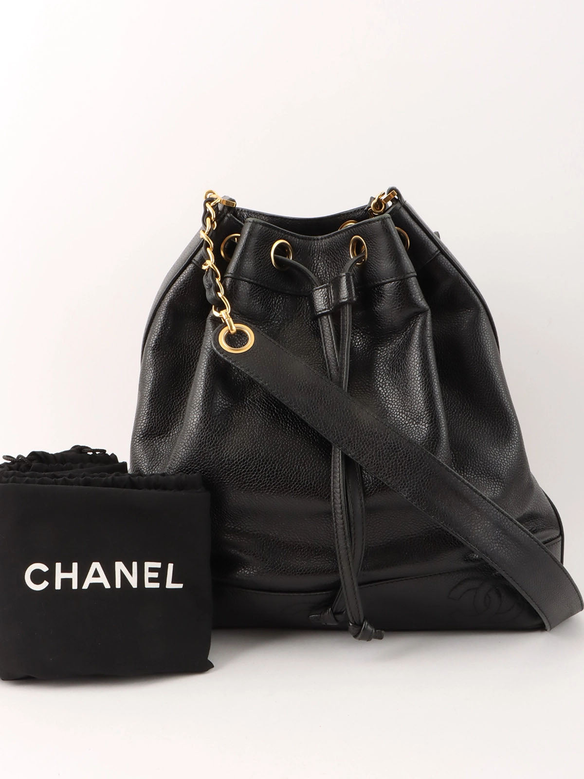 1997年頃製 キャビアスキン6CCマークステッチ巾着ショルダーバック ブラック