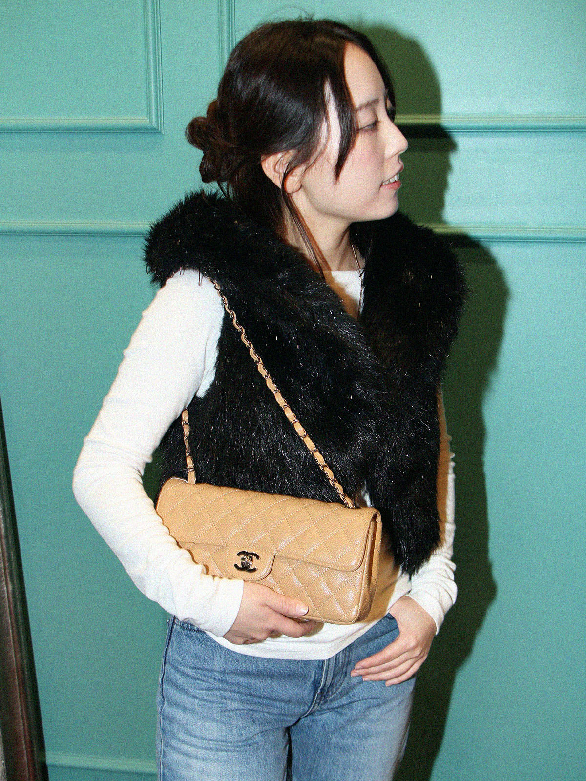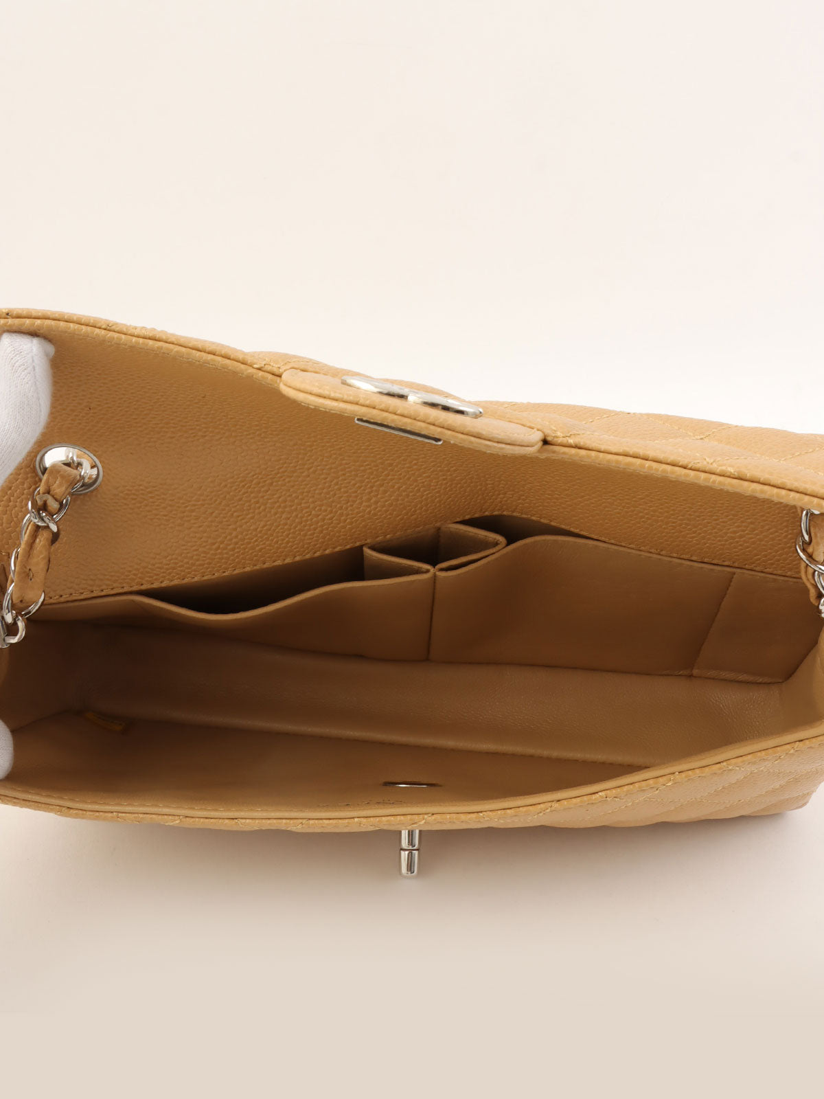 2004年頃製 キャビアスキンイーストウェストチェーンバッグ ベージュ